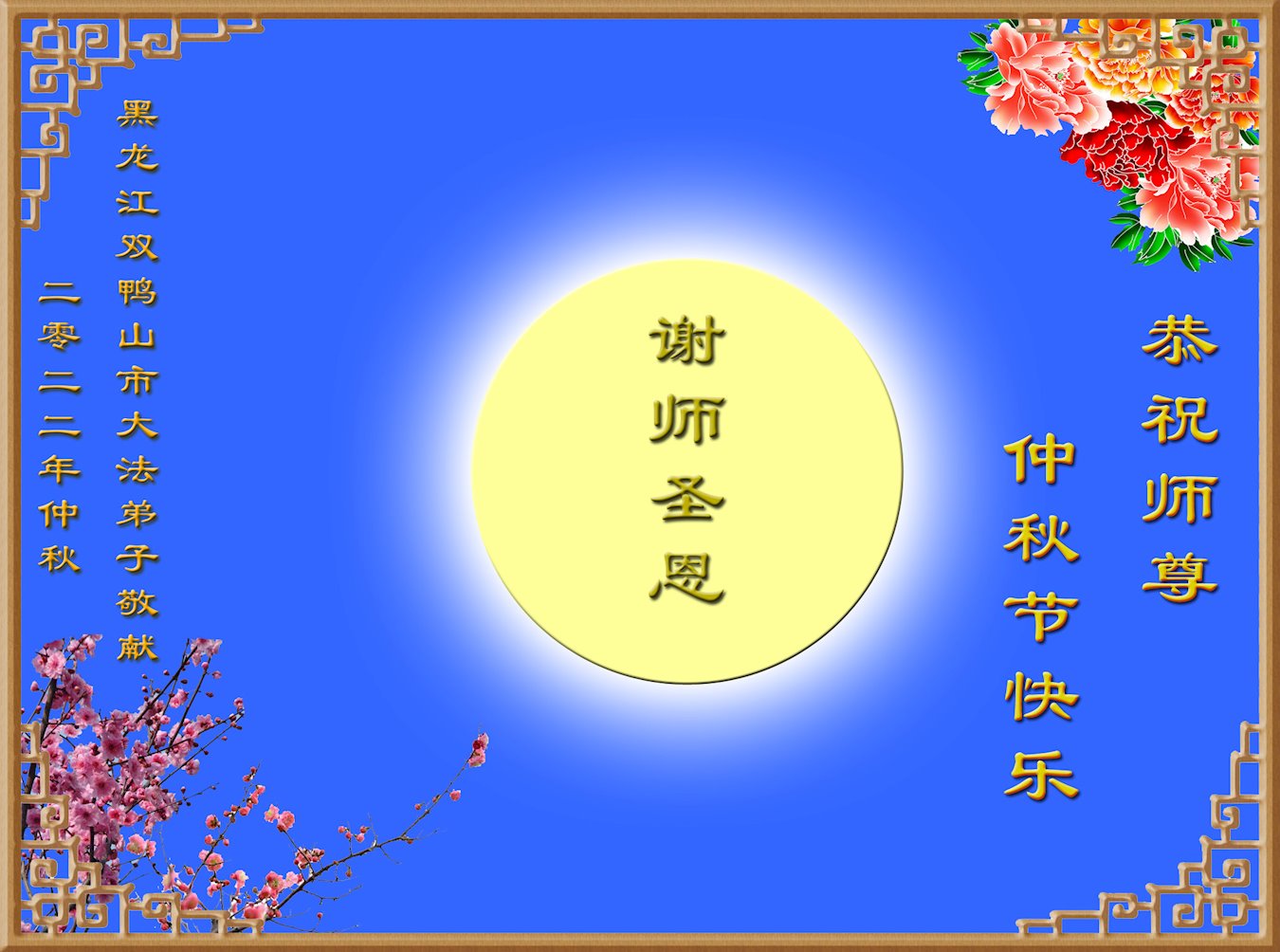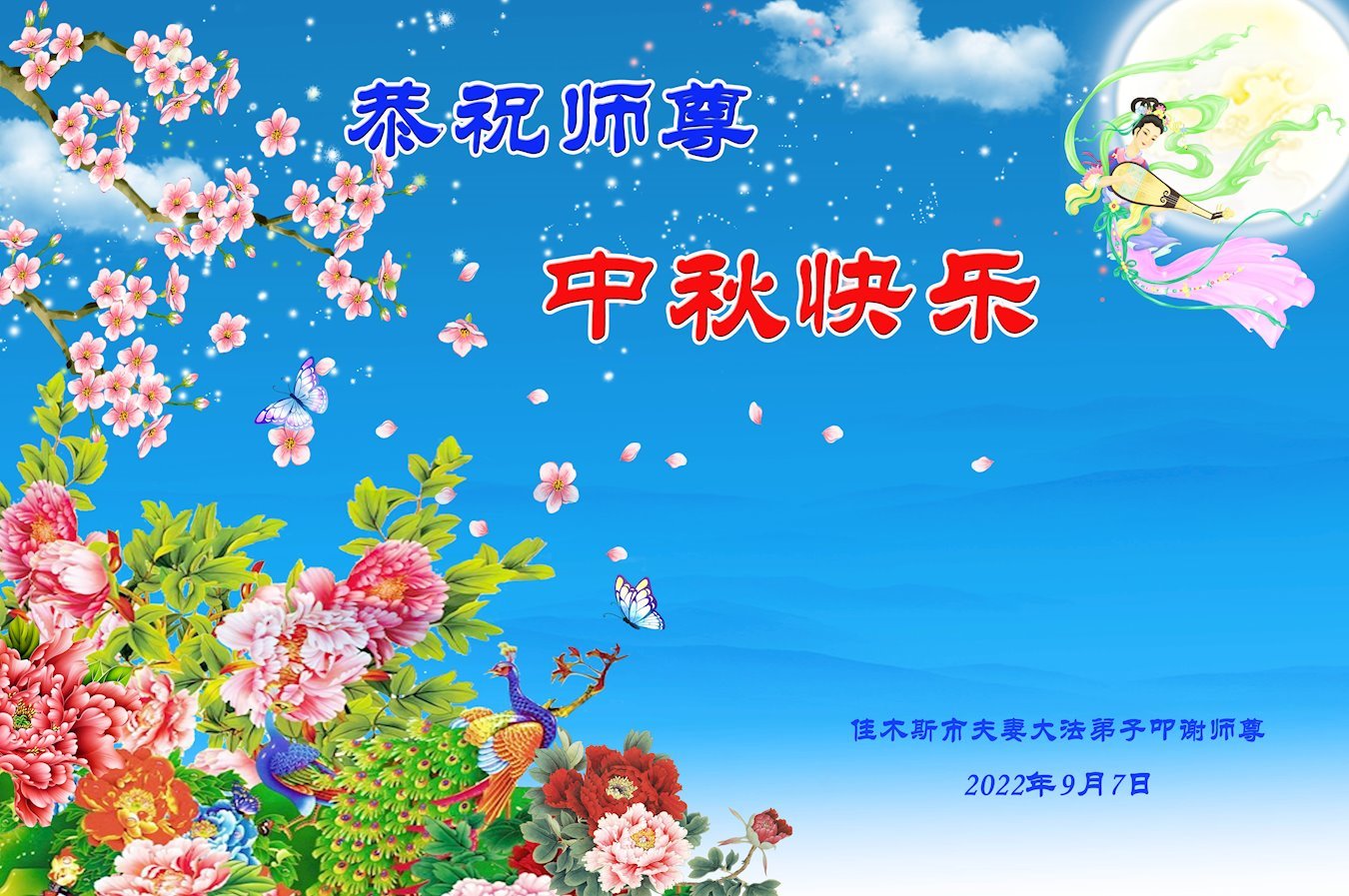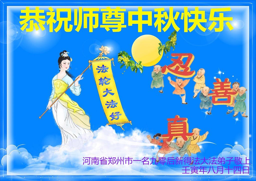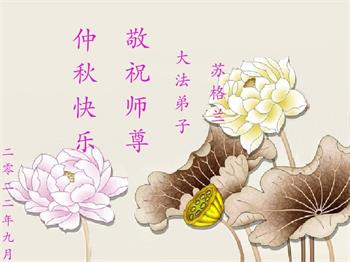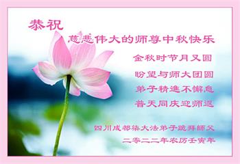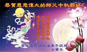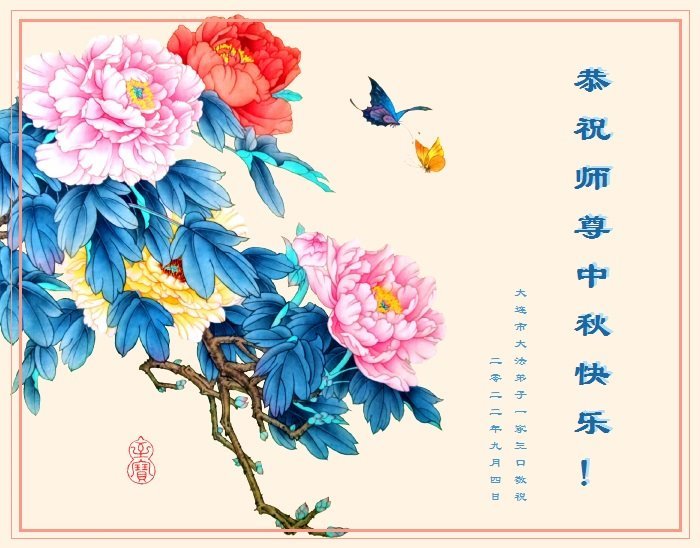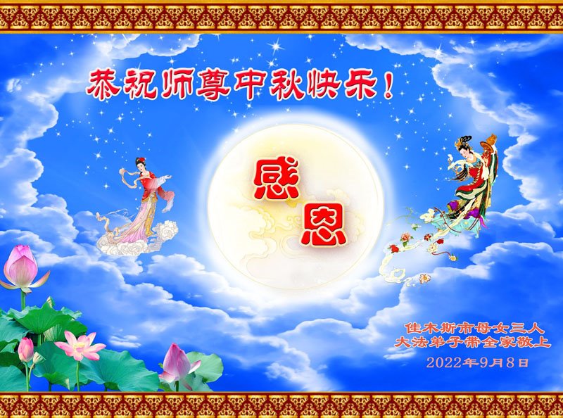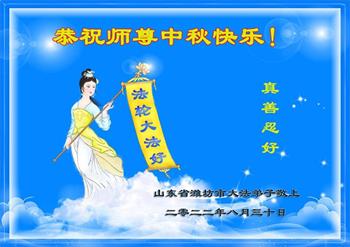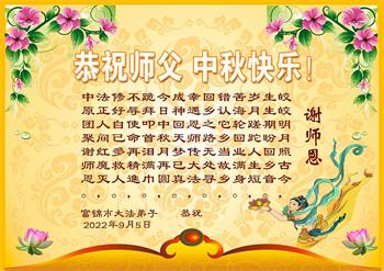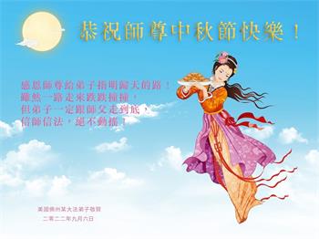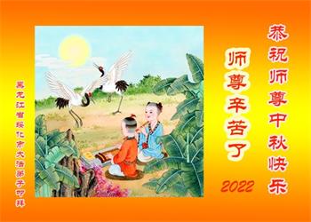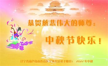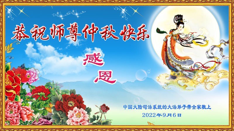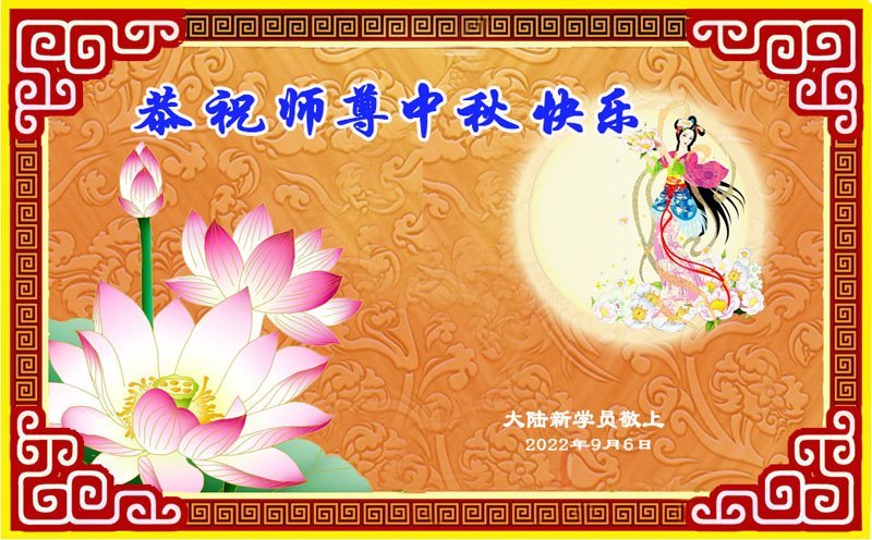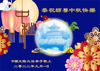 【明慧网二零二二年九月十日】(明慧网记者综合报道)壬寅年中秋佳节到了,中国各地公、检、法、司、军队机构的大法弟子的一张张美丽的贺卡飞向海外明慧网,恭祝师父佳节快乐!感恩师父的慈悲救度,并向师父表达弟子们坚修大法直至圆满的信心。