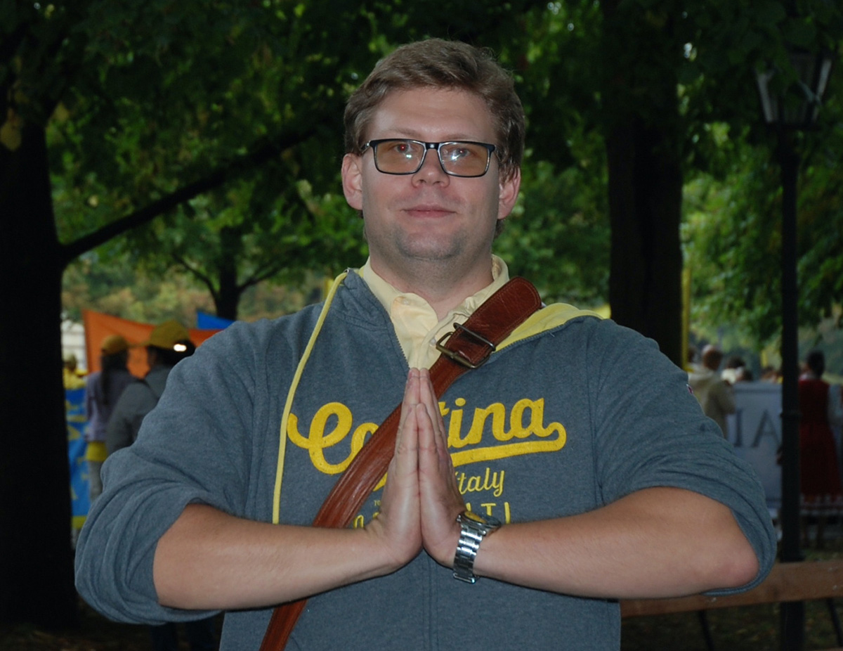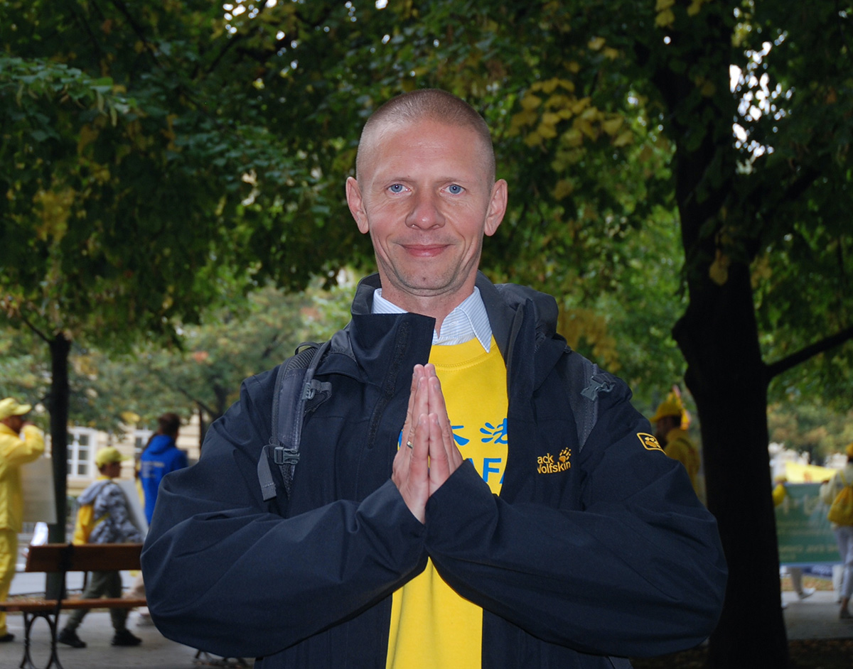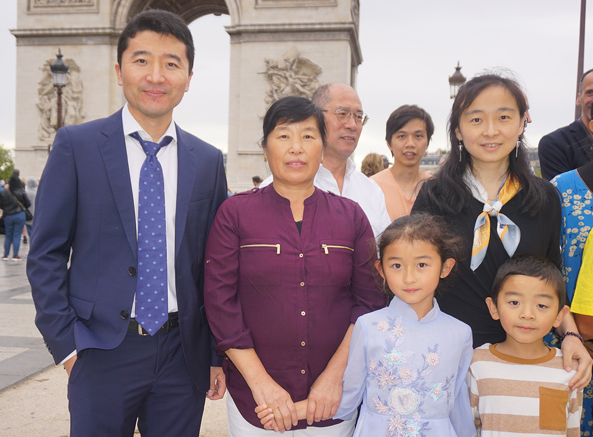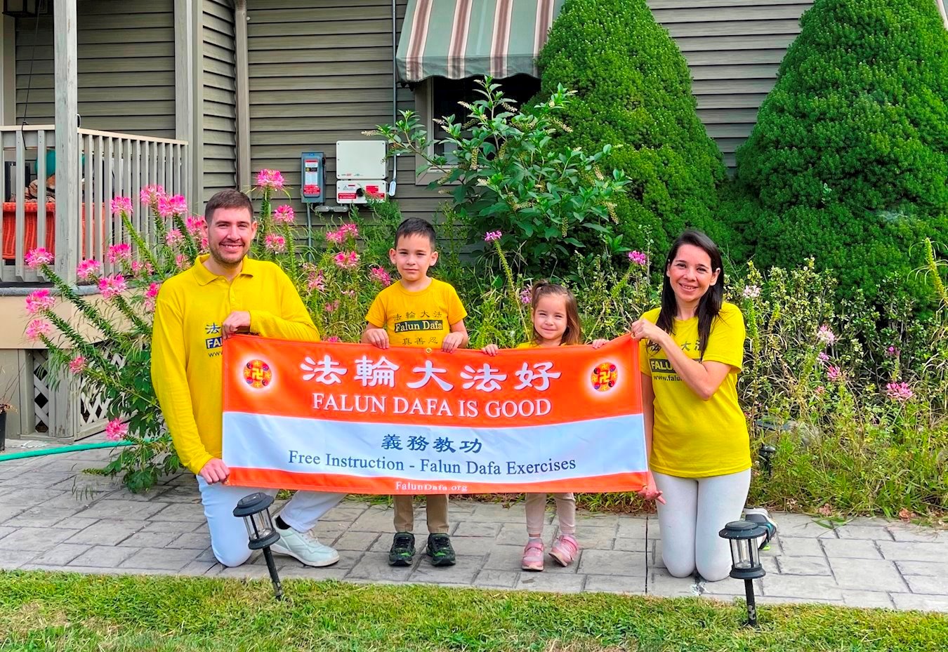 芬兰大法弟子全家跪拜合十