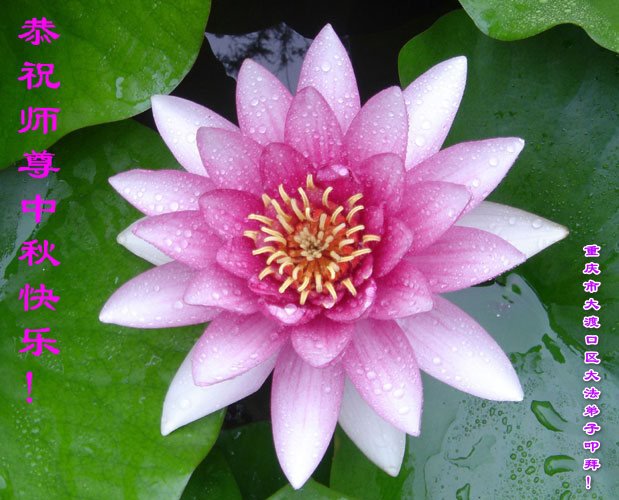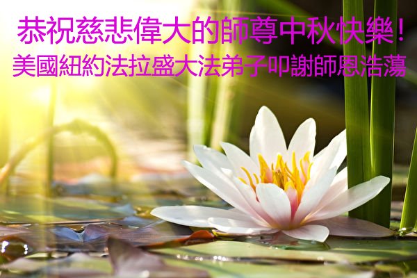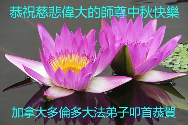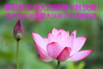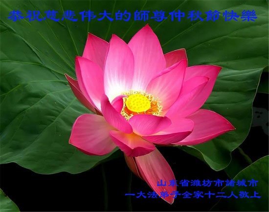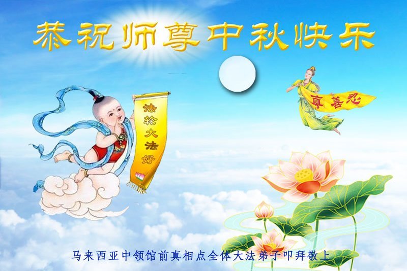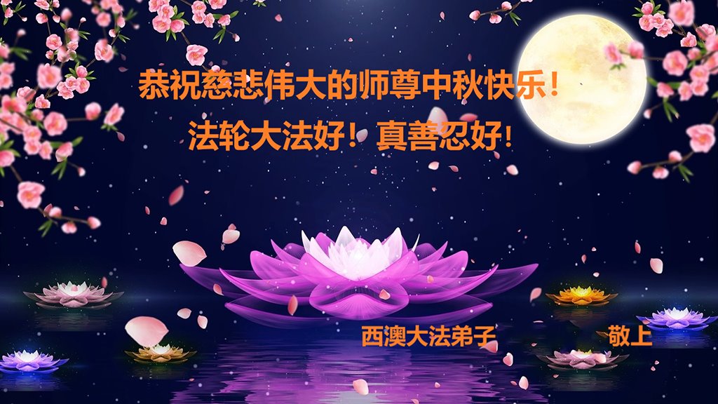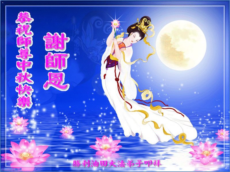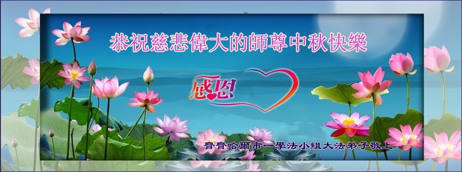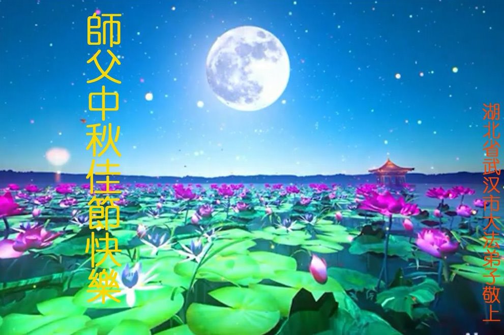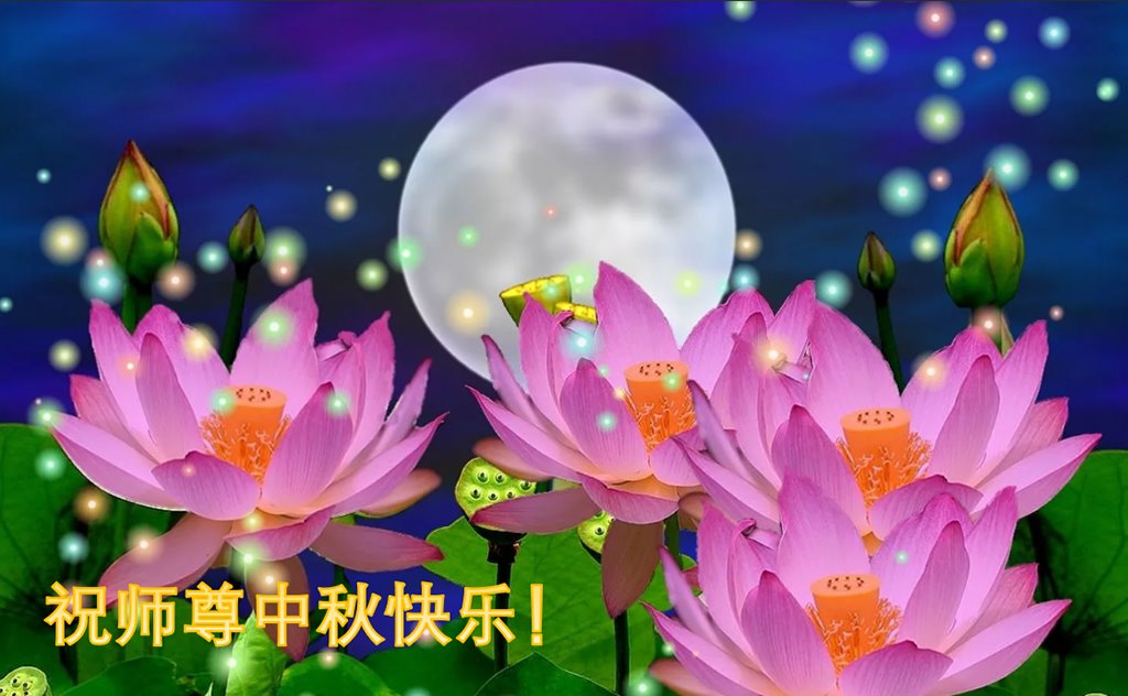 在这中秋佳节明月高悬之时,全世界的大法弟子更加思念我们慈悲伟大的师尊李洪志先生。大法洪传三十年,亿万大法徒在师尊的保护下,返本归真,助师正法,走过了阴霾密布的中共二十三年残酷迫害,大法弟子就象一朵朵圣洁的莲花,在世界各地竞相开放,讲真相、传播大法的福音,使各国人民沐浴在法轮大法的佛光普照之下。