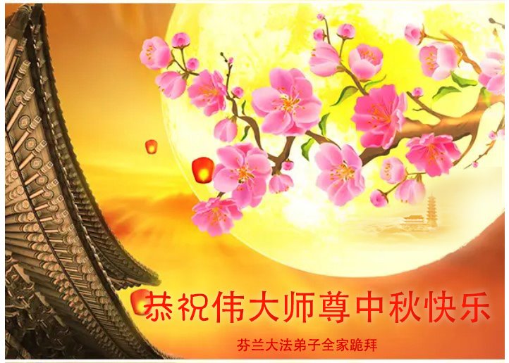芬兰大法弟子全家恭祝慈悲伟大的师尊中秋快乐!无尽感恩师尊救度之恩!师父您辛苦了!