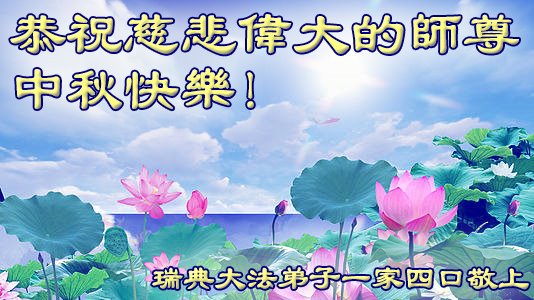 瑞典一家三位大法弟子、两位大法小弟子恭祝慈悲伟大的师父中秋节快乐!在正法的最后时期,我们全家要紧跟正法進程,在带好大法小弟子的同时,修好自己,比学比修,做好三件事,让师父少操心、多欣慰。