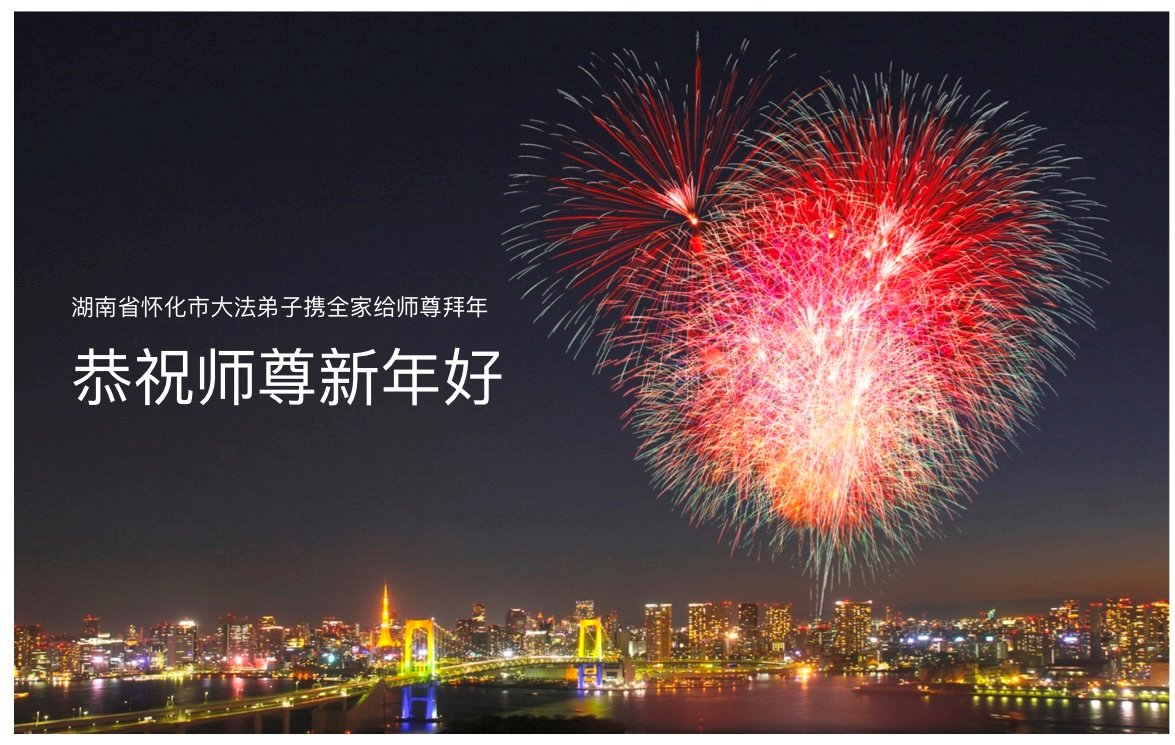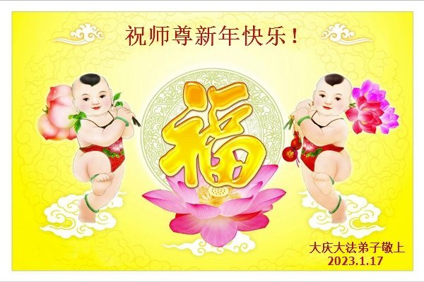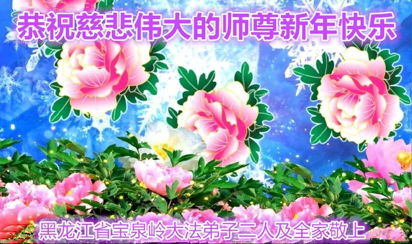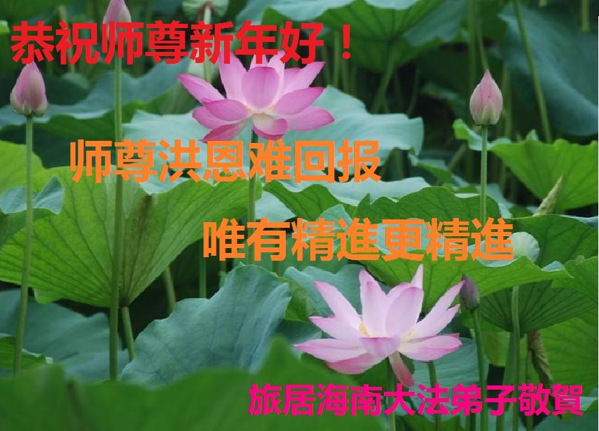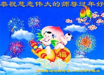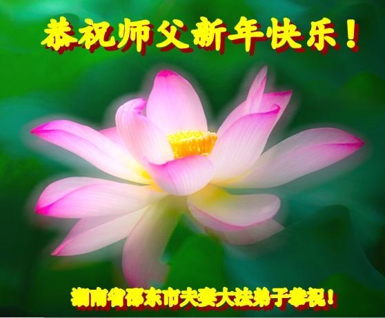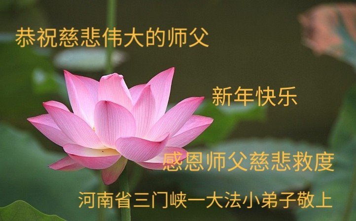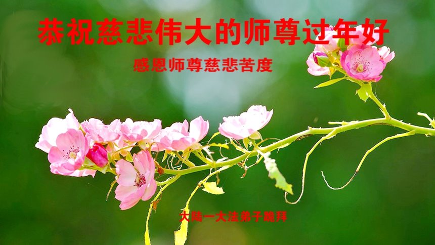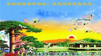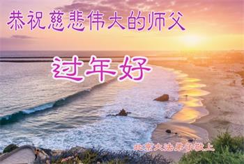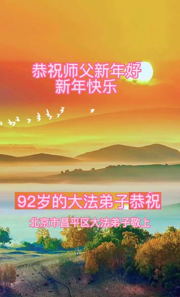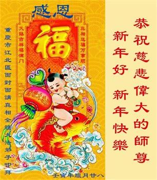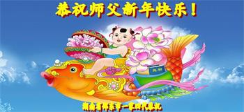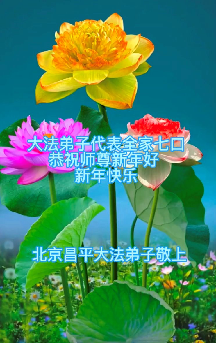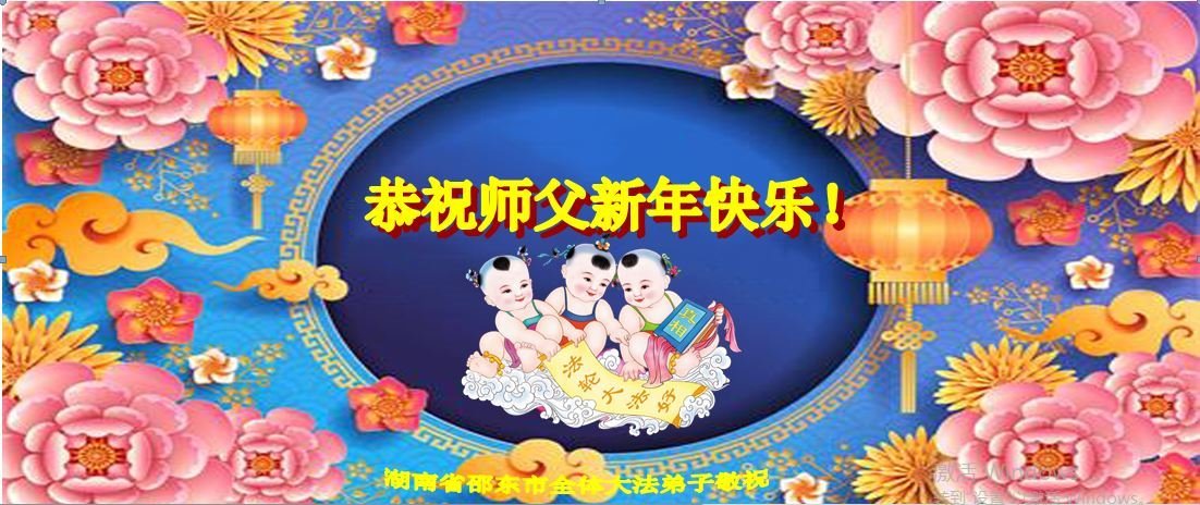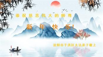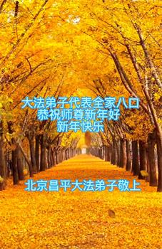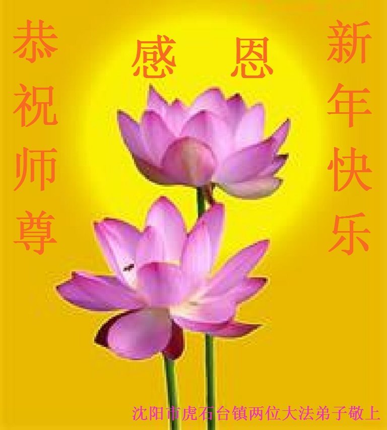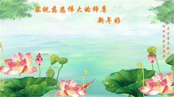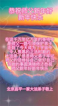 新年到来之际,我们夫妻俩老年大法弟子恭祝师父新年快乐!师父啊!弟子们想念您!助师救人是弟子们的使命不敢忘,待红魔除尽,解体恶党,法正人间迎师回中原!春回大陆师徒大团圆!