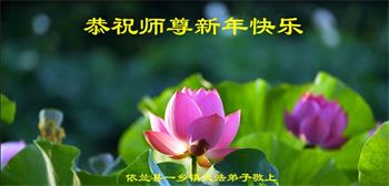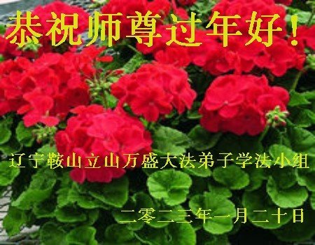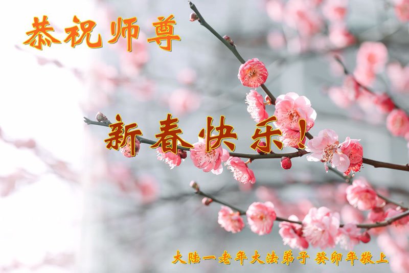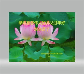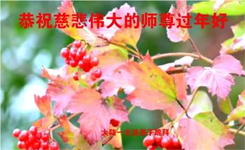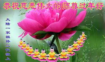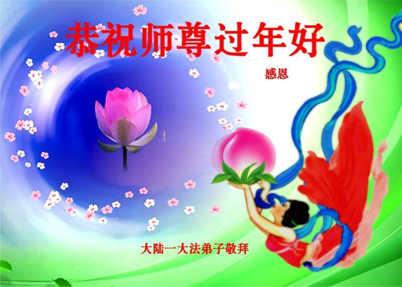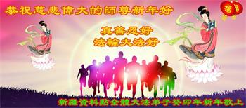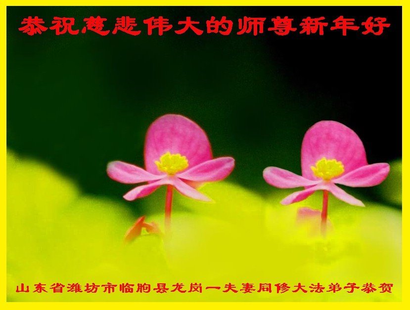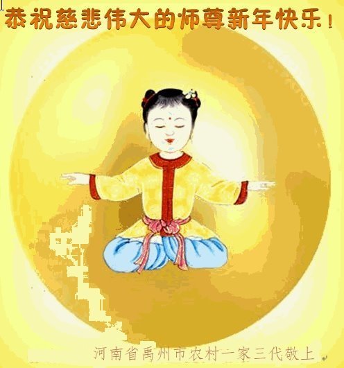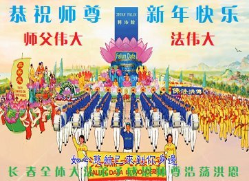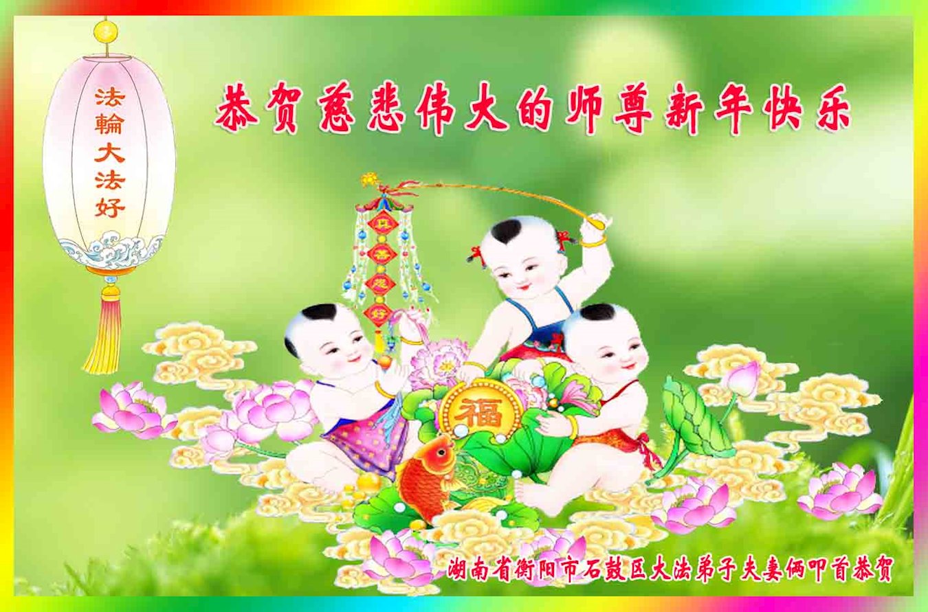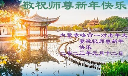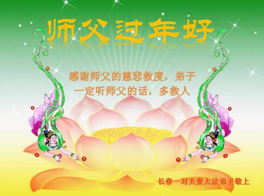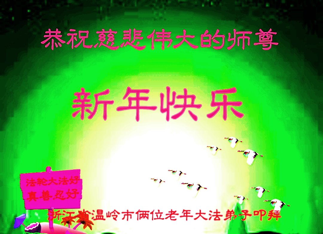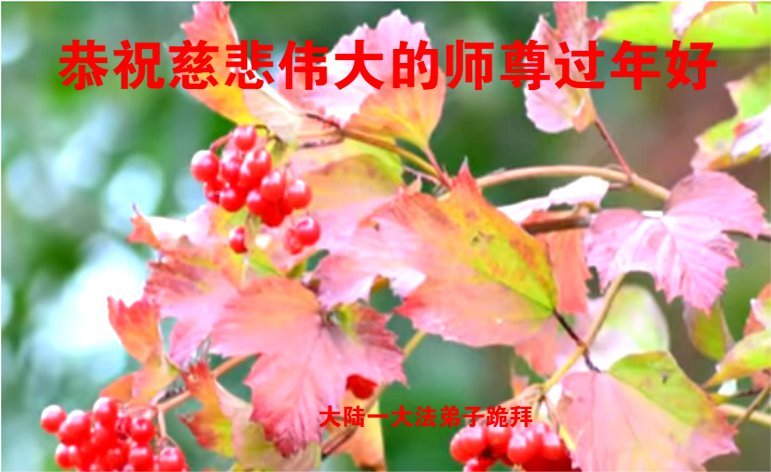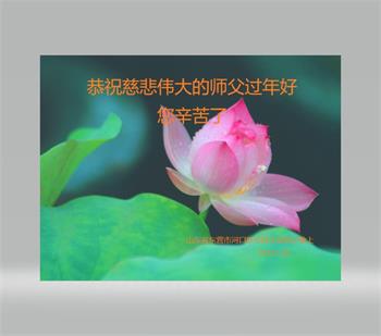 新年到来之际,我们夫妻俩老年大法弟子恭祝师父新年快乐!师父啊!弟子们想念您!助师救人是弟子们的使命不敢忘,待红魔除尽,解体恶党,法正人间迎师回中原!春回大陆师徒大团圆!