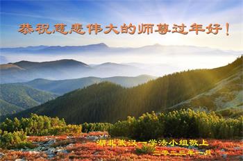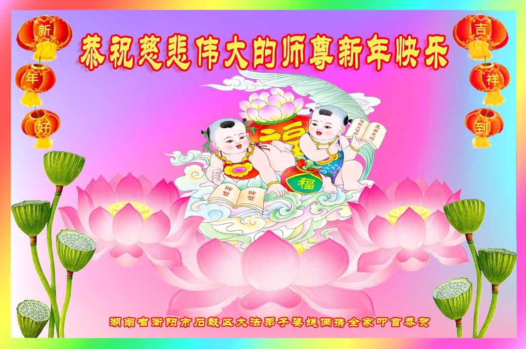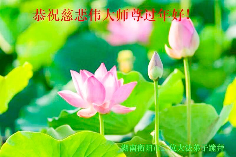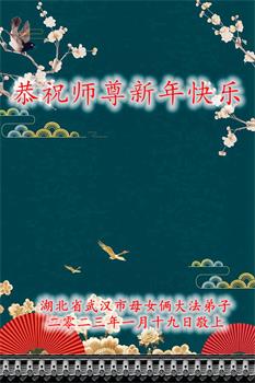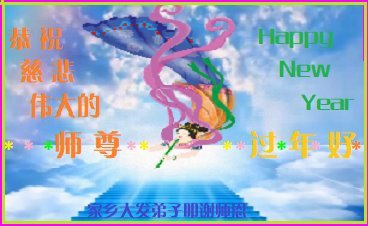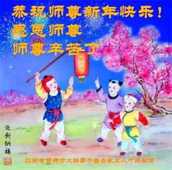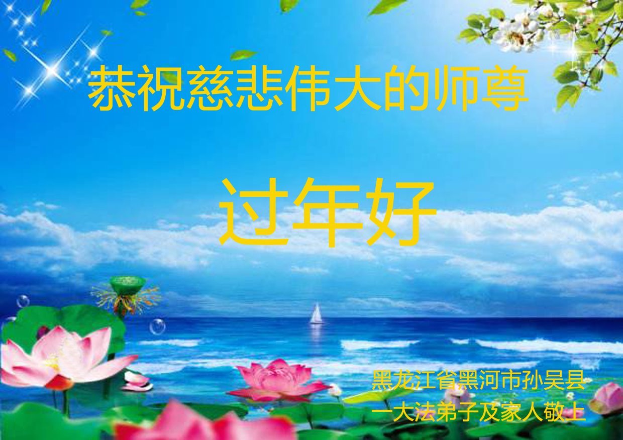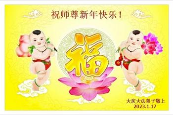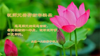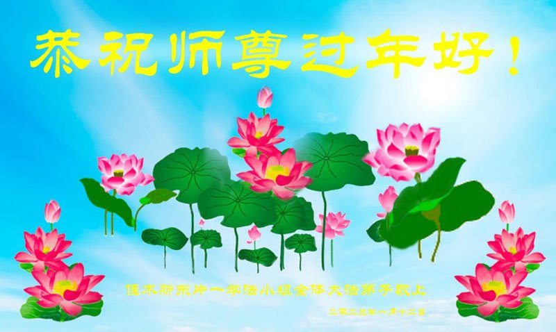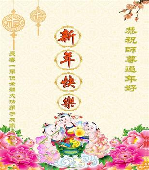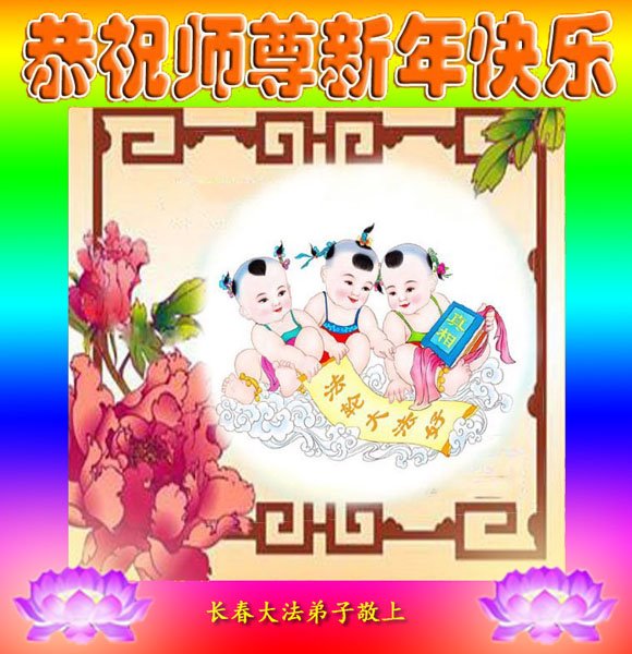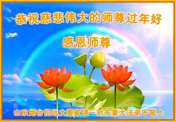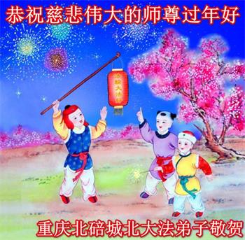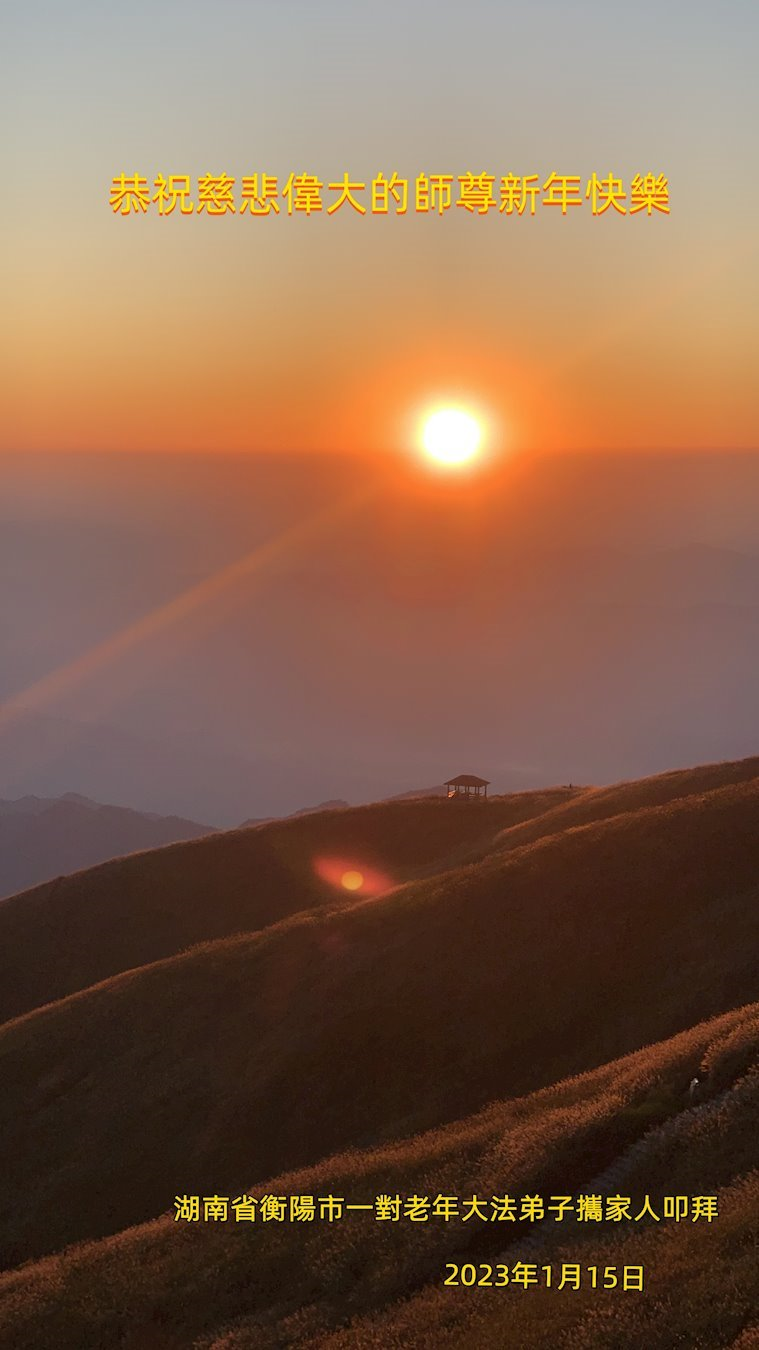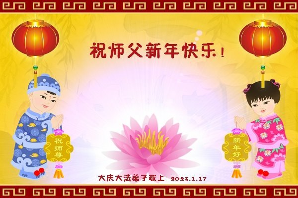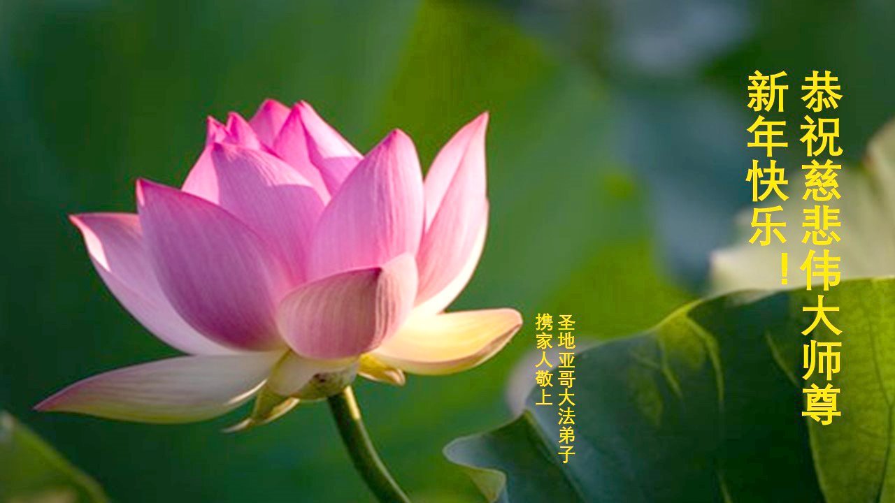 新年到来之际,我们夫妻俩老年大法弟子恭祝师父新年快乐!师父啊!弟子们想念您!助师救人是弟子们的使命不敢忘,待红魔除尽,解体恶党,法正人间迎师回中原!春回大陆师徒大团圆!