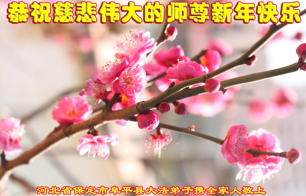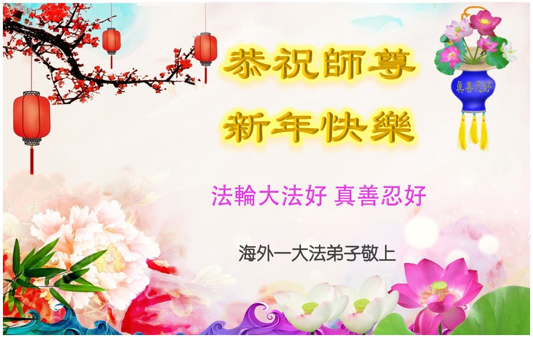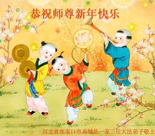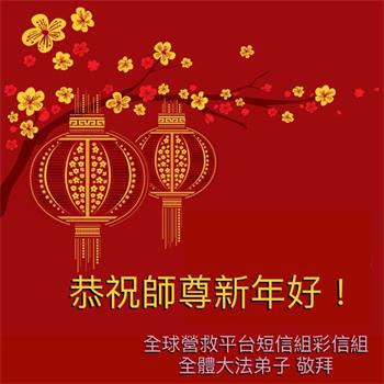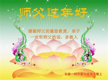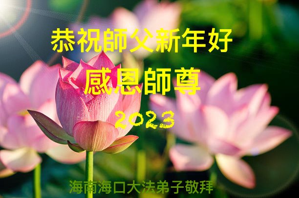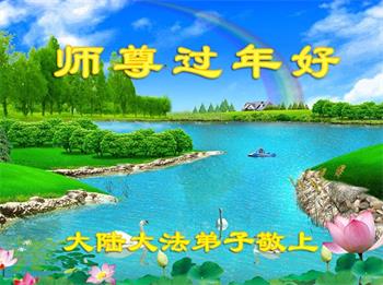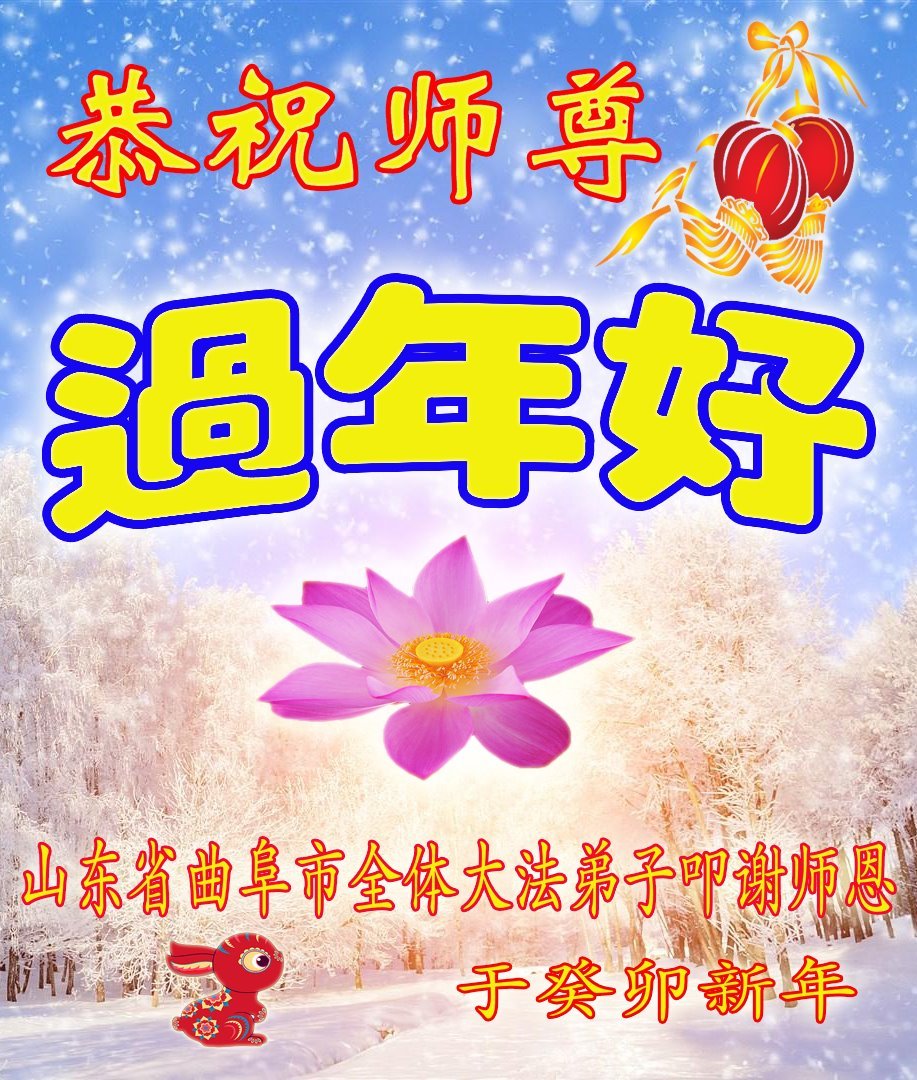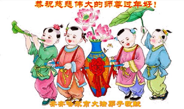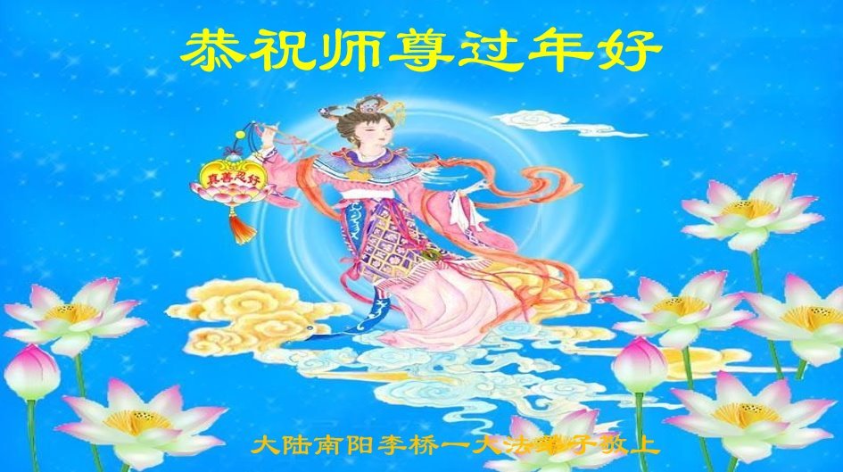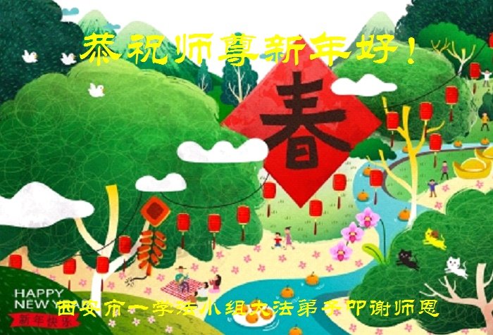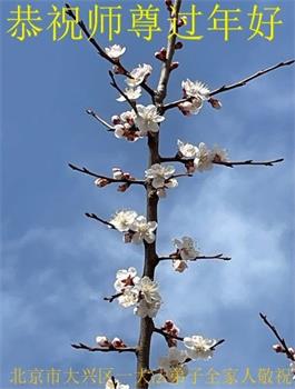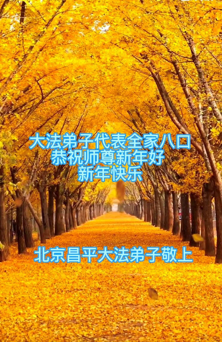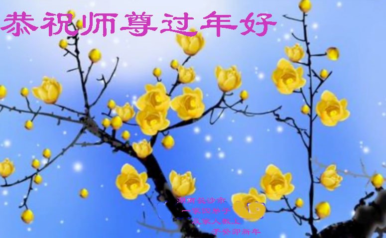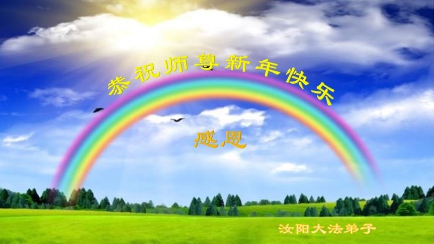 新年到来之际,我们夫妻俩老年大法弟子恭祝师父新年快乐!师父啊!弟子们想念您!助师救人是弟子们的使命不敢忘,待红魔除尽,解体恶党,法正人间迎师回中原!春回大陆师徒大团圆!