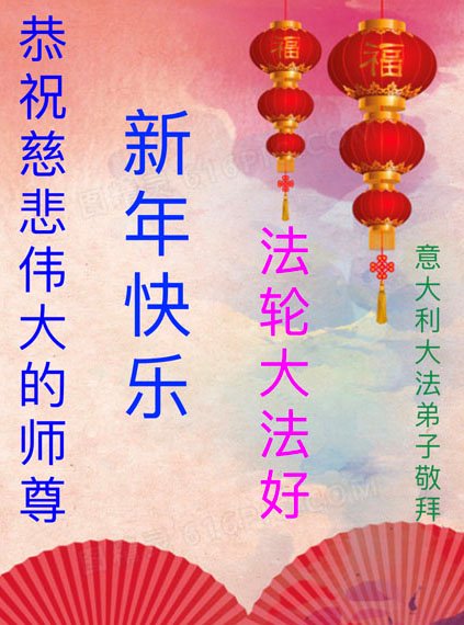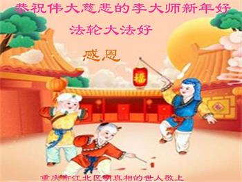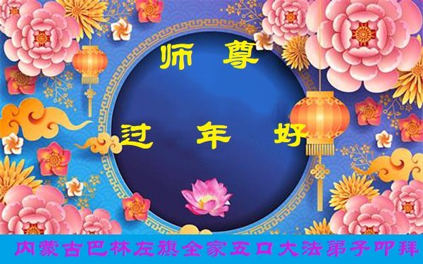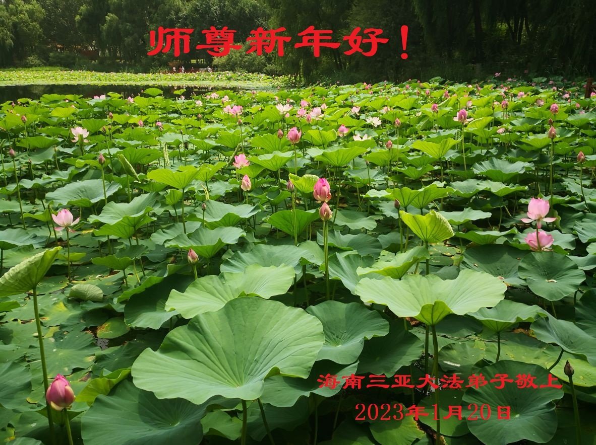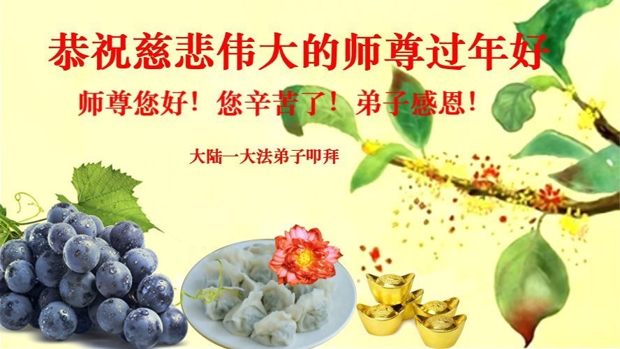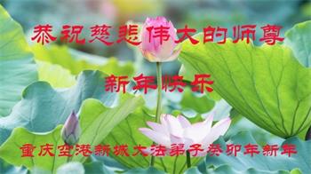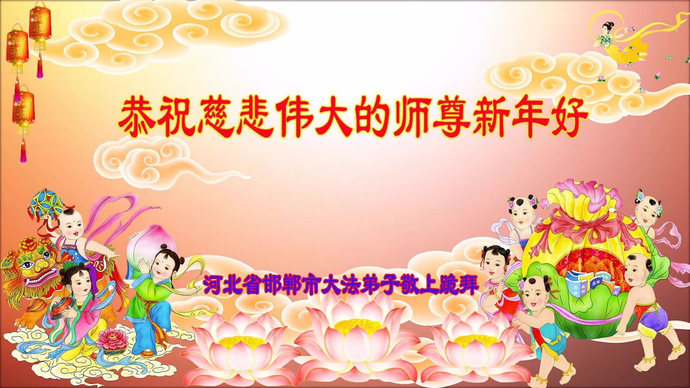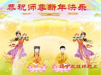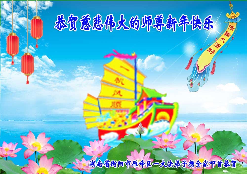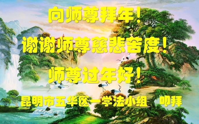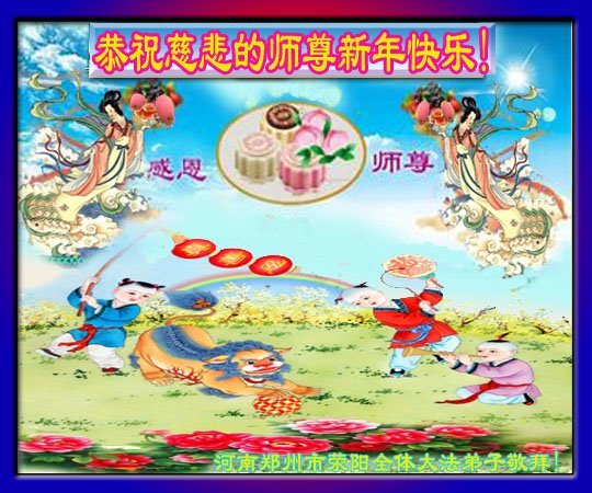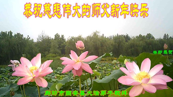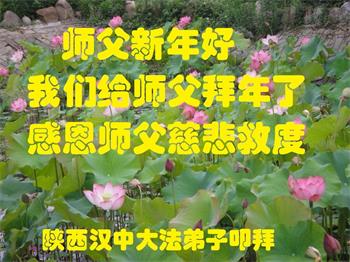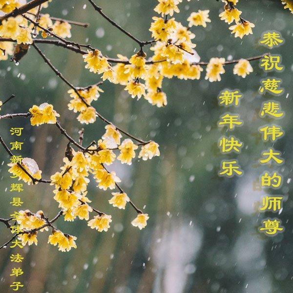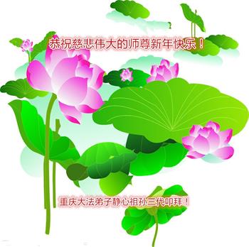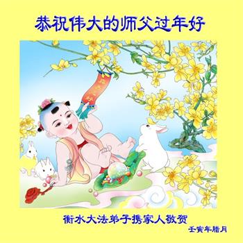 新年到来之际,我们夫妻俩老年大法弟子恭祝师父新年快乐!师父啊!弟子们想念您!助师救人是弟子们的使命不敢忘,待红魔除尽,解体恶党,法正人间迎师回中原!春回大陆师徒大团圆!