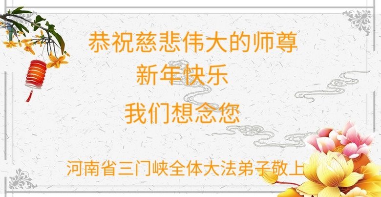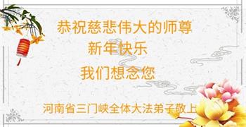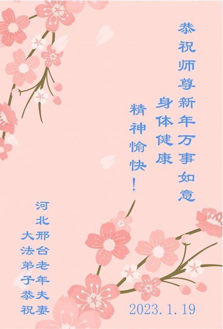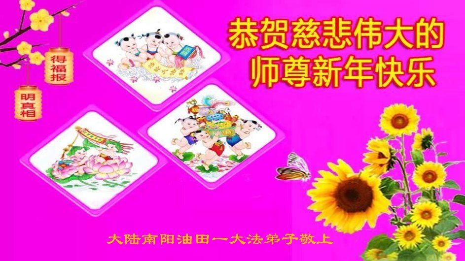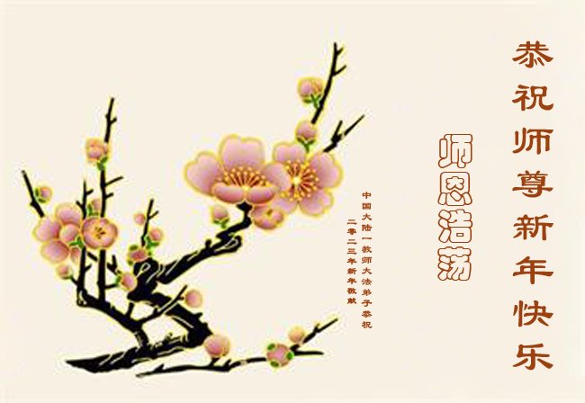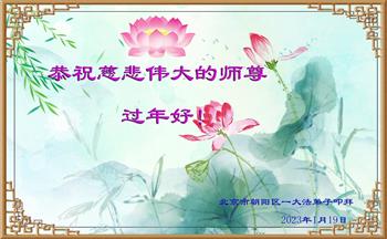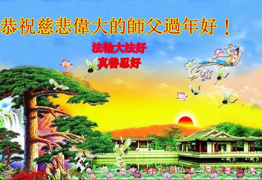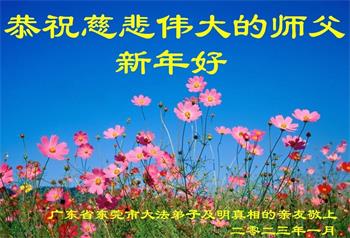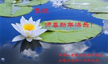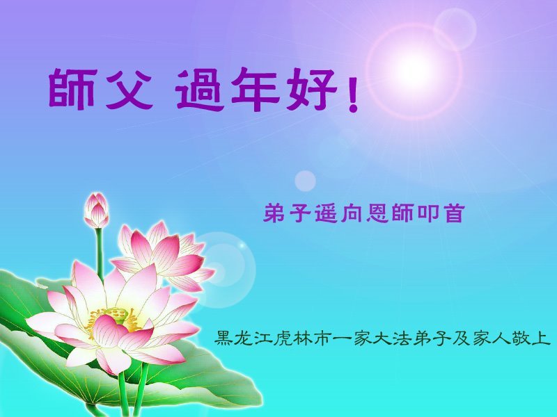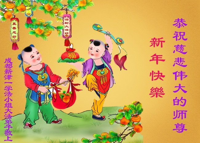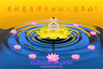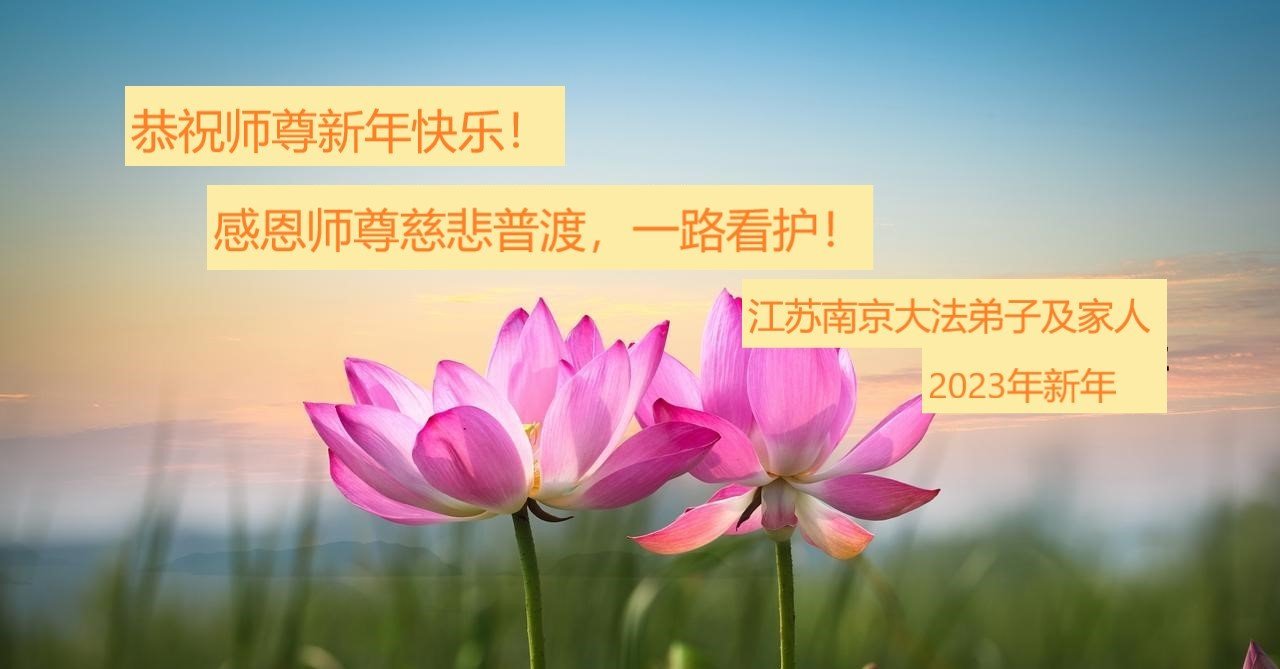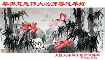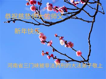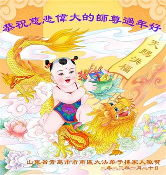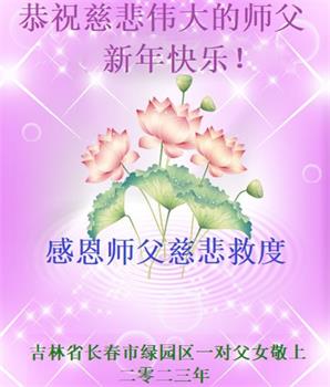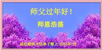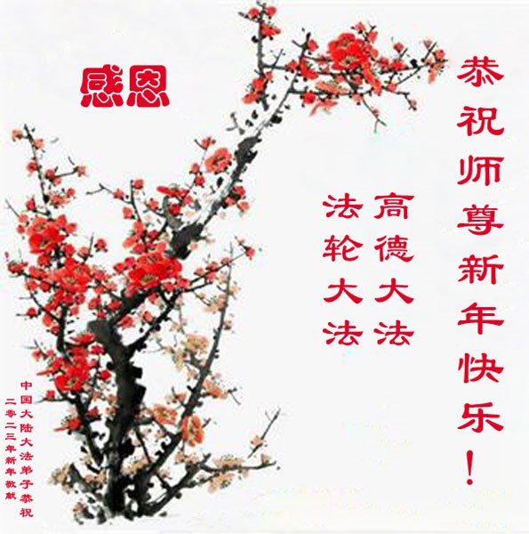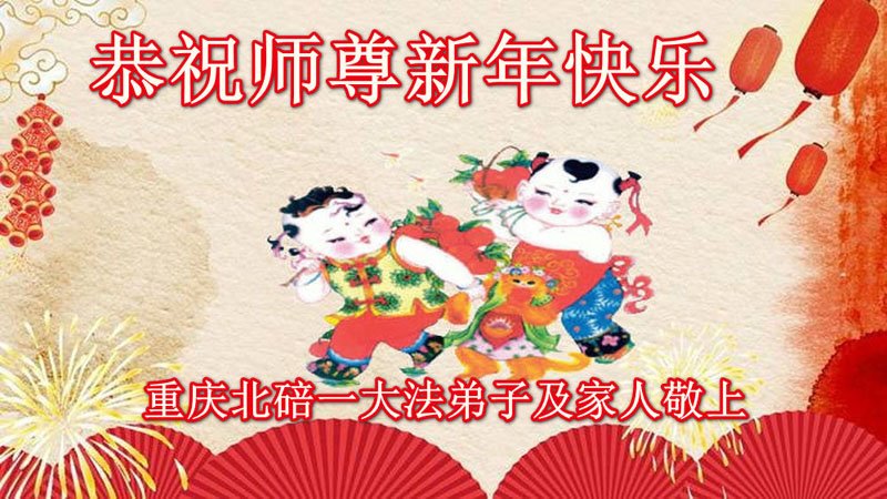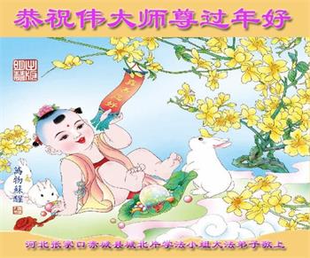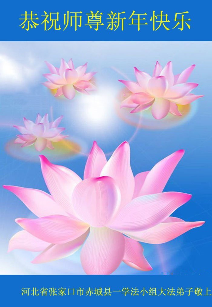 新年到来之际,我们夫妻俩老年大法弟子恭祝师父新年快乐!师父啊!弟子们想念您!助师救人是弟子们的使命不敢忘,待红魔除尽,解体恶党,法正人间迎师回中原!春回大陆师徒大团圆!