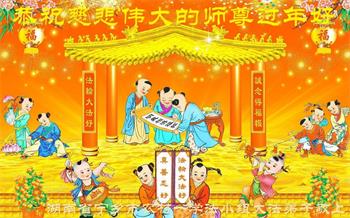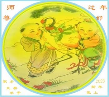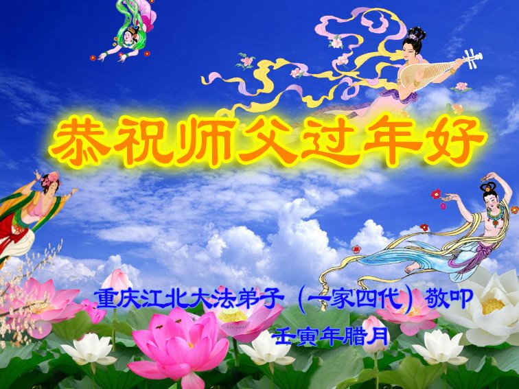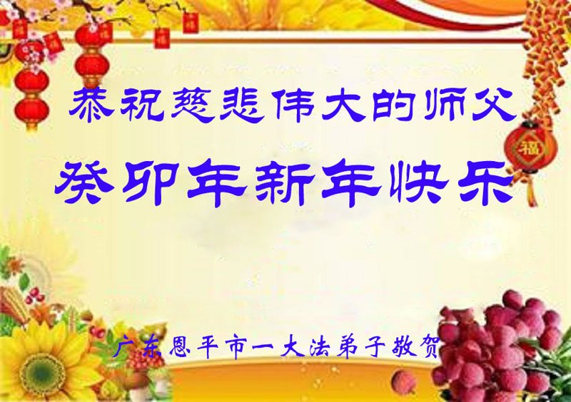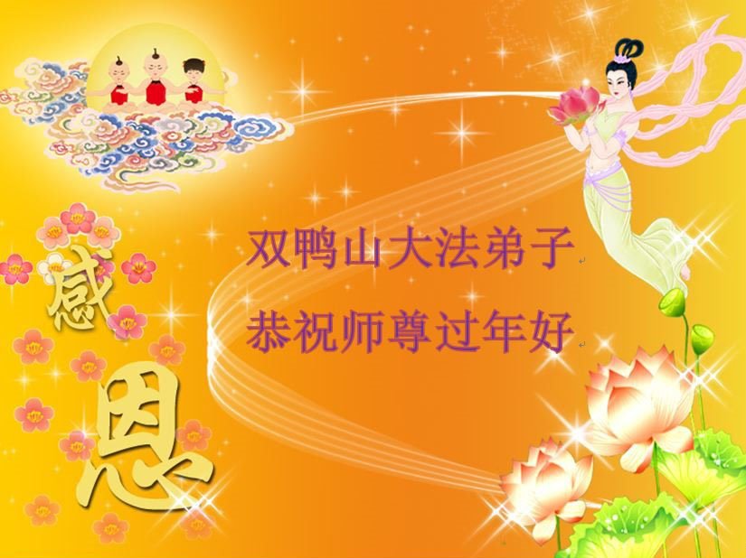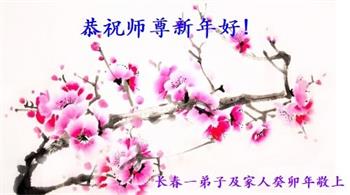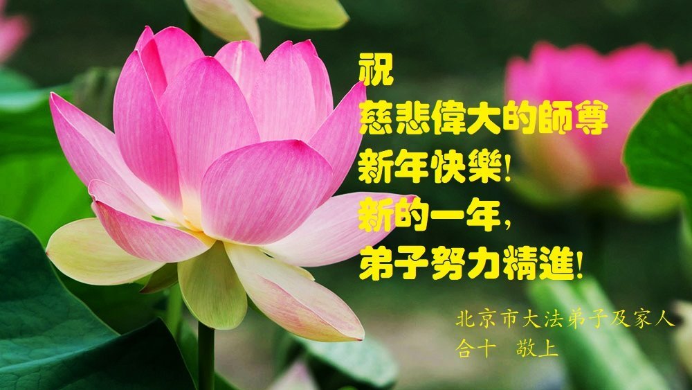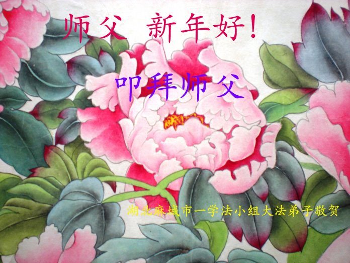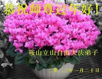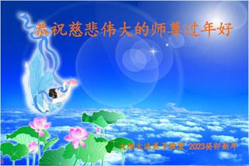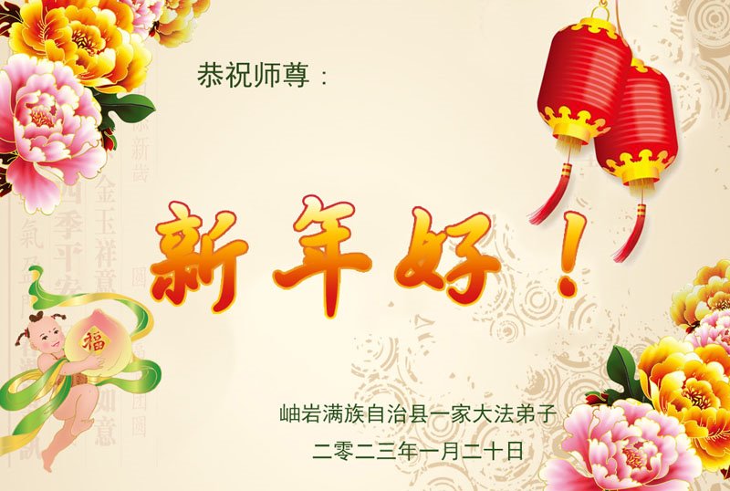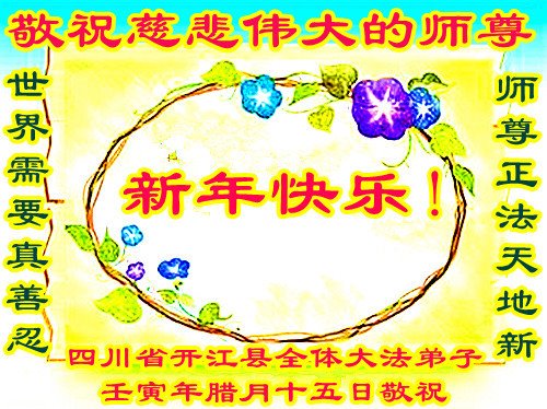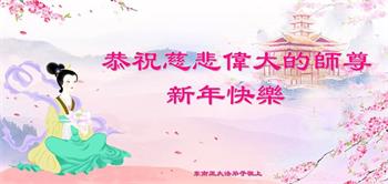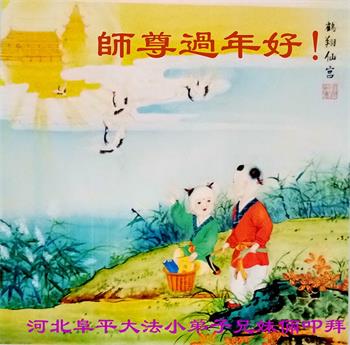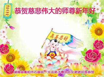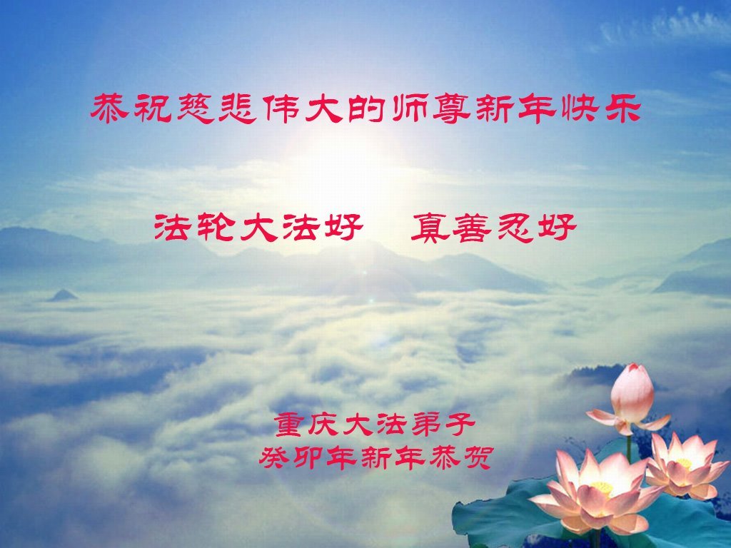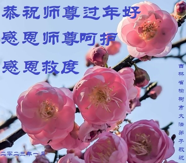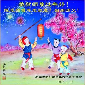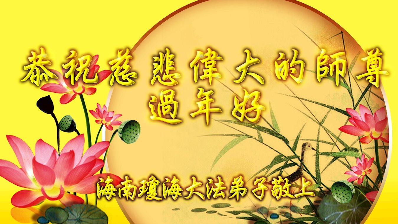 新年到来之际,我们夫妻俩老年大法弟子恭祝师父新年快乐!师父啊!弟子们想念您!助师救人是弟子们的使命不敢忘,待红魔除尽,解体恶党,法正人间迎师回中原!春回大陆师徒大团圆!
