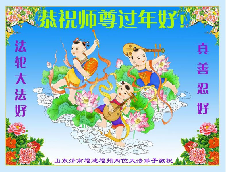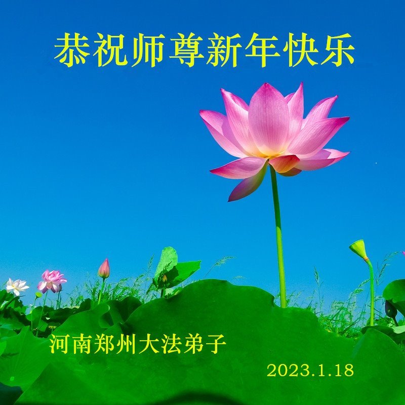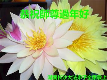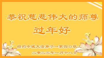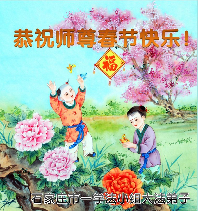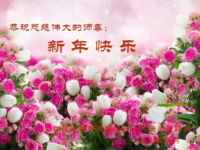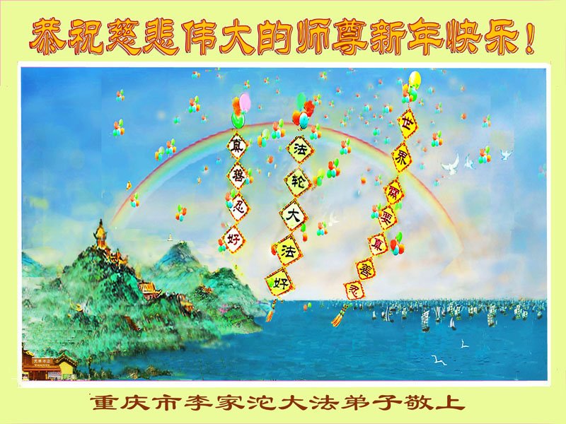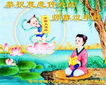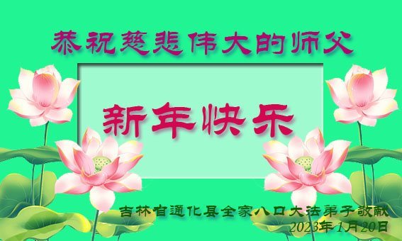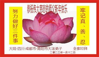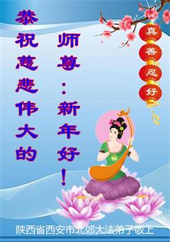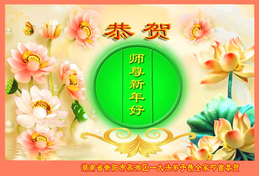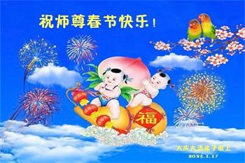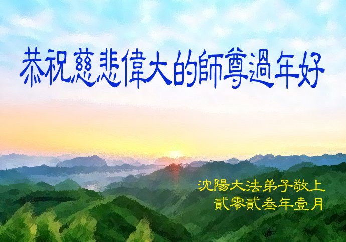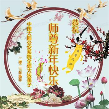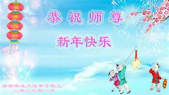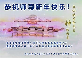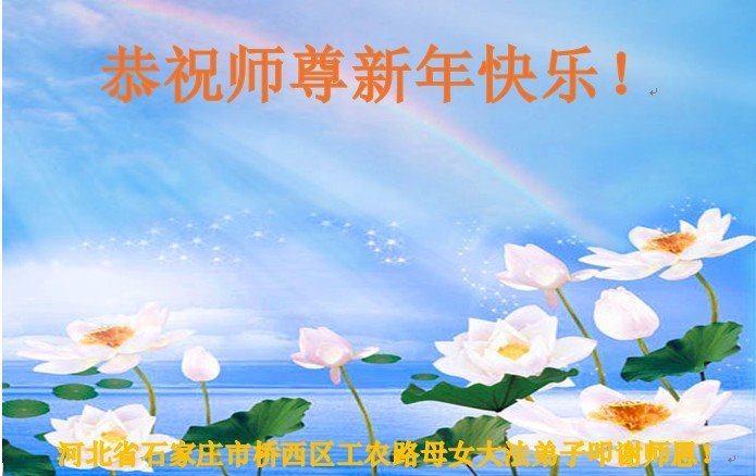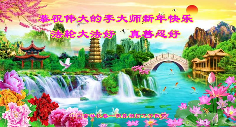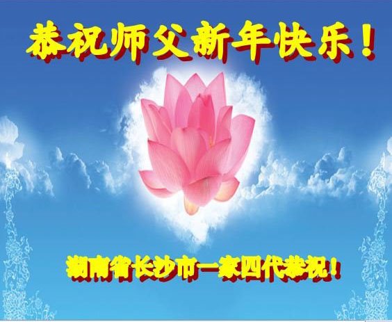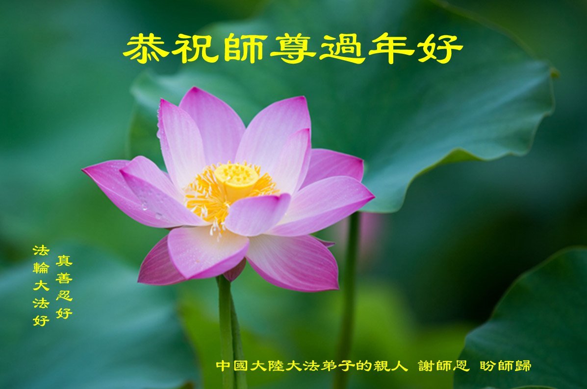 新年到来之际,我们夫妻俩老年大法弟子恭祝师父新年快乐!师父啊!弟子们想念您!助师救人是弟子们的使命不敢忘,待红魔除尽,解体恶党,法正人间迎师回中原!春回大陆师徒大团圆!