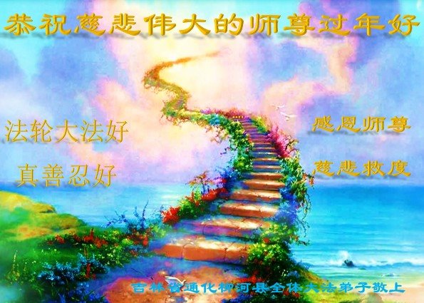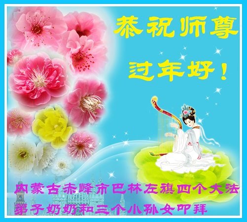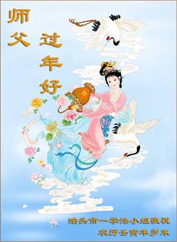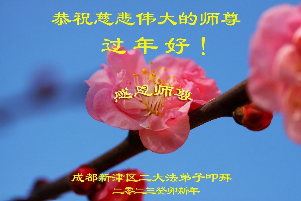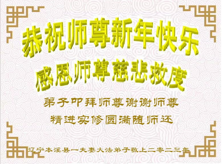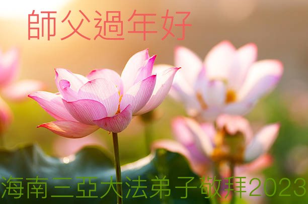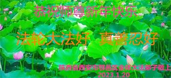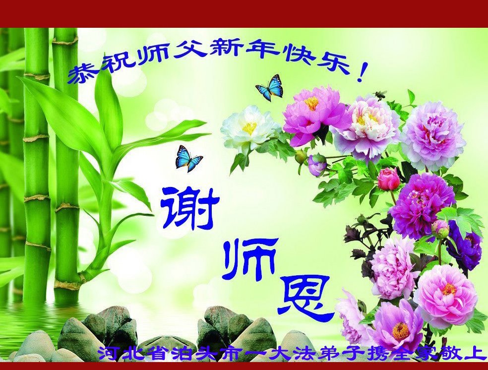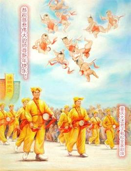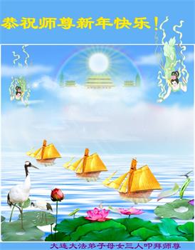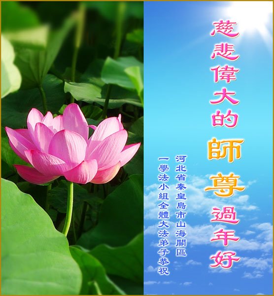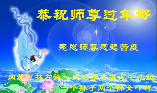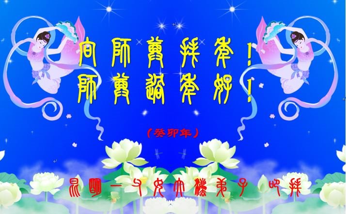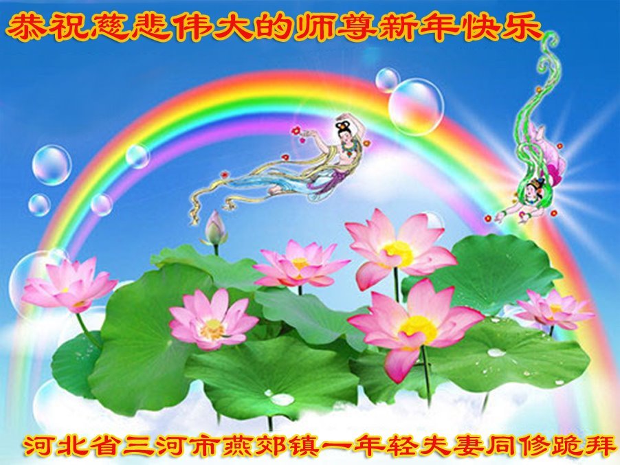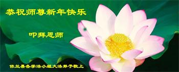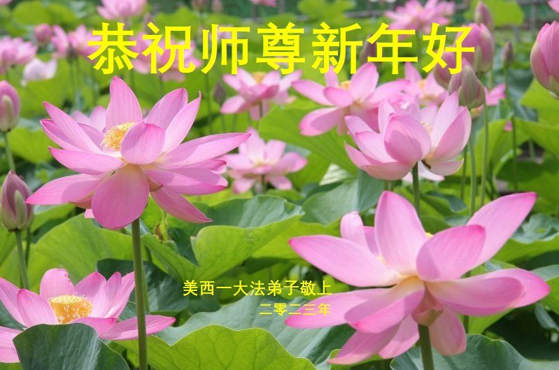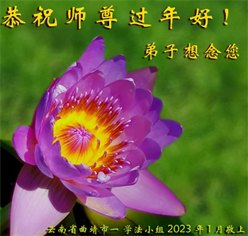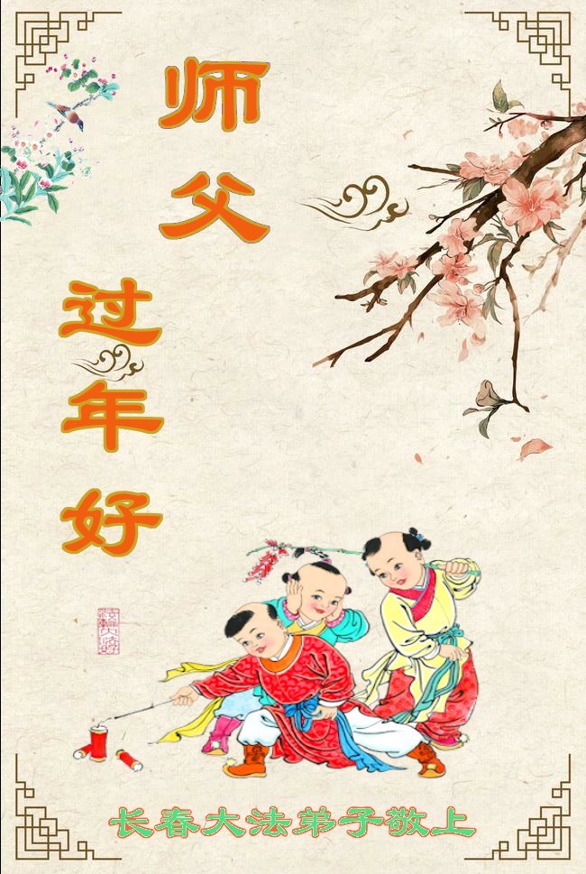 新年到来之际,我们夫妻俩老年大法弟子恭祝师父新年快乐!师父啊!弟子们想念您!助师救人是弟子们的使命不敢忘,待红魔除尽,解体恶党,法正人间迎师回中原!春回大陆师徒大团圆!