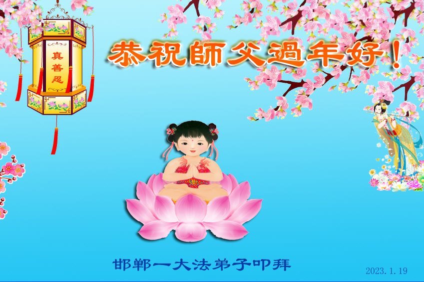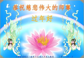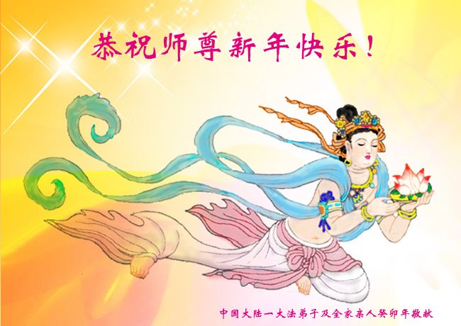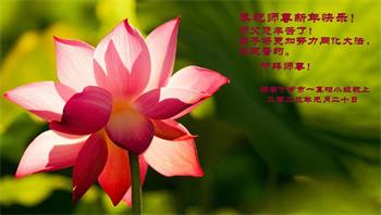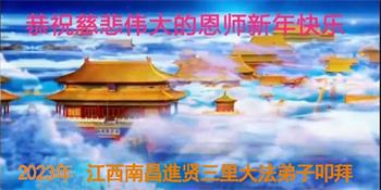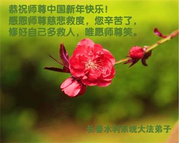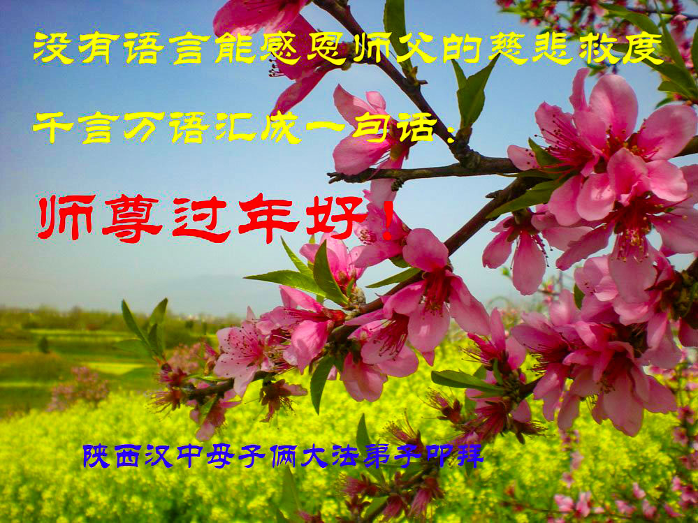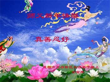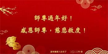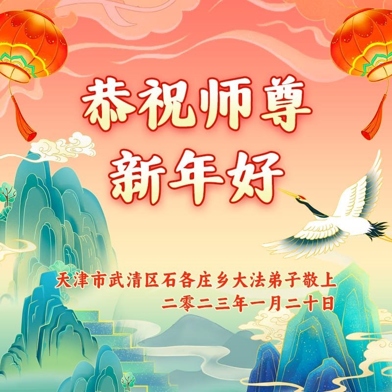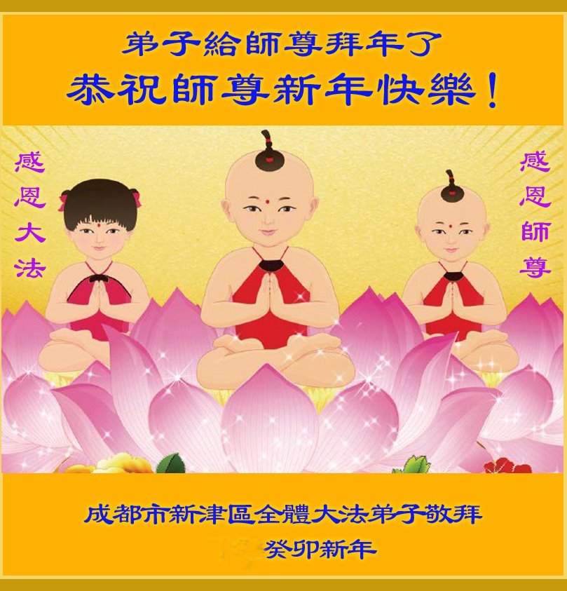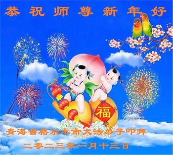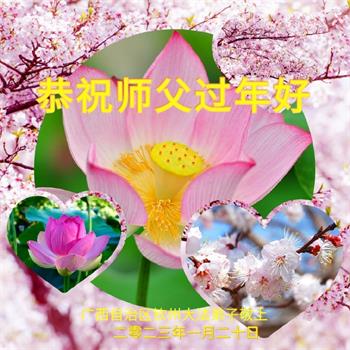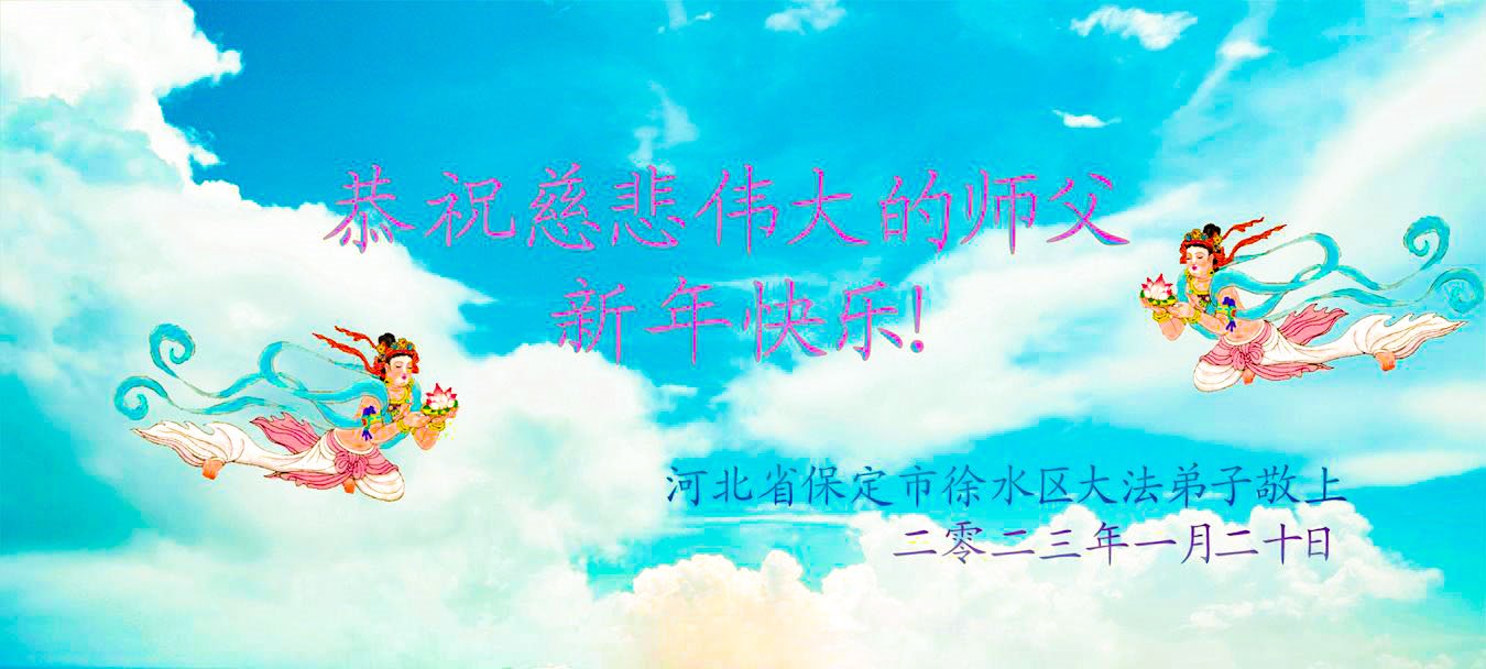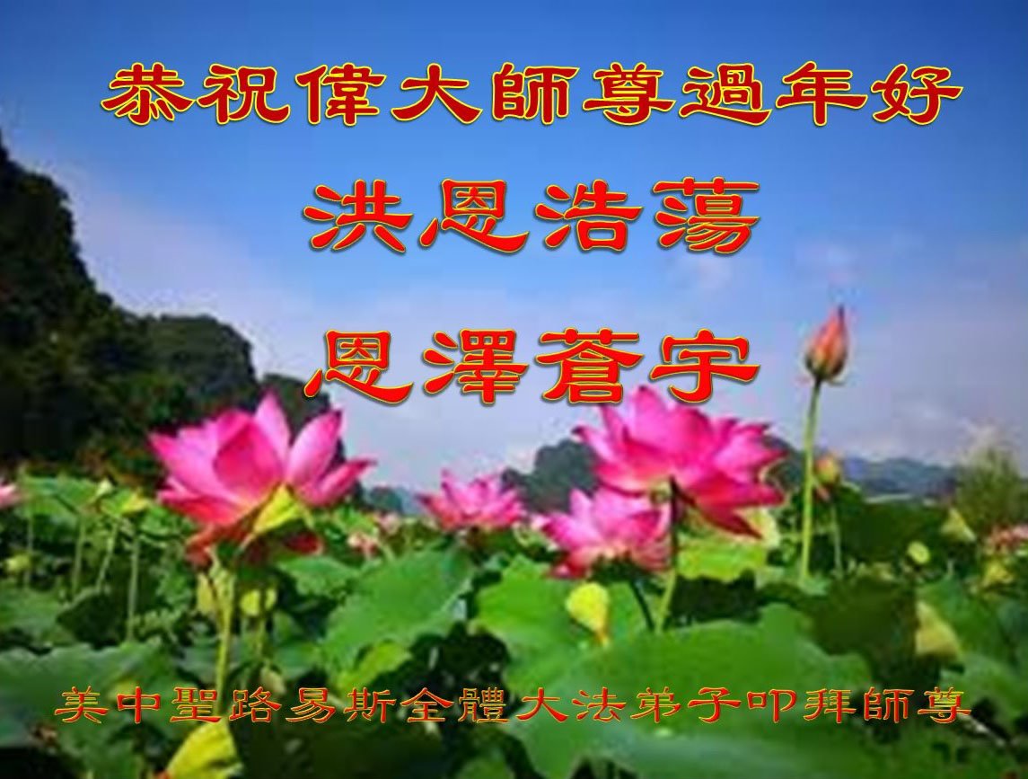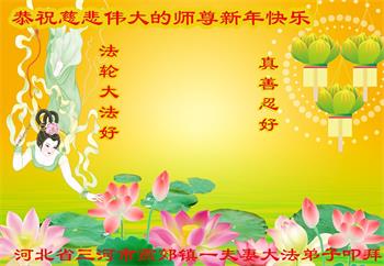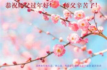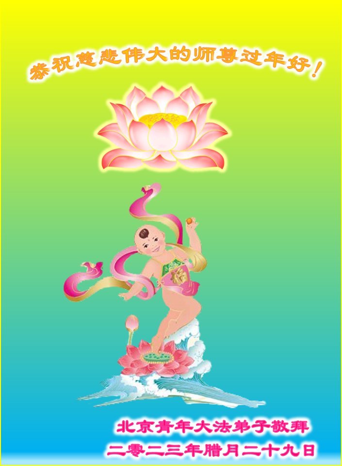 新年到来之际,我们夫妻俩老年大法弟子恭祝师父新年快乐!师父啊!弟子们想念您!助师救人是弟子们的使命不敢忘,待红魔除尽,解体恶党,法正人间迎师回中原!春回大陆师徒大团圆!
