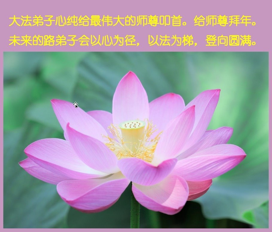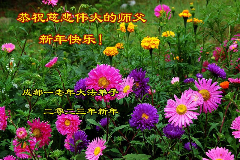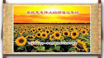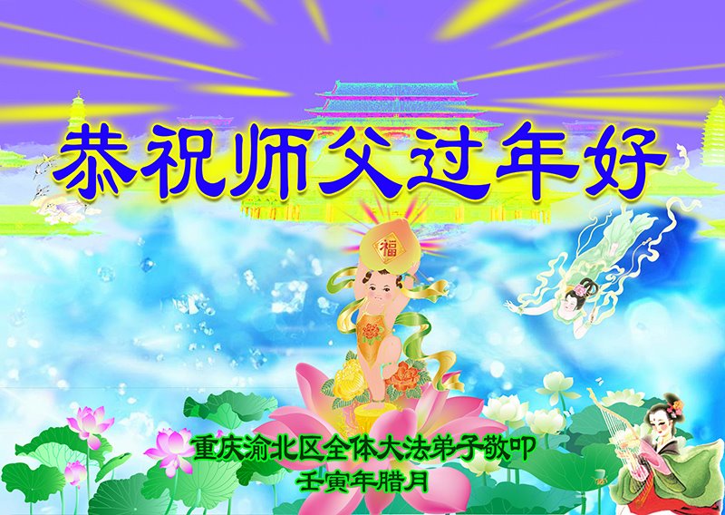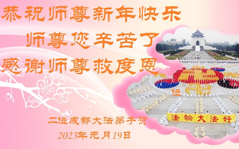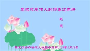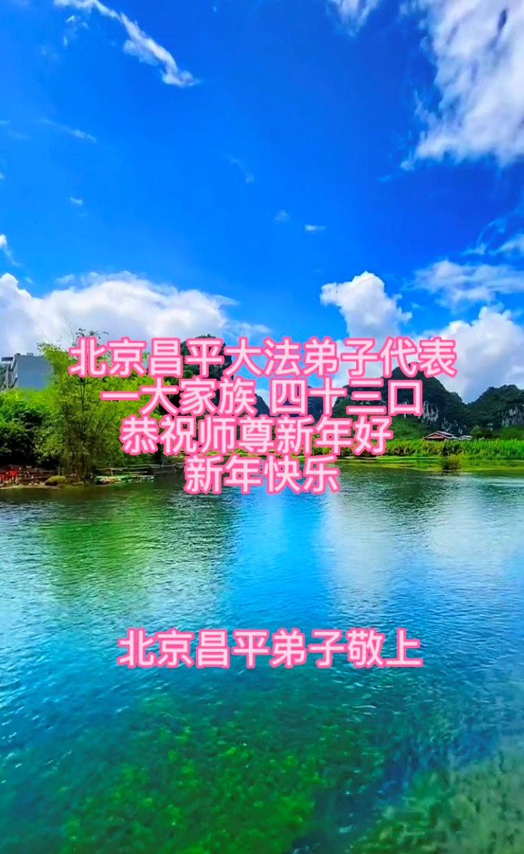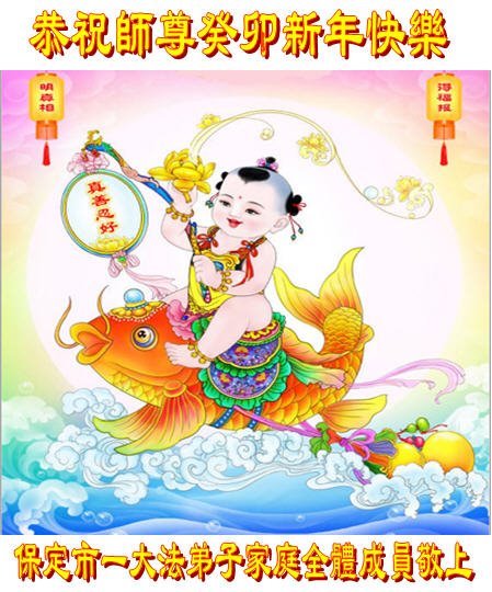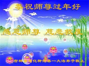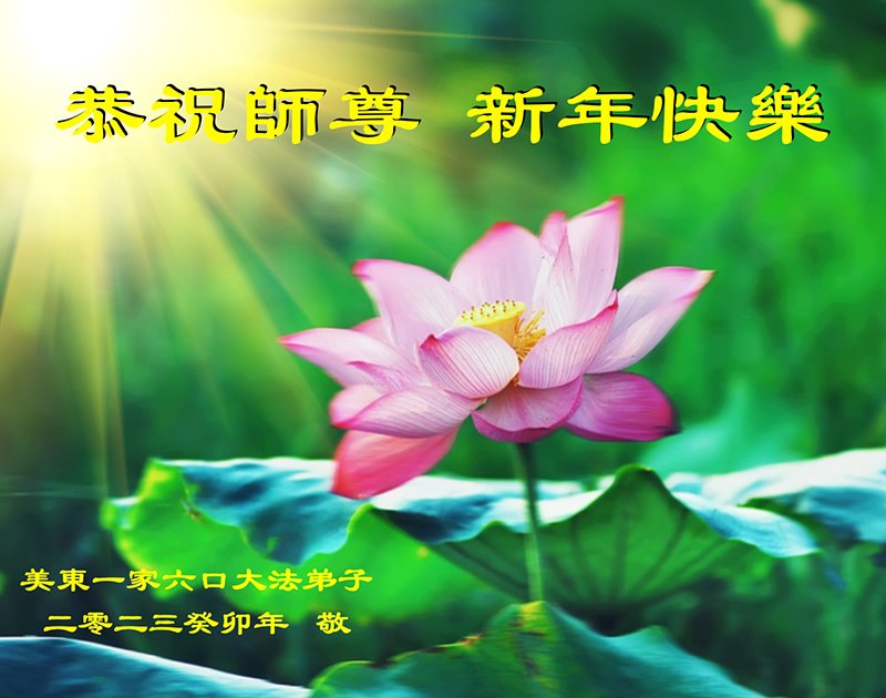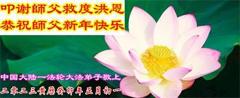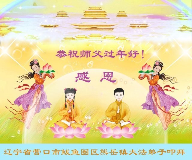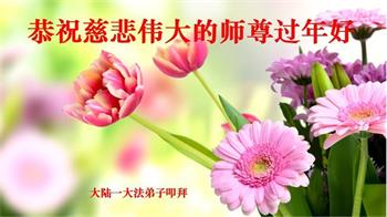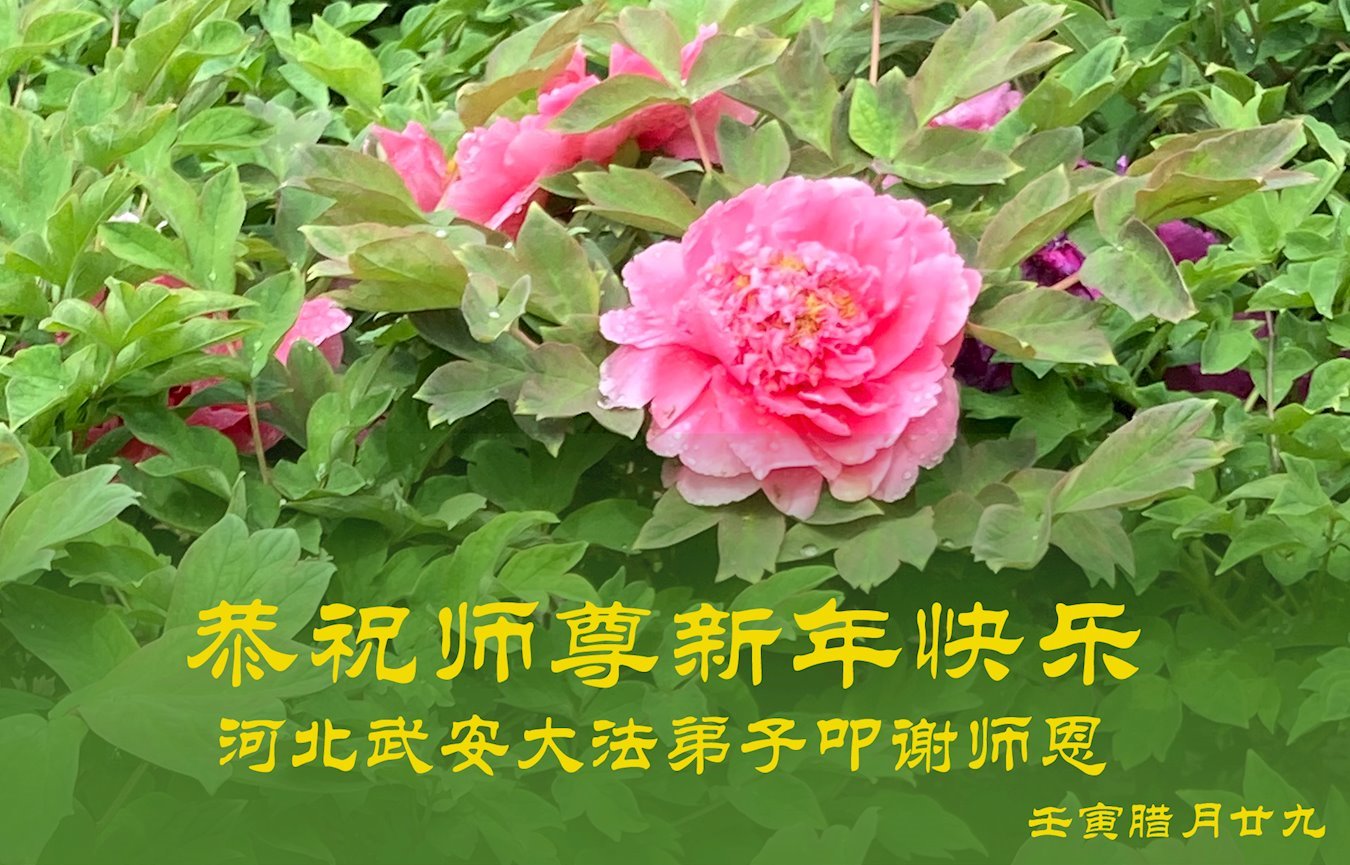 新年到来之际,我们夫妻俩老年大法弟子恭祝师父新年快乐!师父啊!弟子们想念您!助师救人是弟子们的使命不敢忘,待红魔除尽,解体恶党,法正人间迎师回中原!春回大陆师徒大团圆!