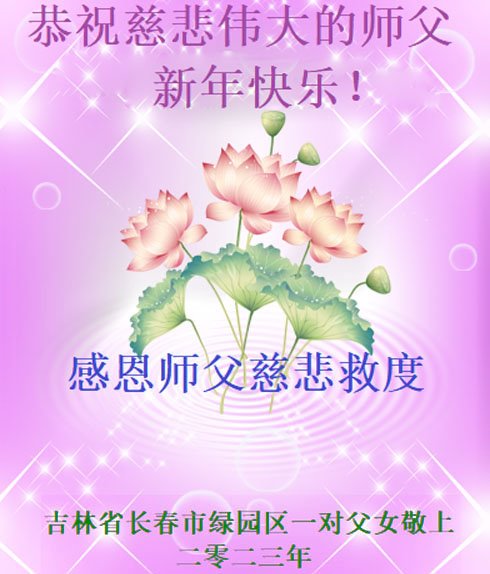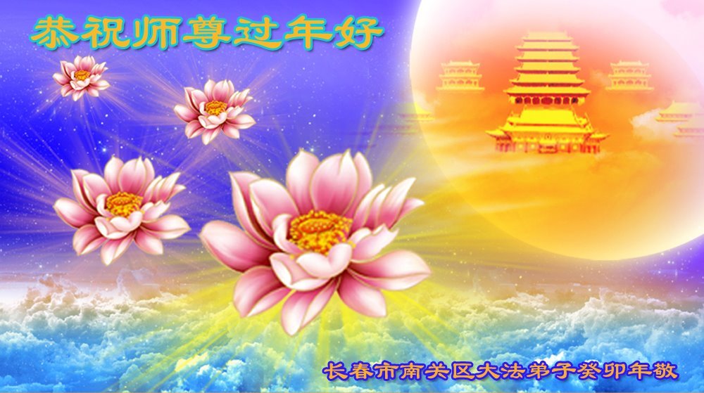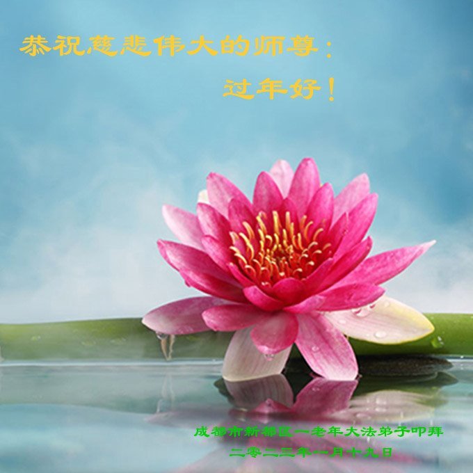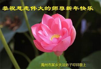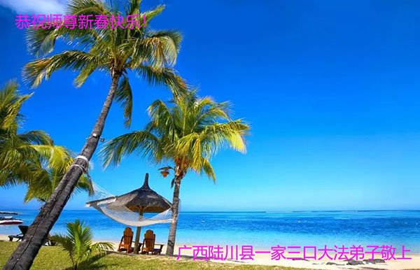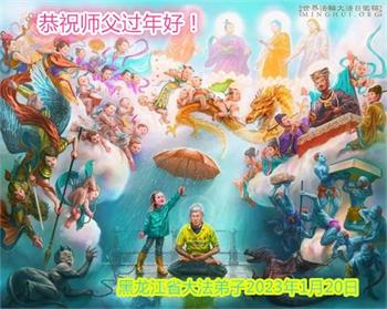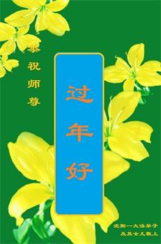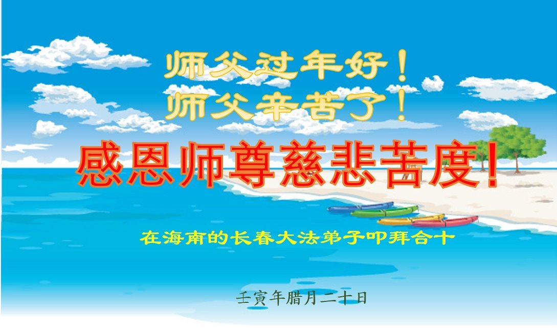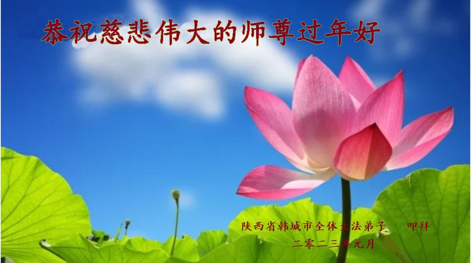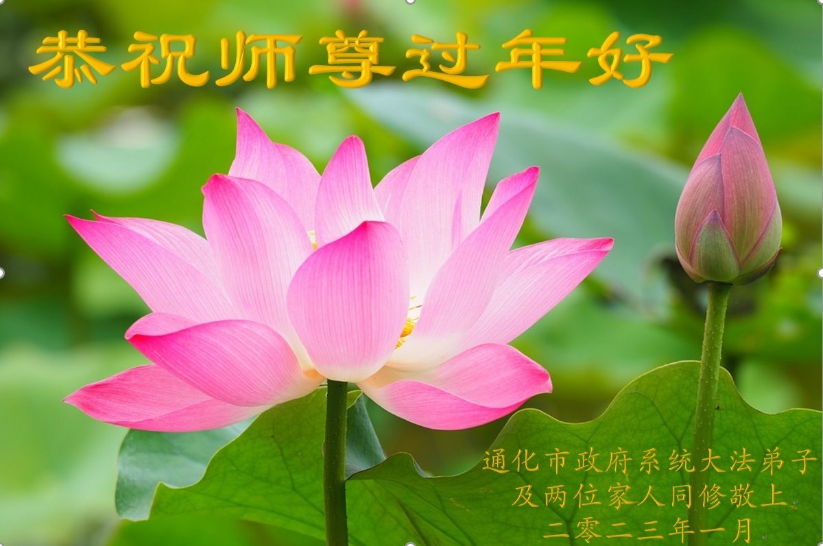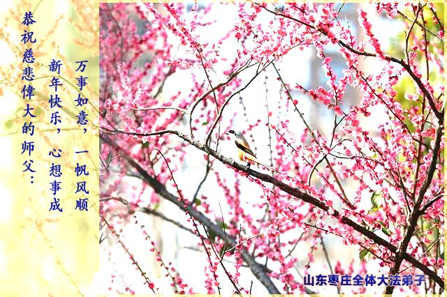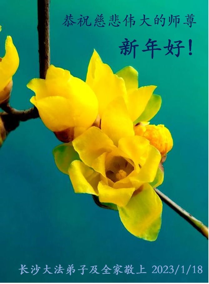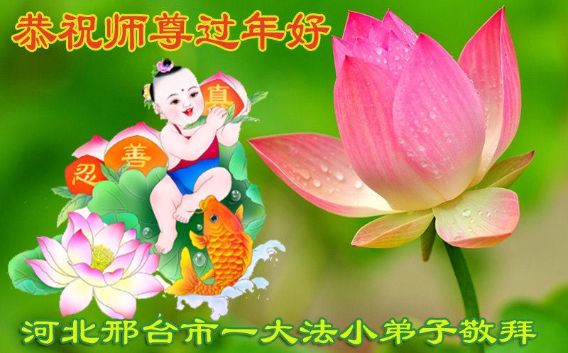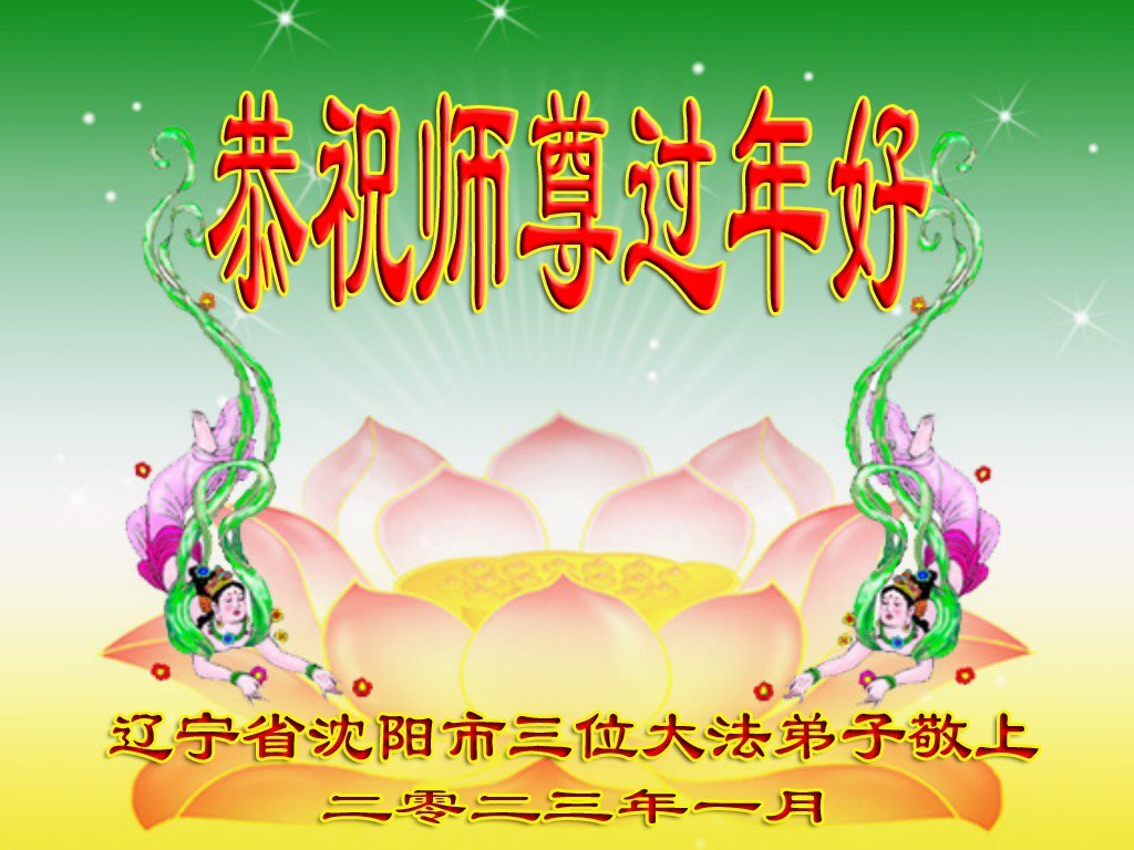 新年到来之际,我们夫妻俩老年大法弟子恭祝师父新年快乐!师父啊!弟子们想念您!助师救人是弟子们的使命不敢忘,待红魔除尽,解体恶党,法正人间迎师回中原!春回大陆师徒大团圆!