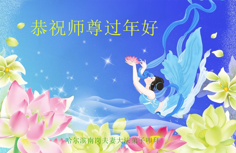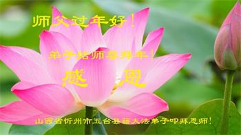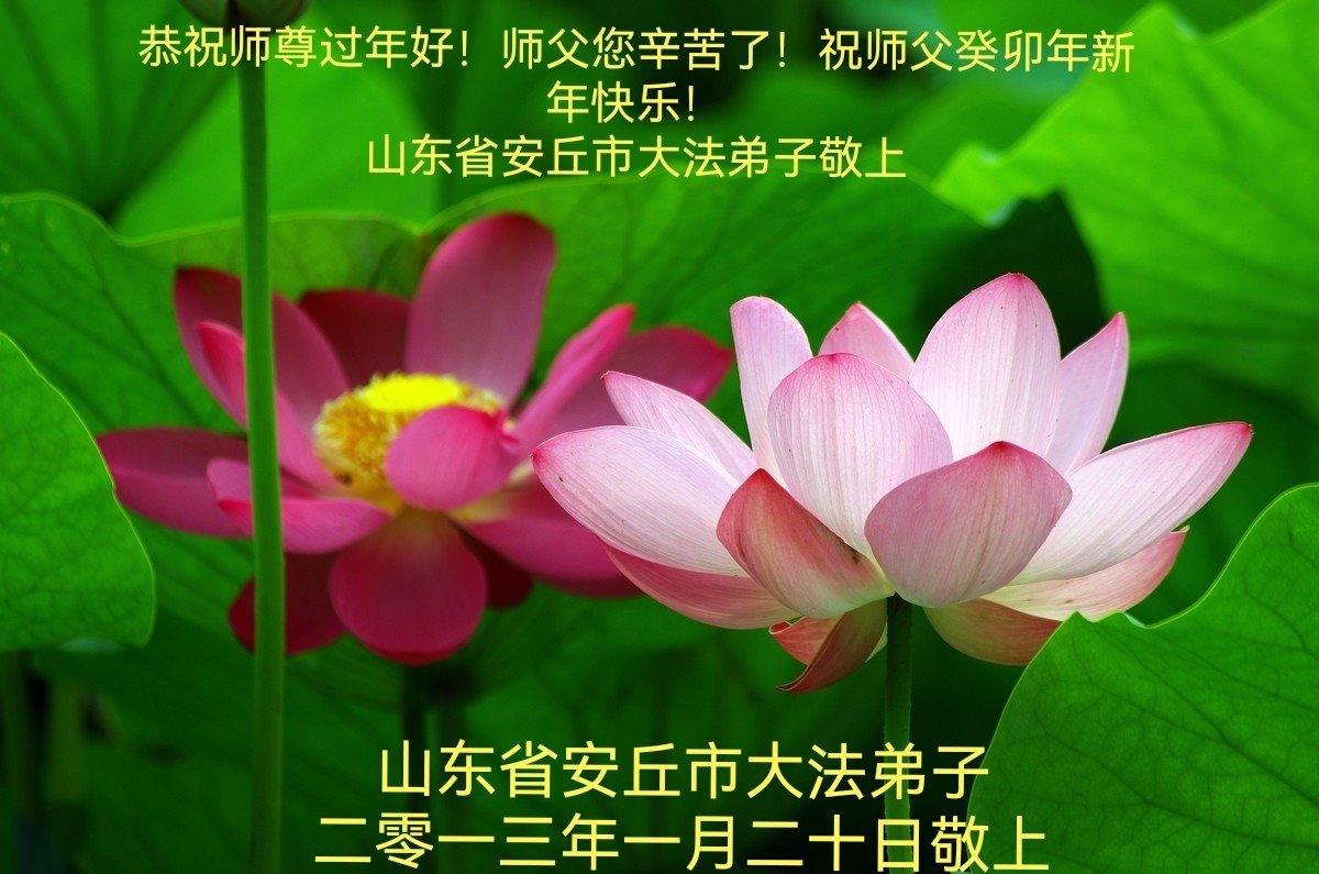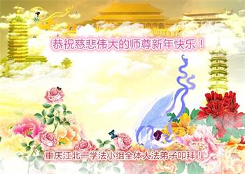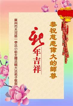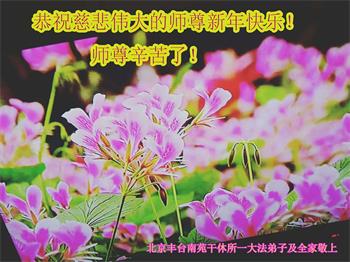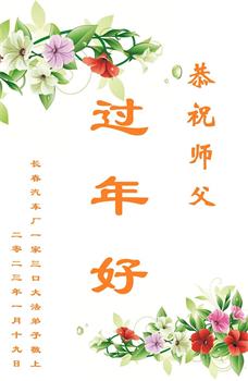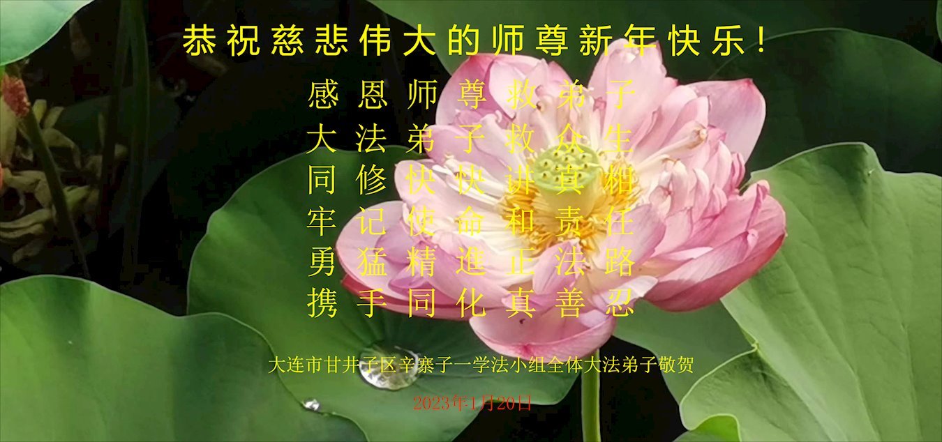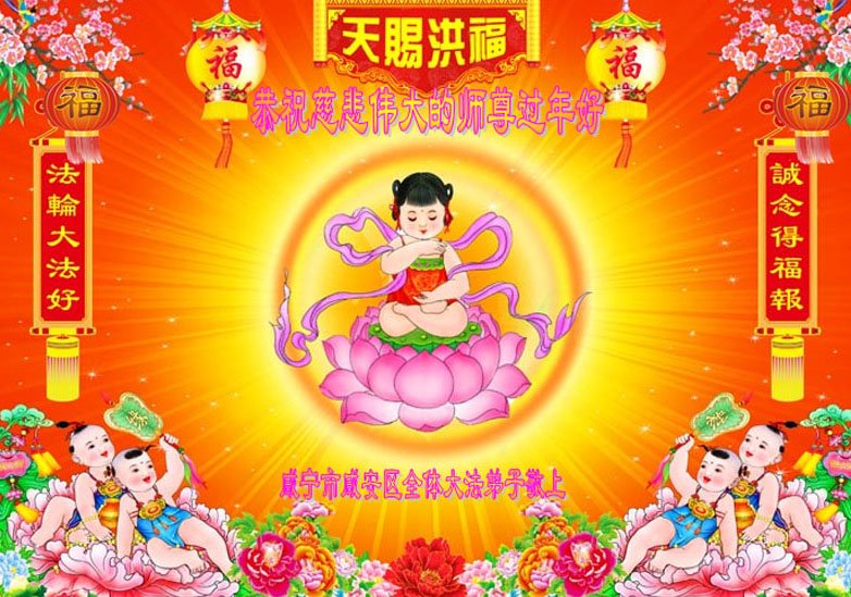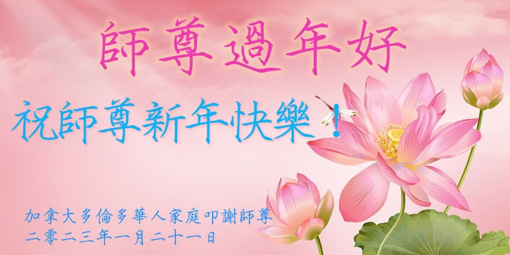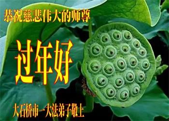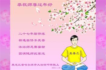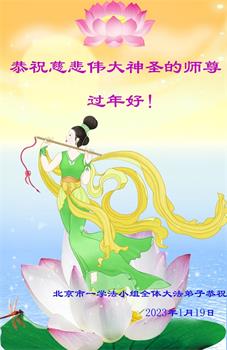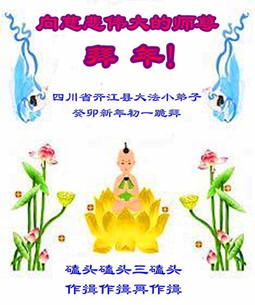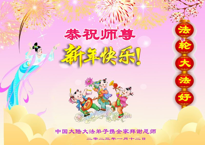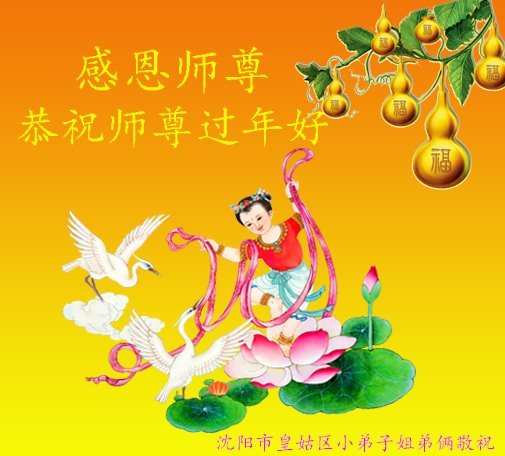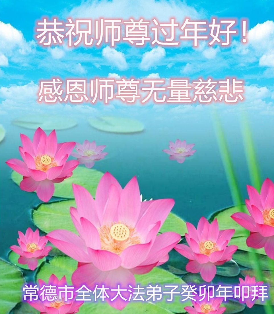 新年到来之际,我们夫妻俩老年大法弟子恭祝师父新年快乐!师父啊!弟子们想念您!助师救人是弟子们的使命不敢忘,待红魔除尽,解体恶党,法正人间迎师回中原!春回大陆师徒大团圆!
