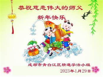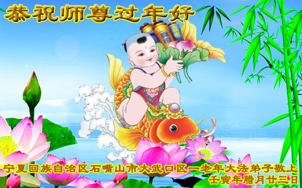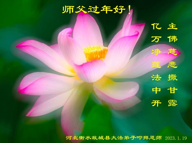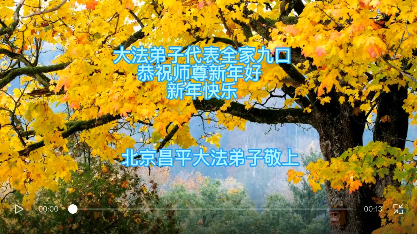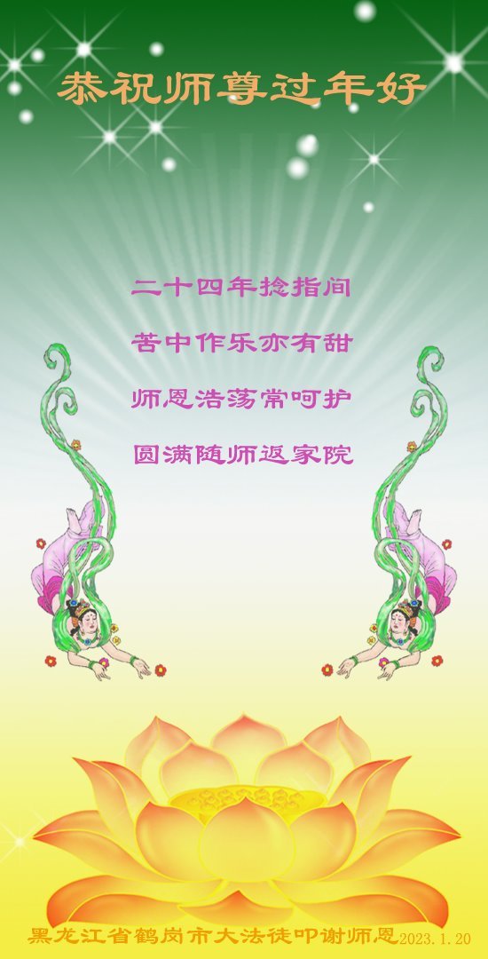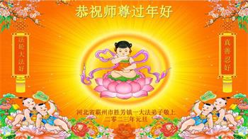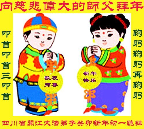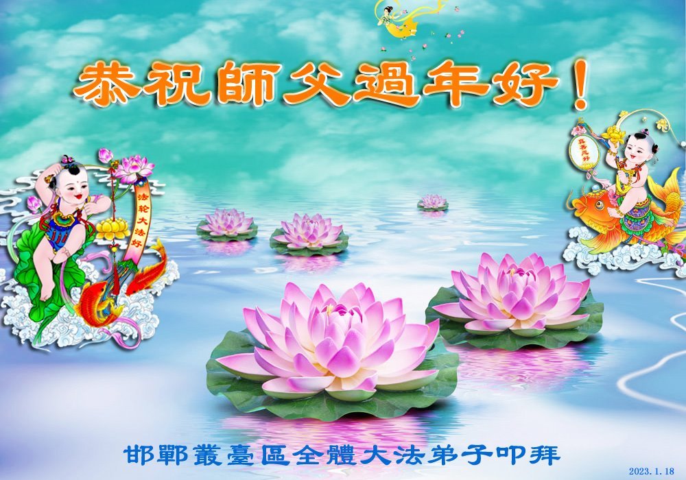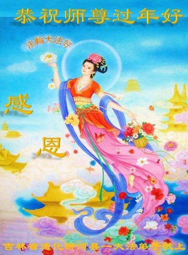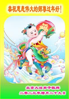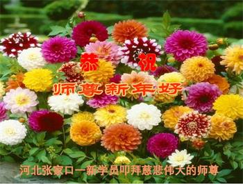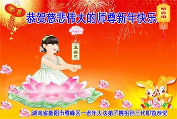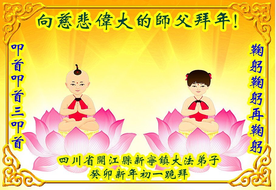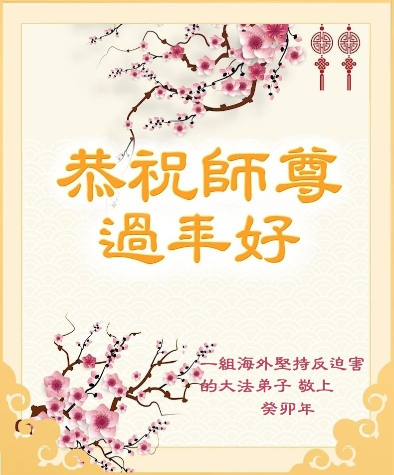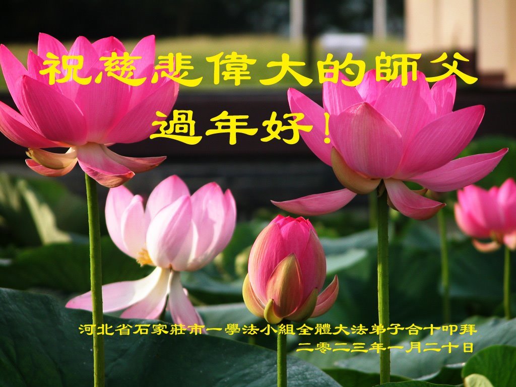 新年到来之际,我们夫妻俩老年大法弟子恭祝师父新年快乐!师父啊!弟子们想念您!助师救人是弟子们的使命不敢忘,待红魔除尽,解体恶党,法正人间迎师回中原!春回大陆师徒大团圆!