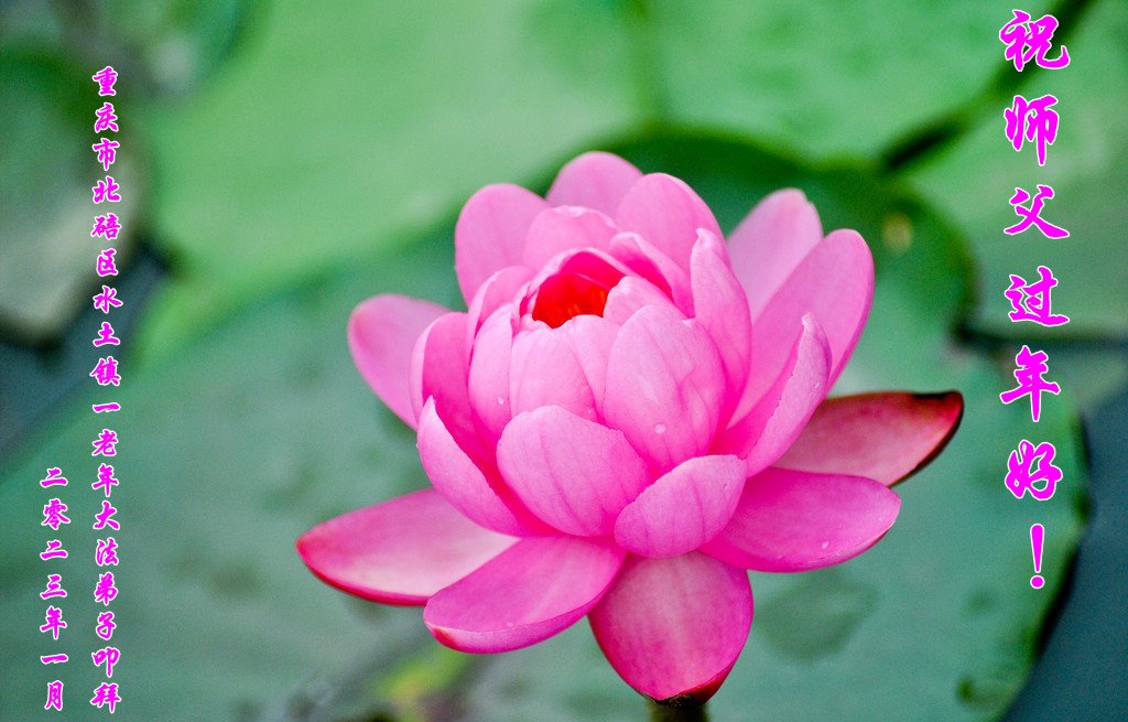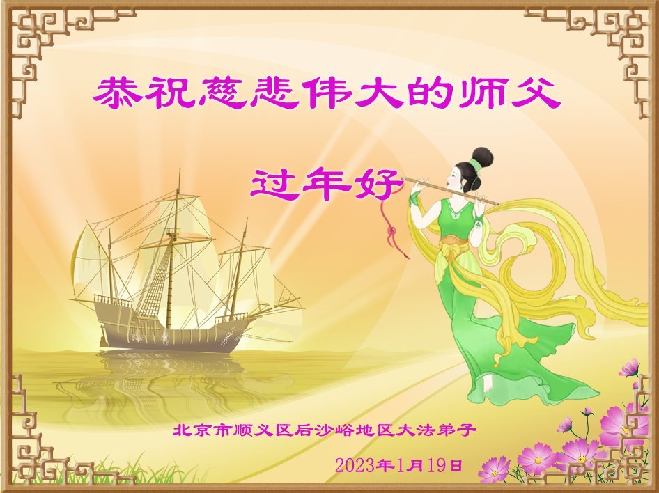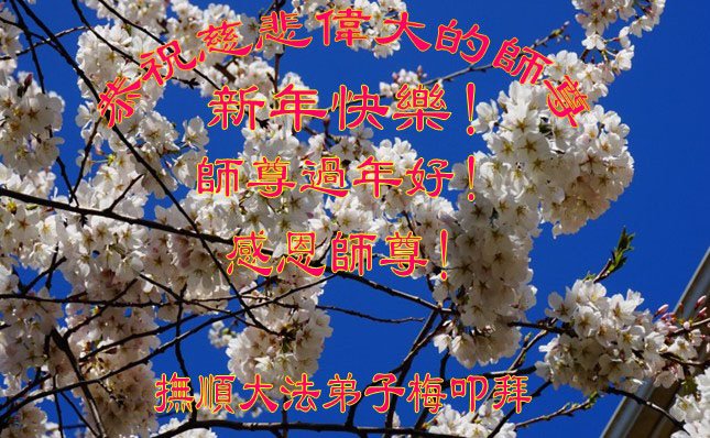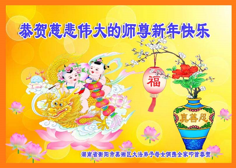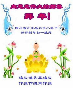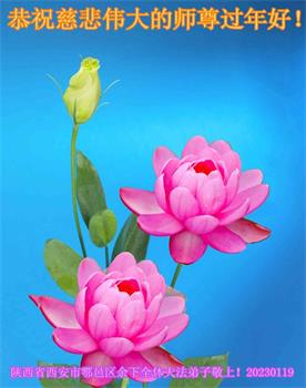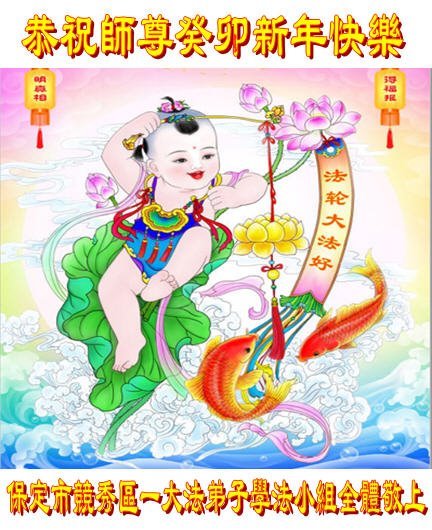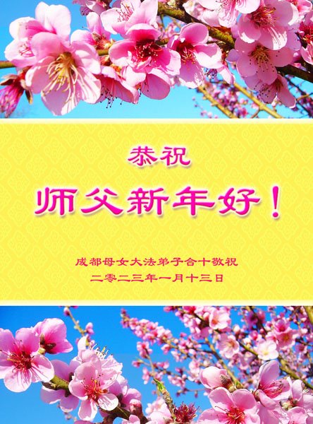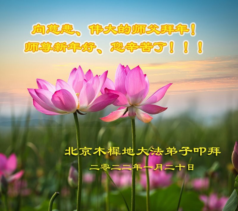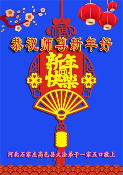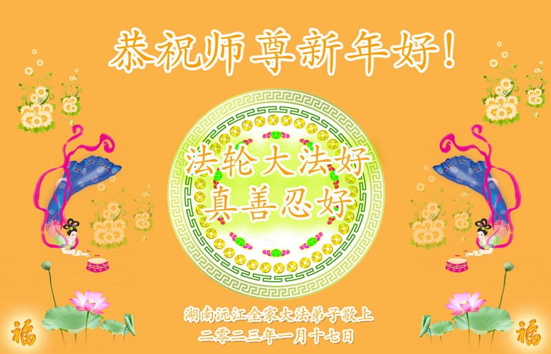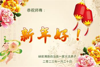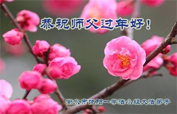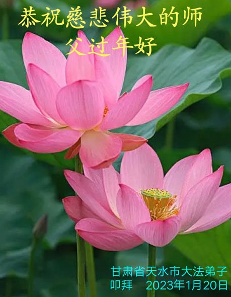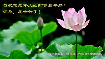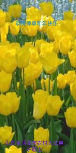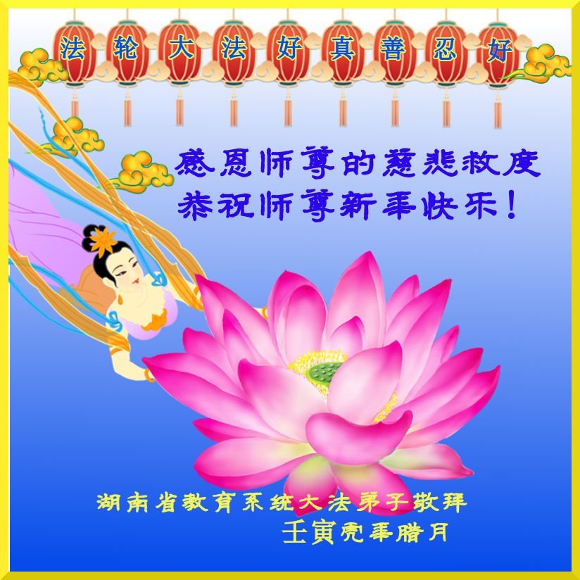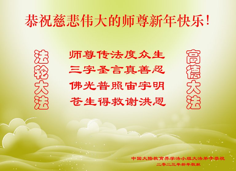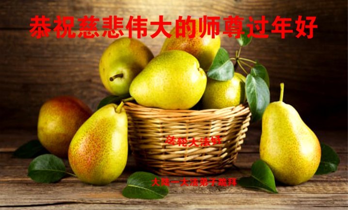 新年到来之际,我们夫妻俩老年大法弟子恭祝师父新年快乐!师父啊!弟子们想念您!助师救人是弟子们的使命不敢忘,待红魔除尽,解体恶党,法正人间迎师回中原!春回大陆师徒大团圆!