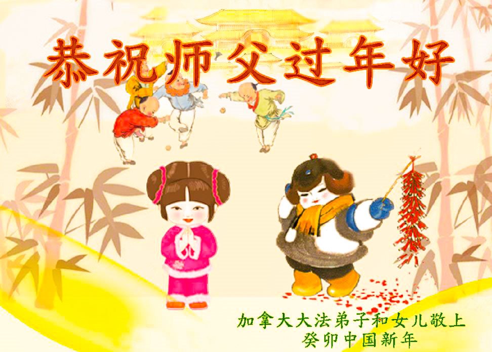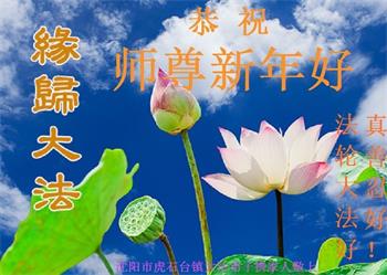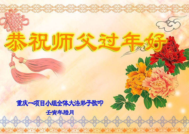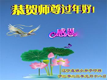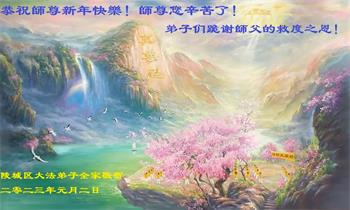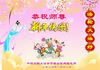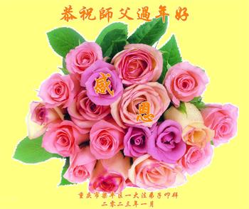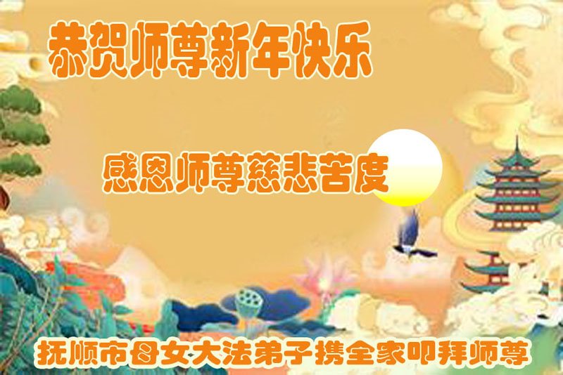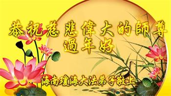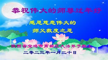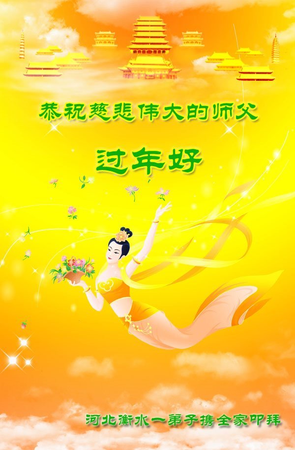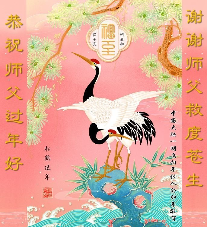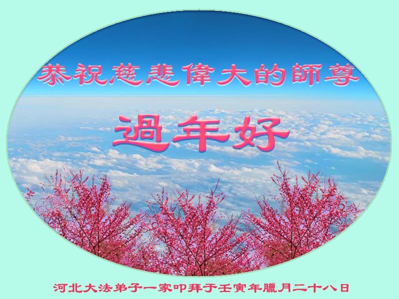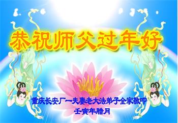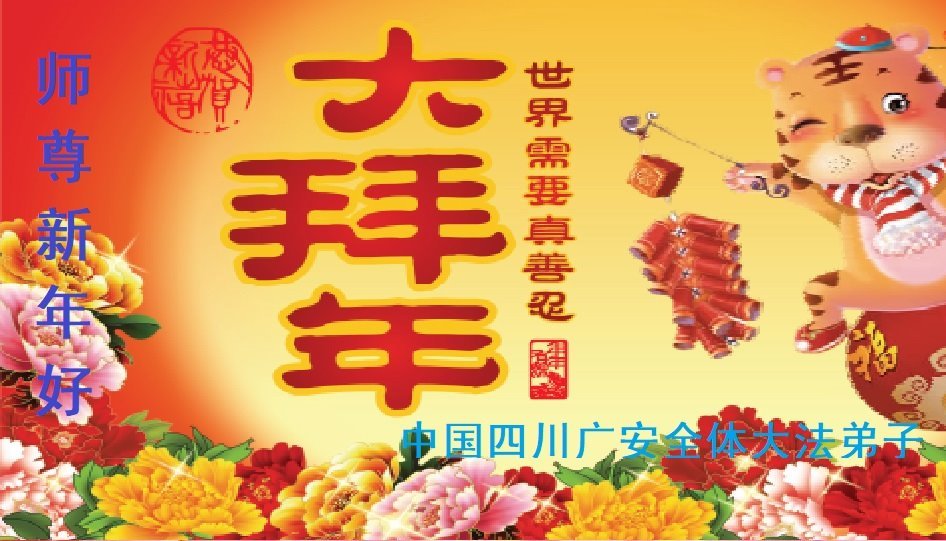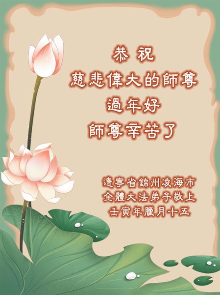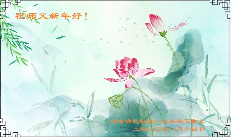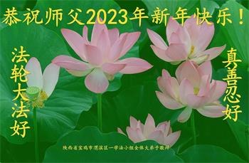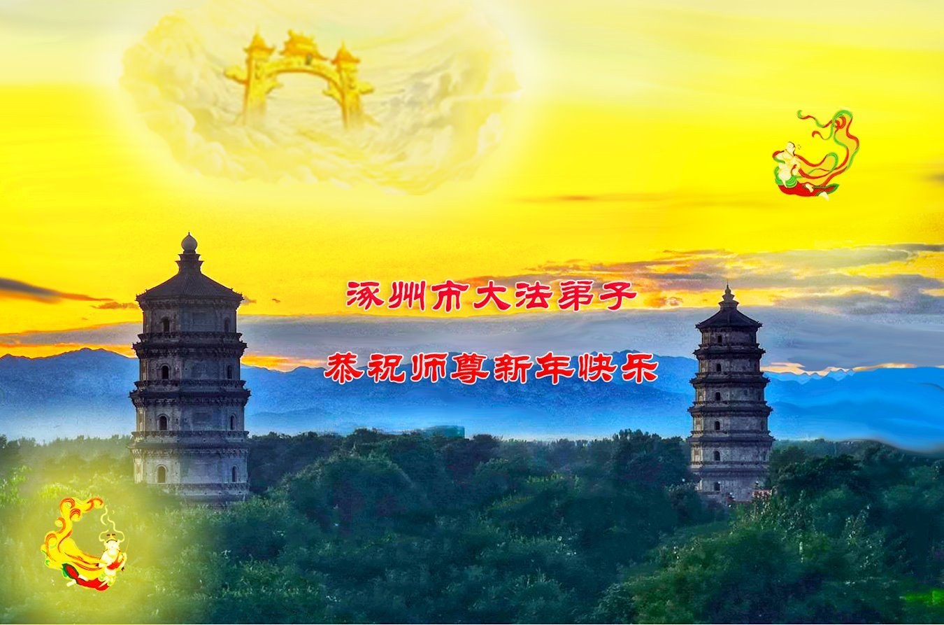 新年到来之际,我们夫妻俩老年大法弟子恭祝师父新年快乐!师父啊!弟子们想念您!助师救人是弟子们的使命不敢忘,待红魔除尽,解体恶党,法正人间迎师回中原!春回大陆师徒大团圆!