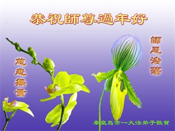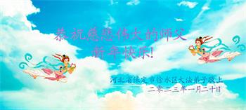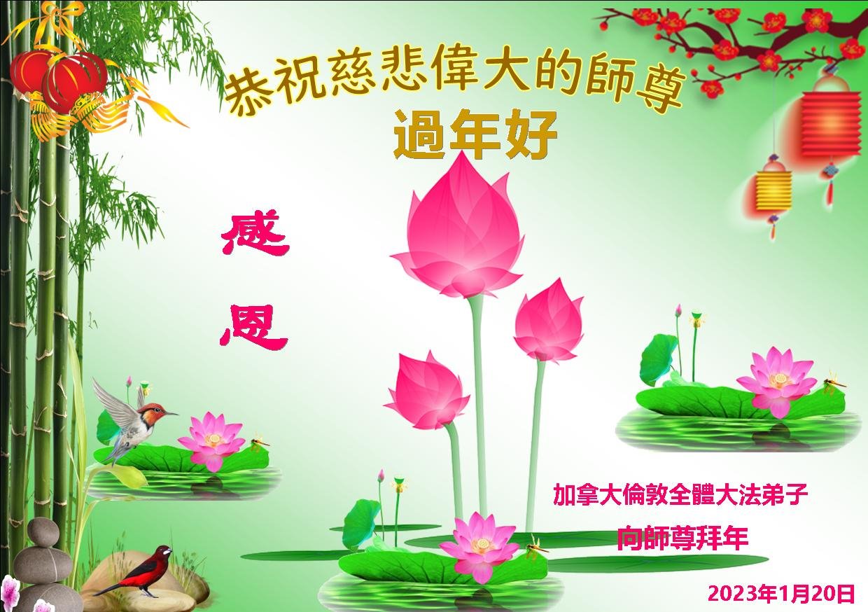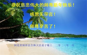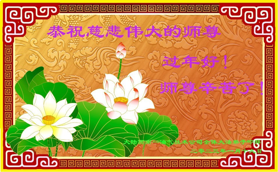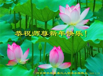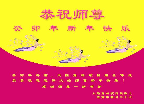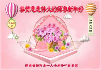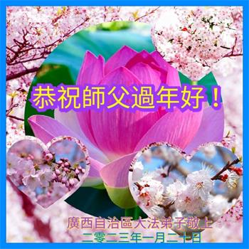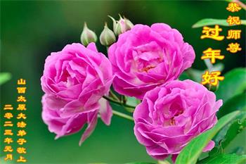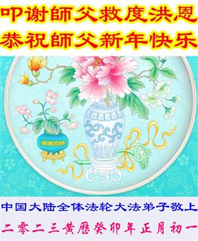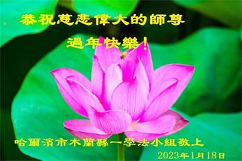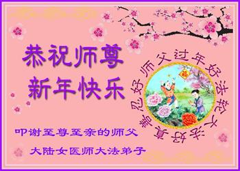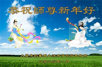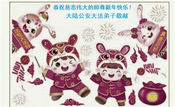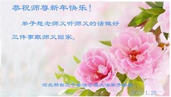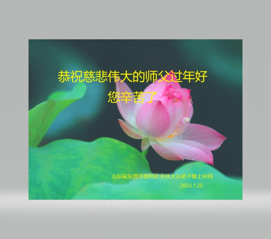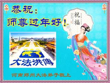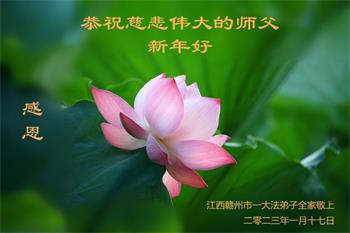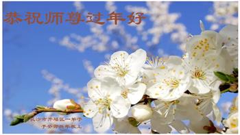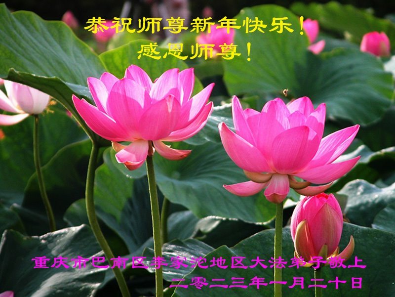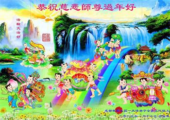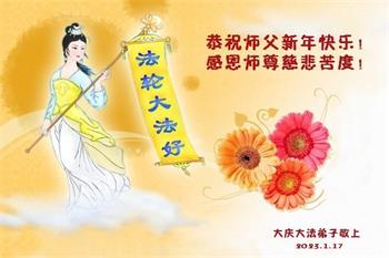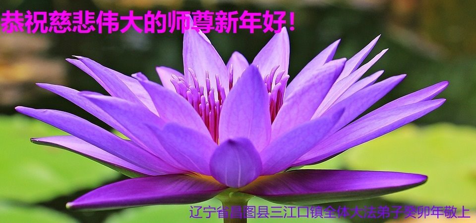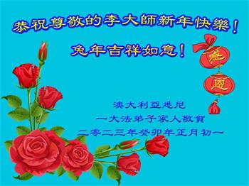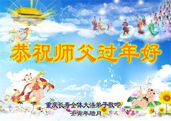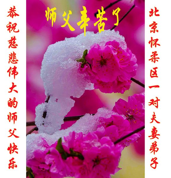 新年到来之际,我们夫妻俩老年大法弟子恭祝师父新年快乐!师父啊!弟子们想念您!助师救人是弟子们的使命不敢忘,待红魔除尽,解体恶党,法正人间迎师回中原!春回大陆师徒大团圆!