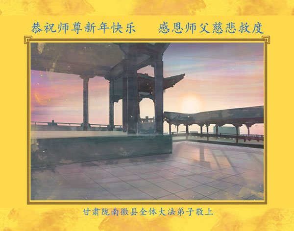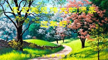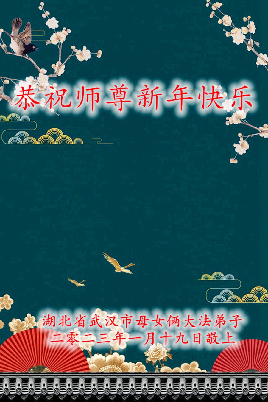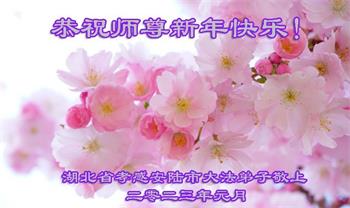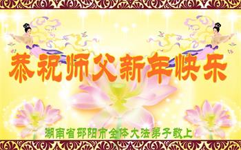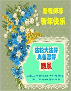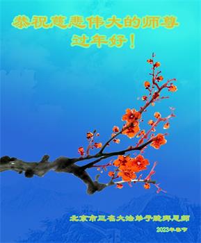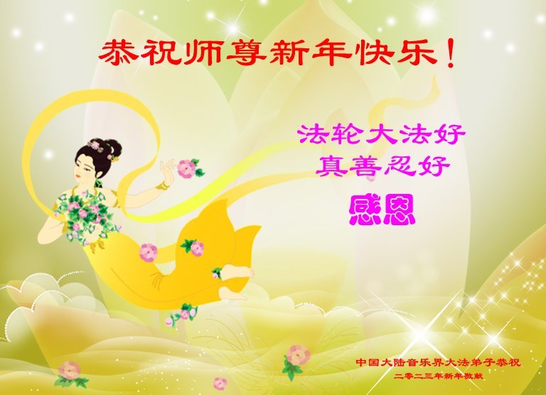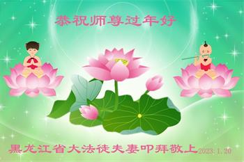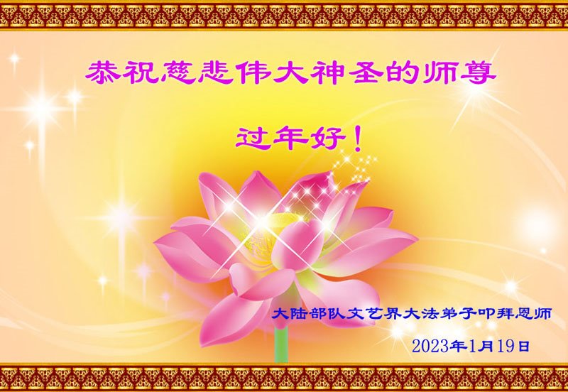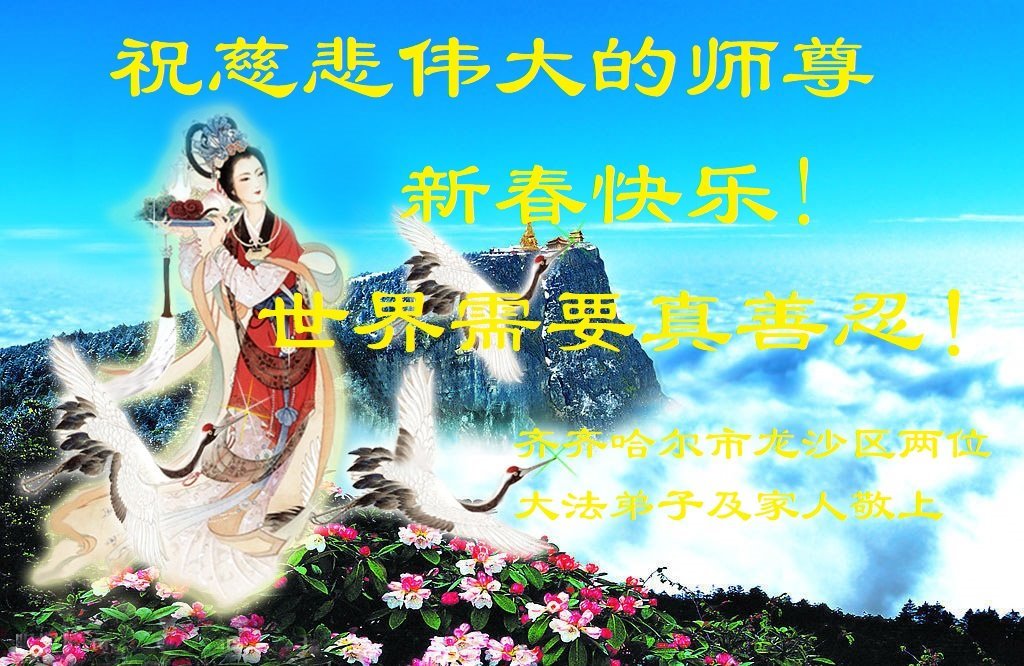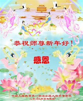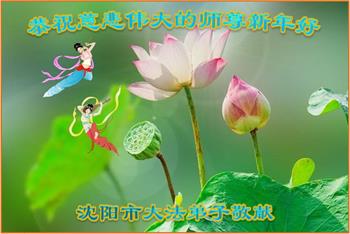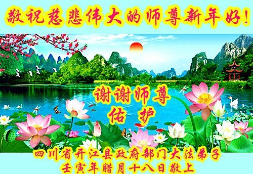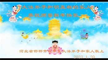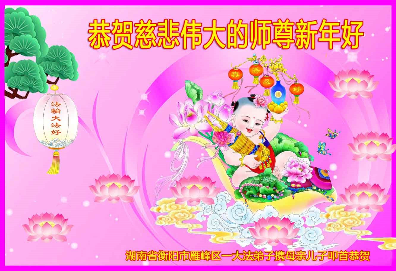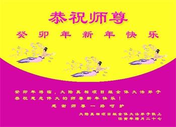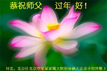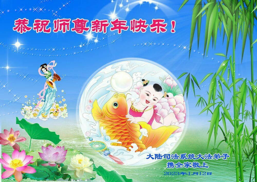 新年到来之际,我们夫妻俩老年大法弟子恭祝师父新年快乐!师父啊!弟子们想念您!助师救人是弟子们的使命不敢忘,待红魔除尽,解体恶党,法正人间迎师回中原!春回大陆师徒大团圆!