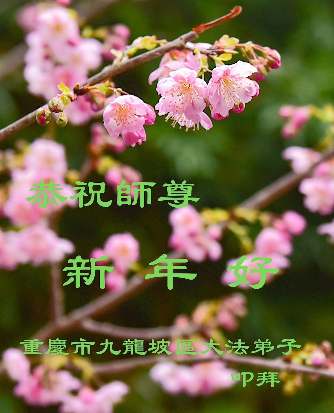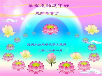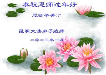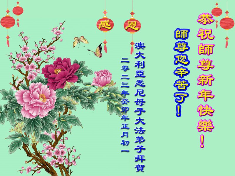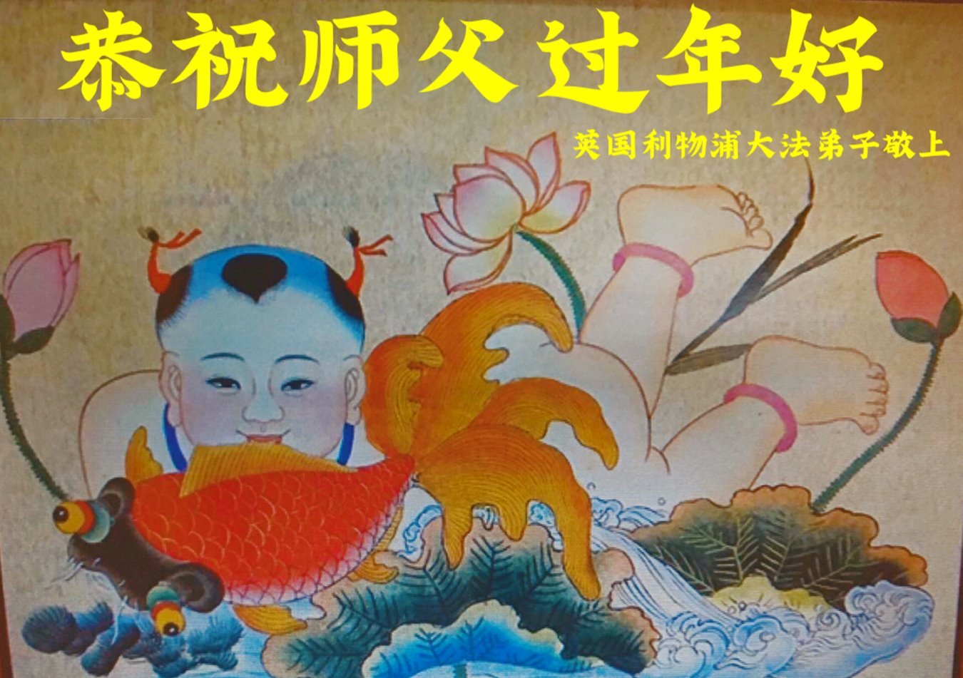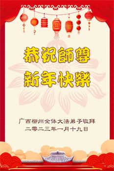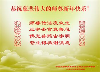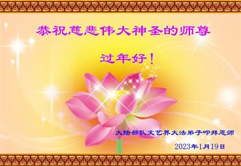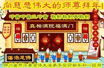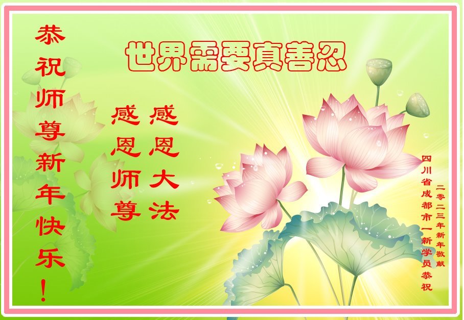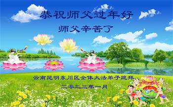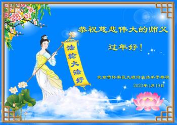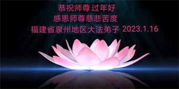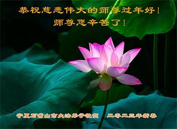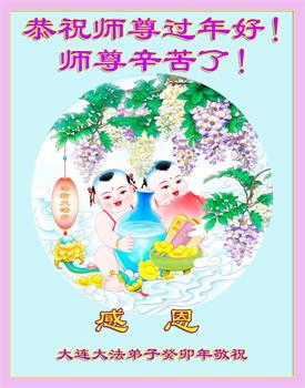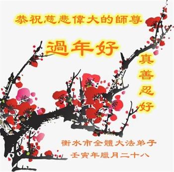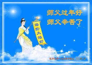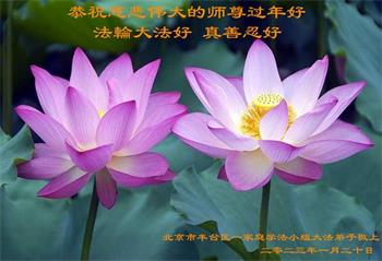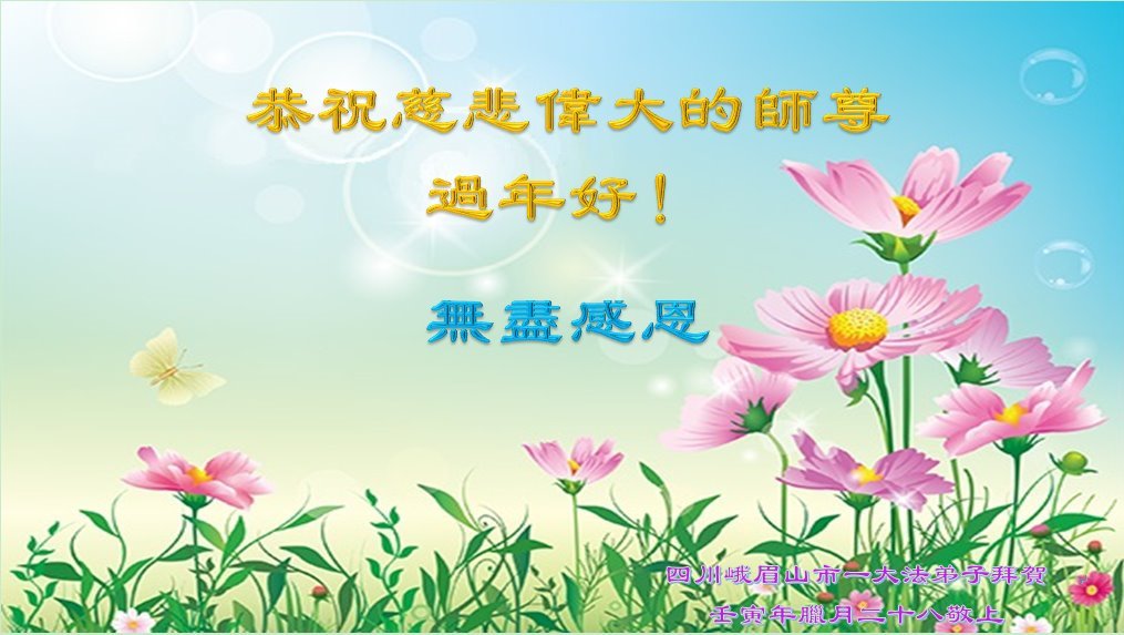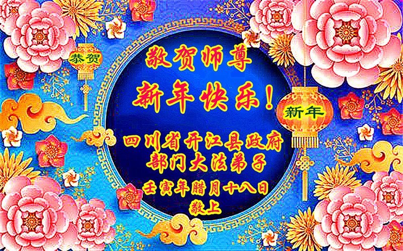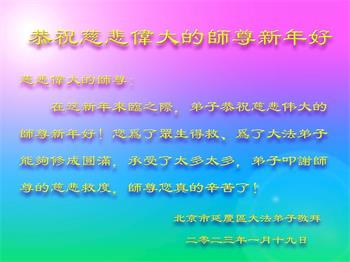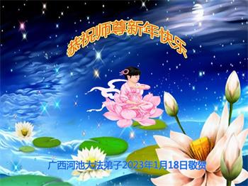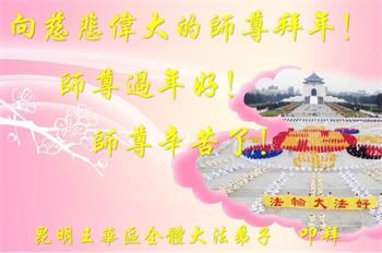 新年到来之际,我们夫妻俩老年大法弟子恭祝师父新年快乐!师父啊!弟子们想念您!助师救人是弟子们的使命不敢忘,待红魔除尽,解体恶党,法正人间迎师回中原!春回大陆师徒大团圆!