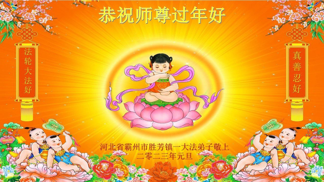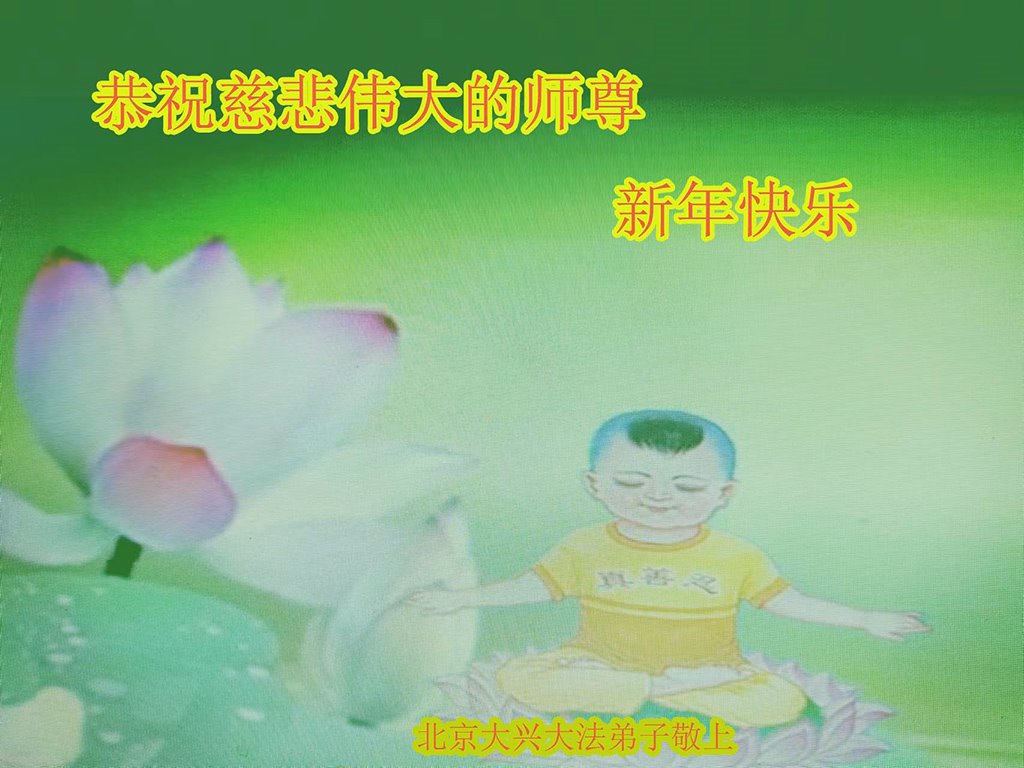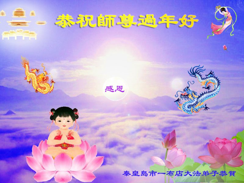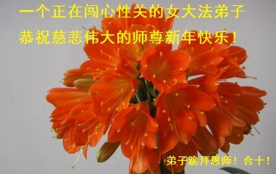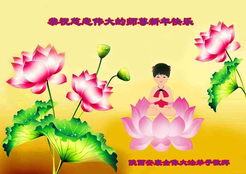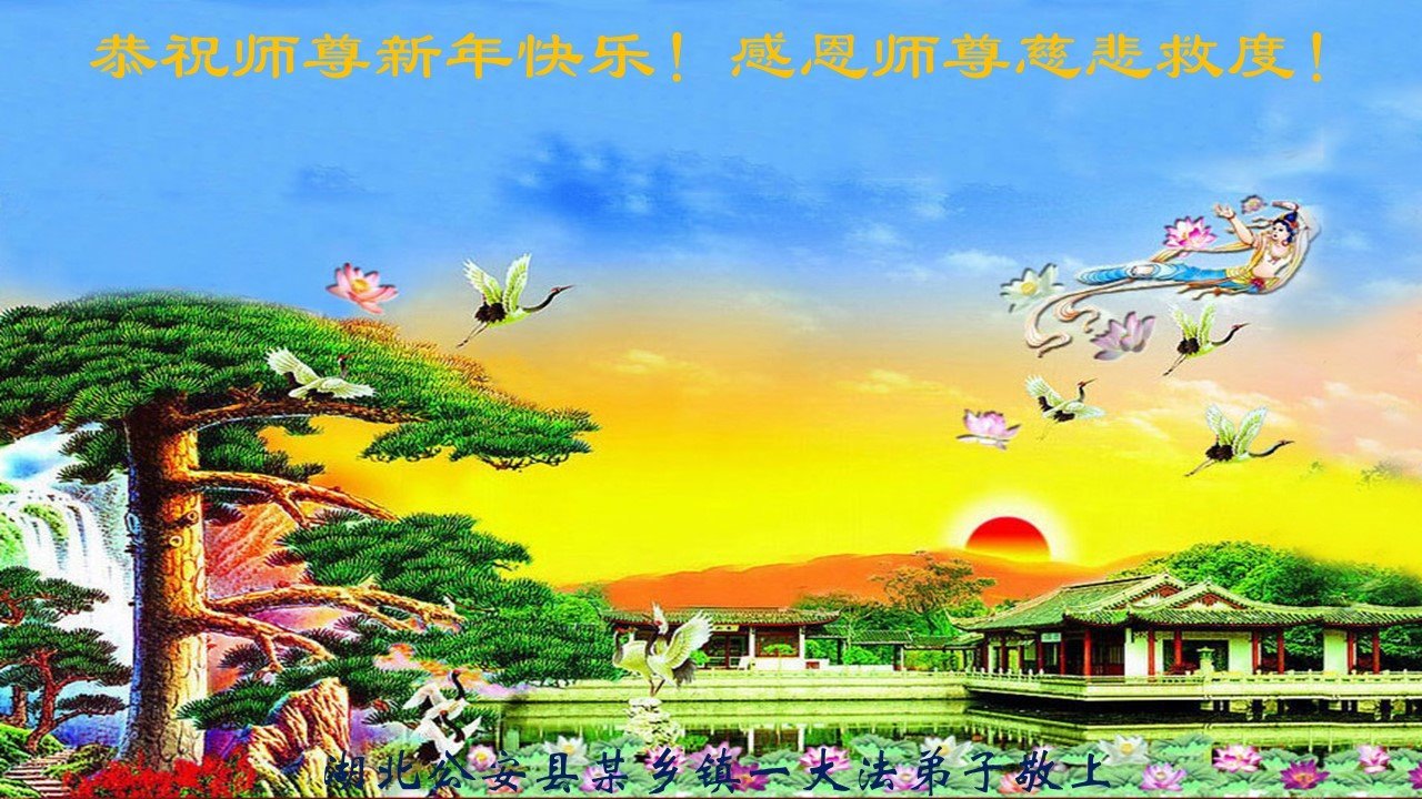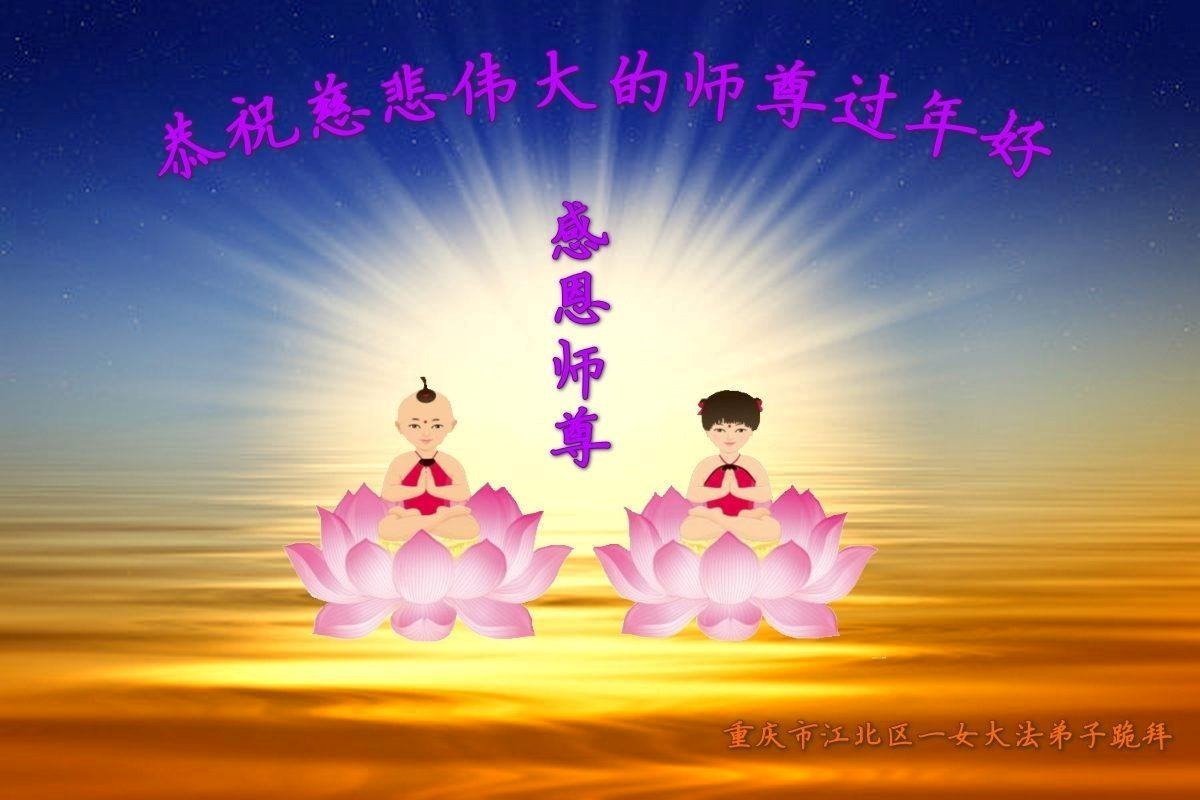 在这新年来临之际,弟子拜谢慈悲伟大的师父!师父新年好!师父新年快乐!弟子修炼十多年来受益良多,弟子没有珍贵的礼物敬献师尊,弟子只有感恩的心,谢谢师尊!弟子感恩师尊的慈悲苦度!慈悲的师尊您辛苦了!您的浩荡佛恩弟子无力报答,弟子要听您的话,走好您安排的路,做好三件事,要更加精進,圆满随师还。