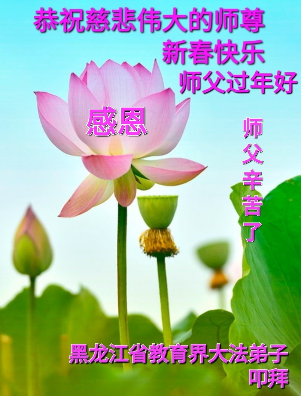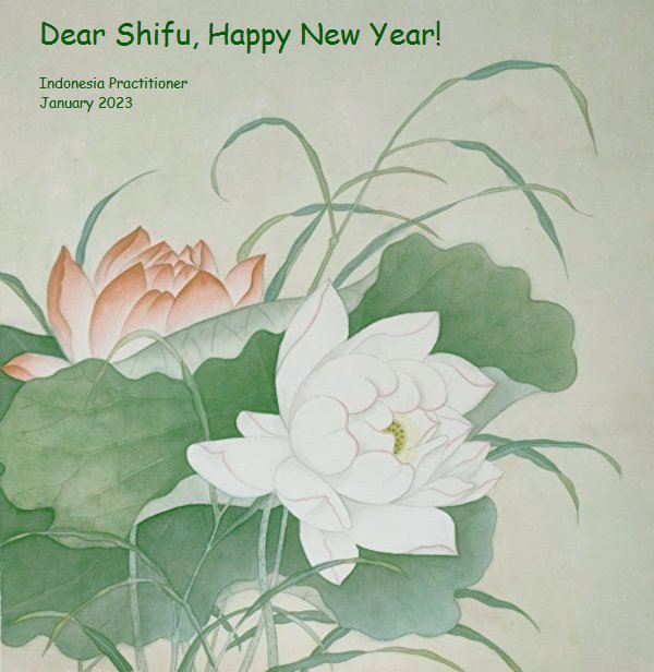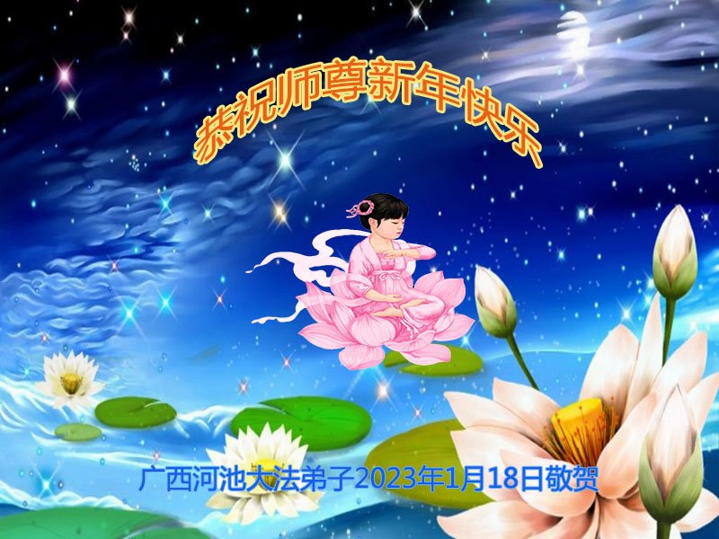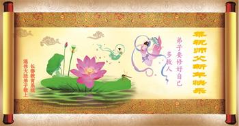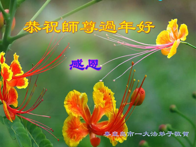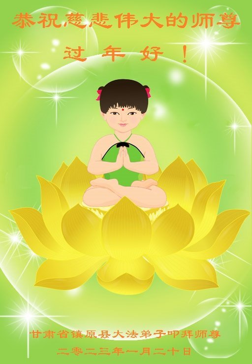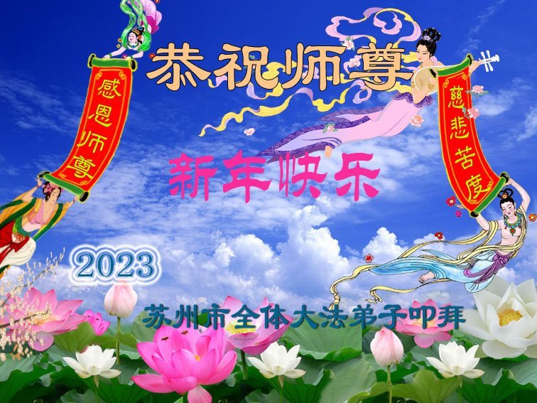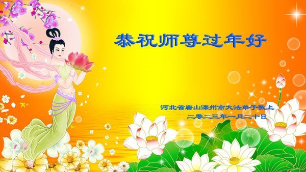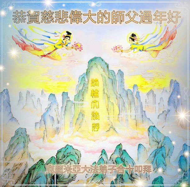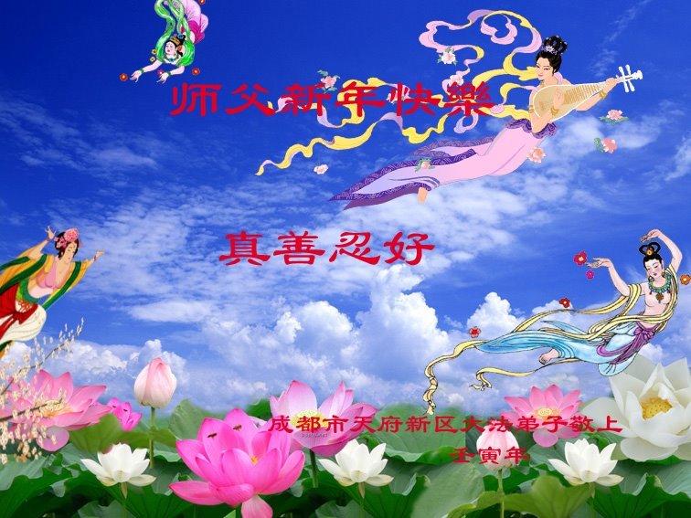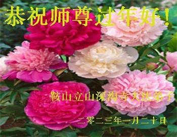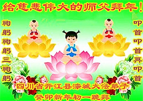 在这新年来临之际,弟子拜谢慈悲伟大的师父!师父新年好!师父新年快乐!弟子修炼十多年来受益良多,弟子没有珍贵的礼物敬献师尊,弟子只有感恩的心,谢谢师尊!弟子感恩师尊的慈悲苦度!慈悲的师尊您辛苦了!您的浩荡佛恩弟子无力报答,弟子要听您的话,走好您安排的路,做好三件事,要更加精進,圆满随师还。
