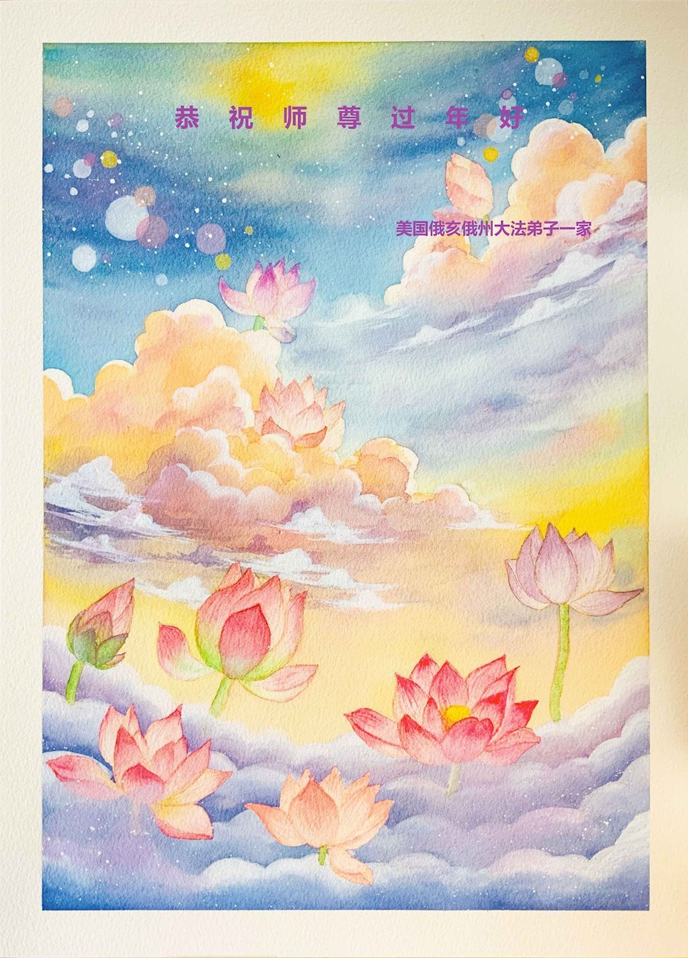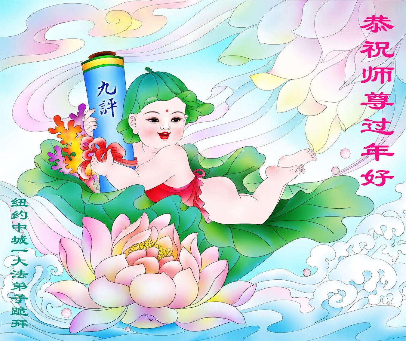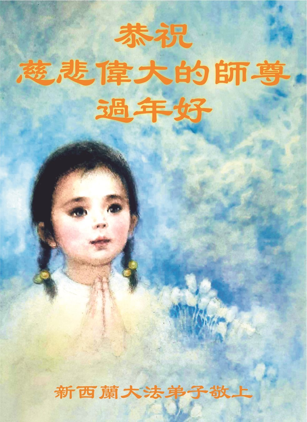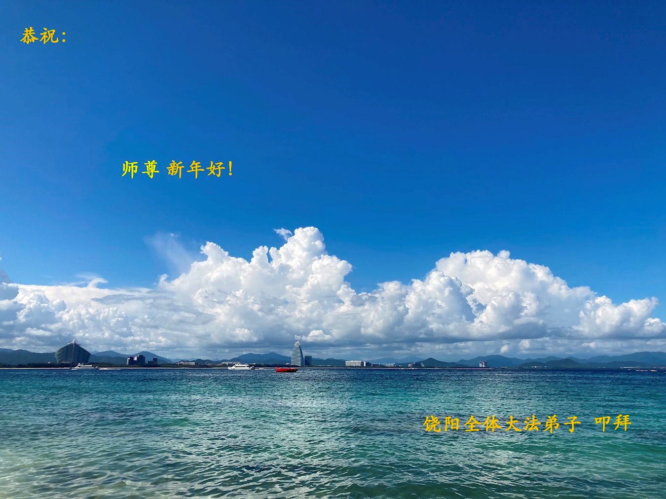 在这新年来临之际,弟子拜谢慈悲伟大的师父!师父新年好!师父新年快乐!弟子修炼十多年来受益良多,弟子没有珍贵的礼物敬献师尊,弟子只有感恩的心,谢谢师尊!弟子感恩师尊的慈悲苦度!慈悲的师尊您辛苦了!您的浩荡佛恩弟子无力报答,弟子要听您的话,走好您安排的路,做好三件事,要更加精進,圆满随师还。