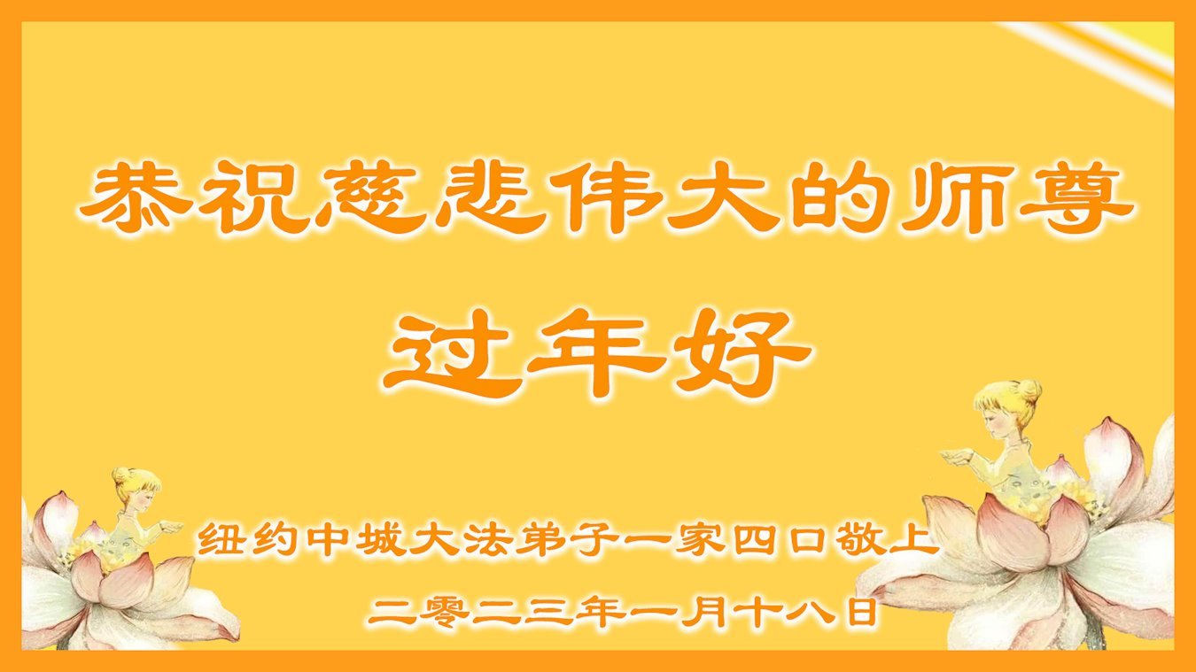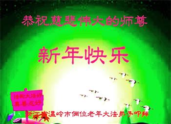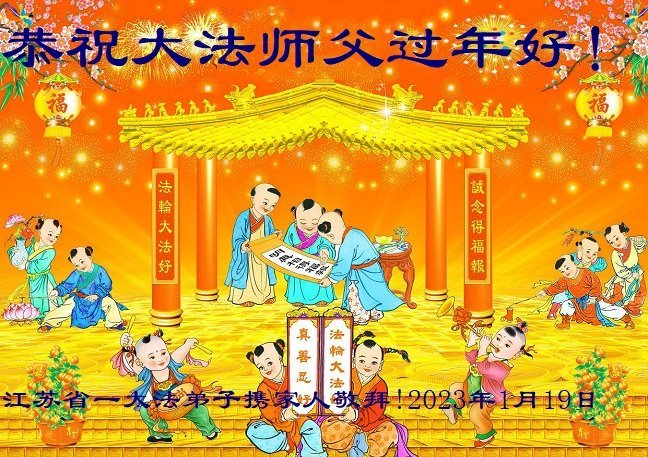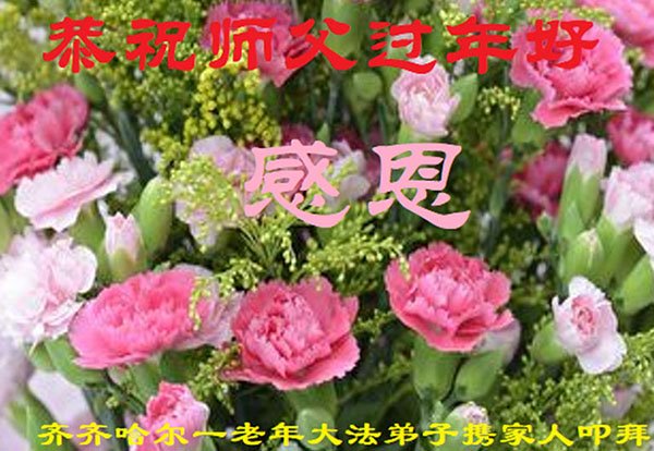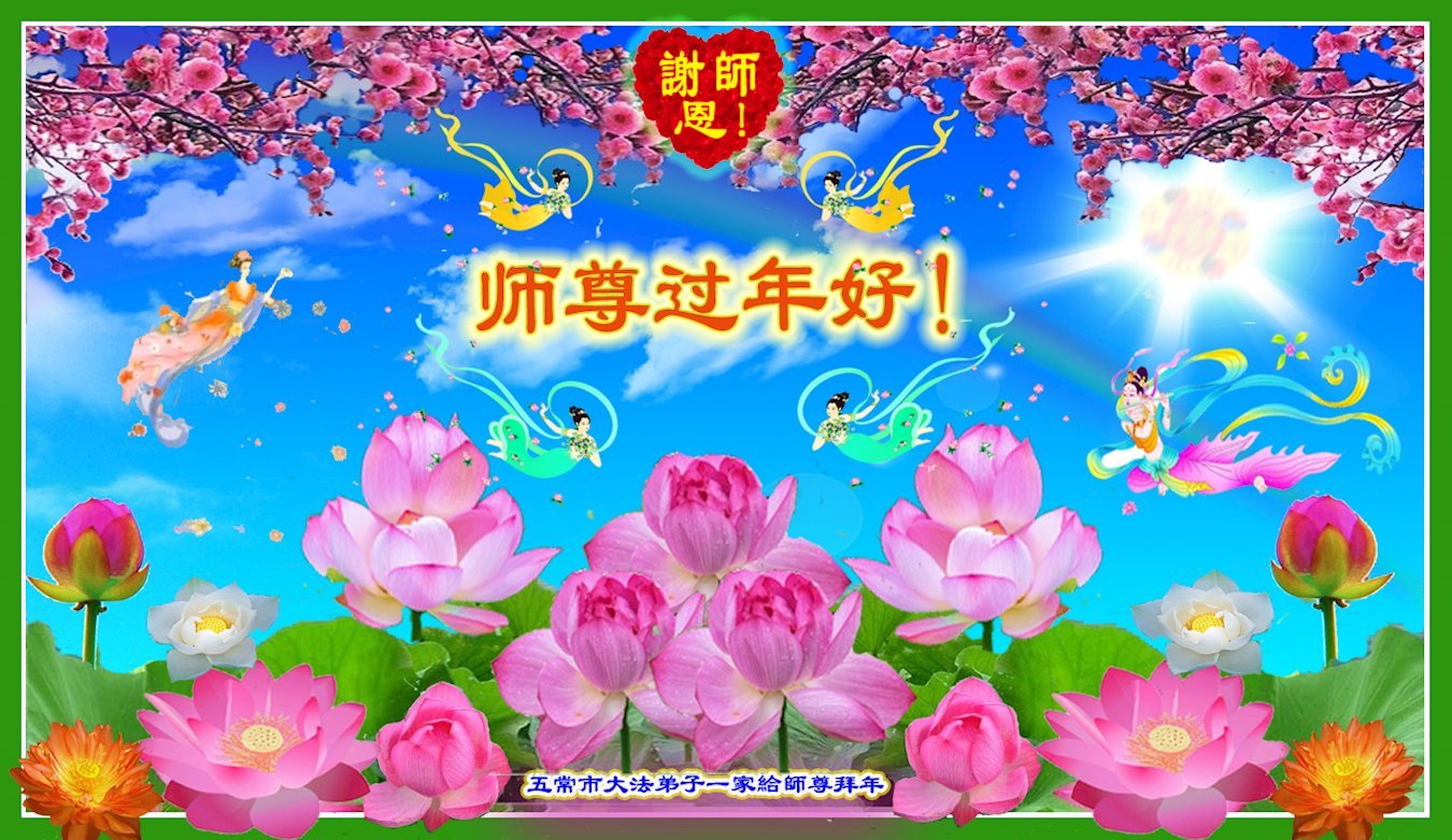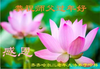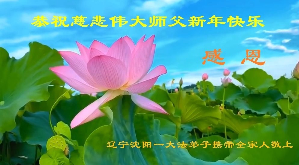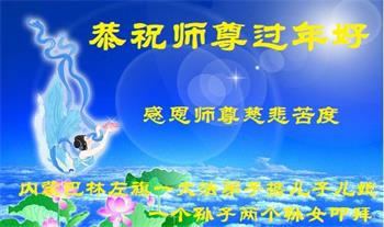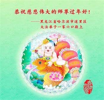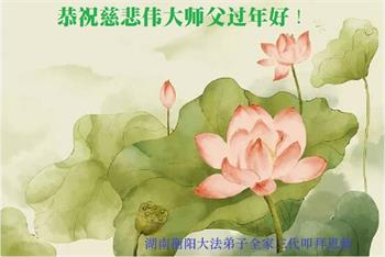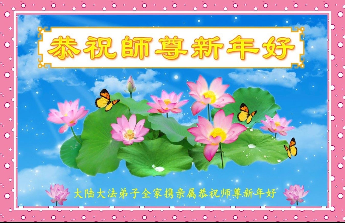 我是一九九六年得法修炼的老大法弟子,今年九十岁了,在二十多年跌跌撞撞的修炼中,虽很辛苦也很幸福,家人也见证了我一些遇难呈祥的神奇美好,都支持我修炼,四世同堂,母慈子孝,也使全家受益得福报。借此代表全家人恭祝师尊过年好!师尊辛苦了!谢谢师尊!
