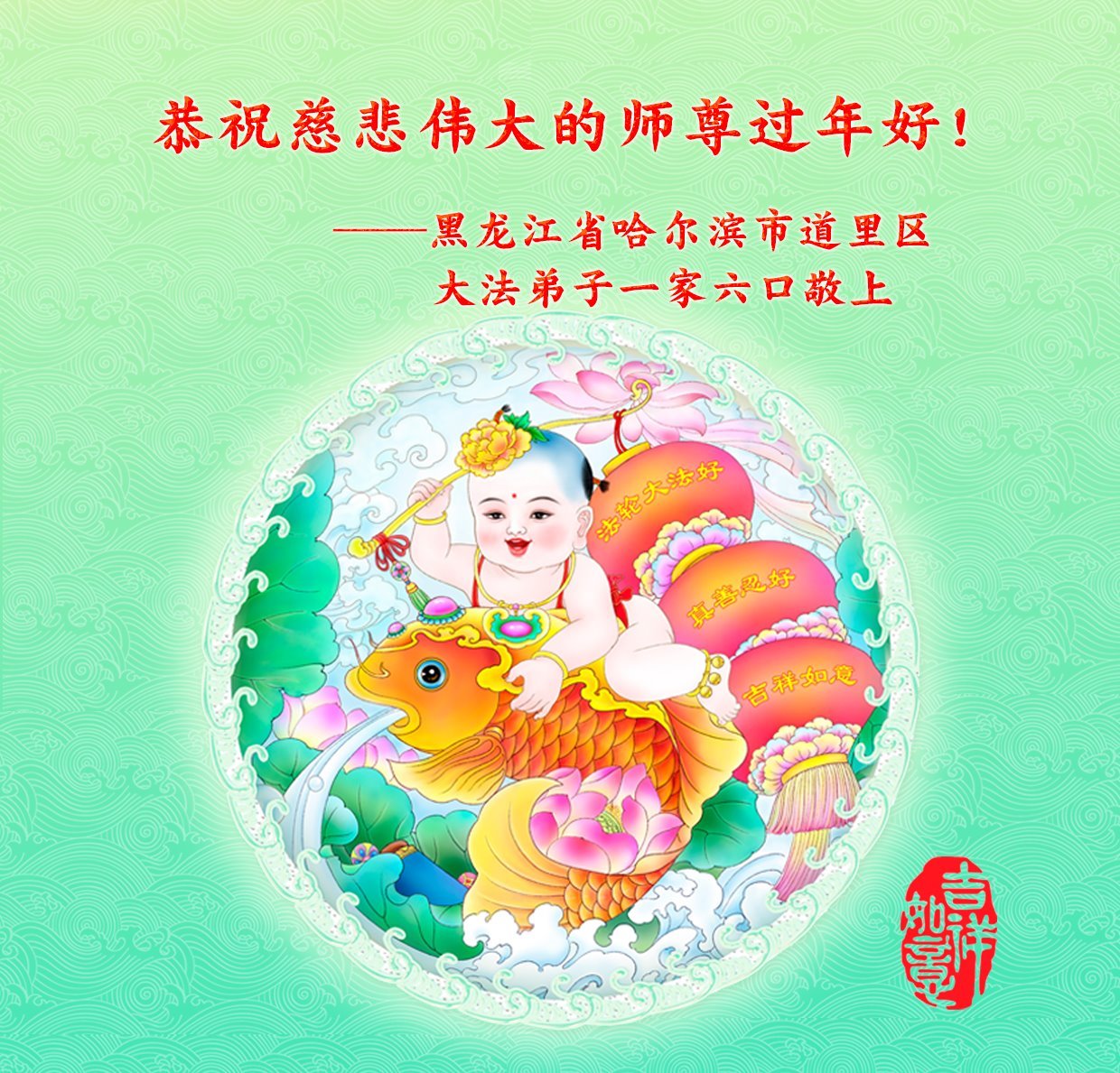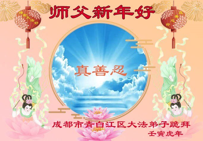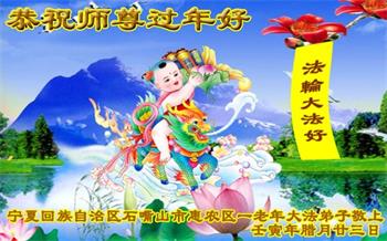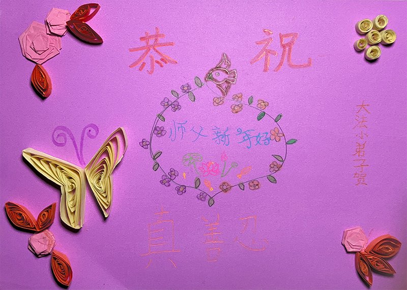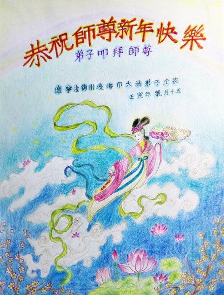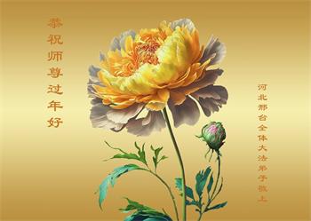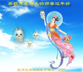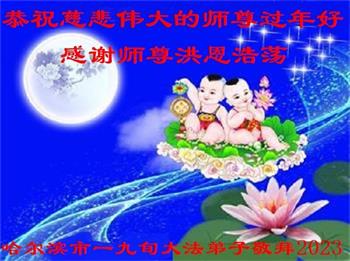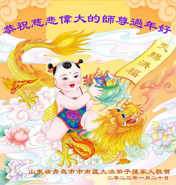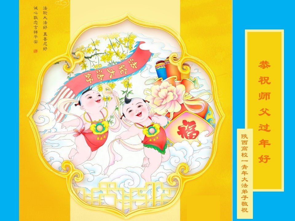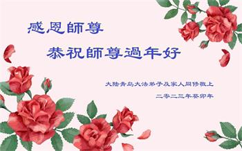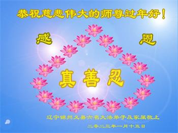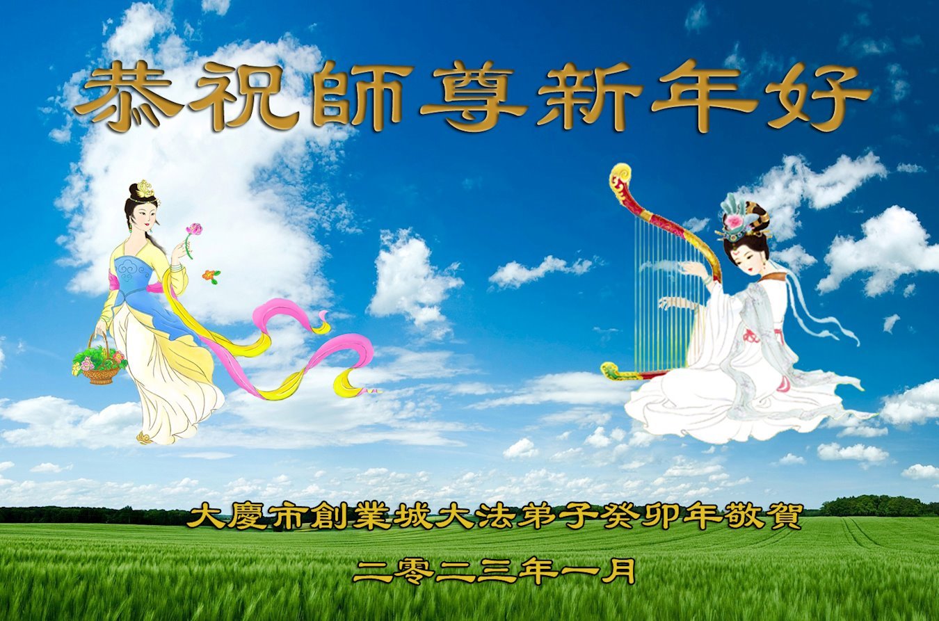 我是一九九六年得法修炼的老大法弟子,今年九十岁了,在二十多年跌跌撞撞的修炼中,虽很辛苦也很幸福,家人也见证了我一些遇难呈祥的神奇美好,都支持我修炼,四世同堂,母慈子孝,也使全家受益得福报。借此代表全家人恭祝师尊过年好!师尊辛苦了!谢谢师尊!