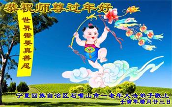 招远一老年学法组全体大法弟子给伟大的师尊拜年:师尊过年好!过年快乐!