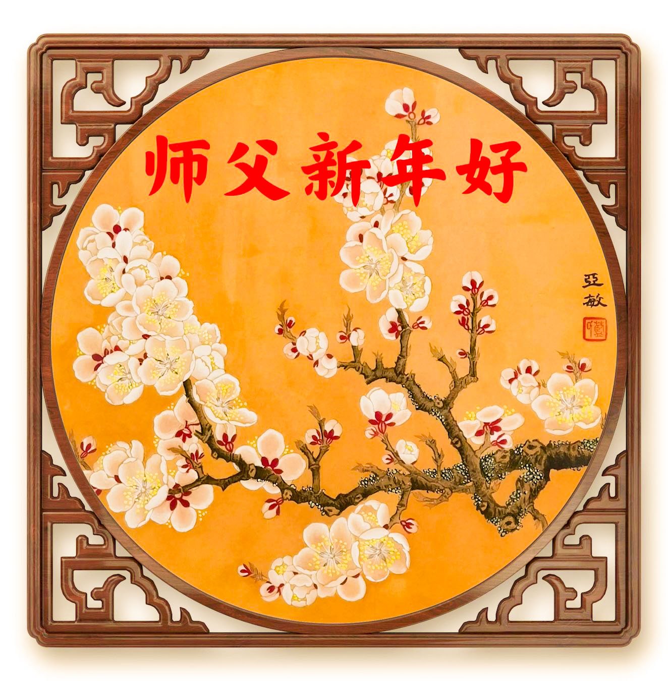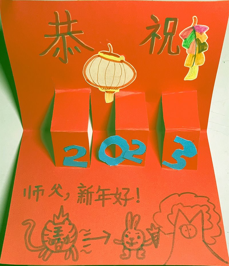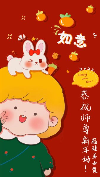 新年到来,我给师父拜年:祝师父新年快乐!事事如意。