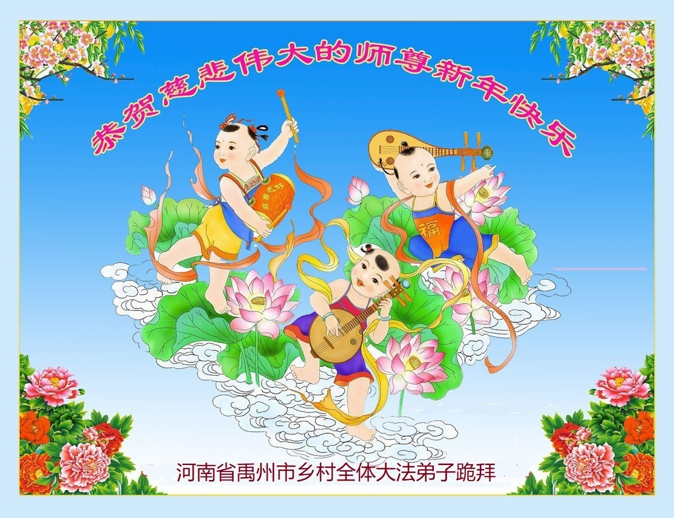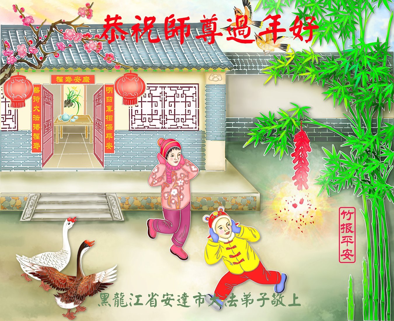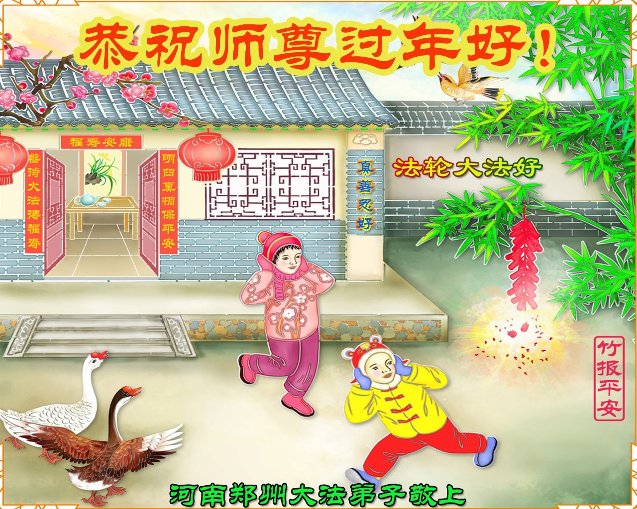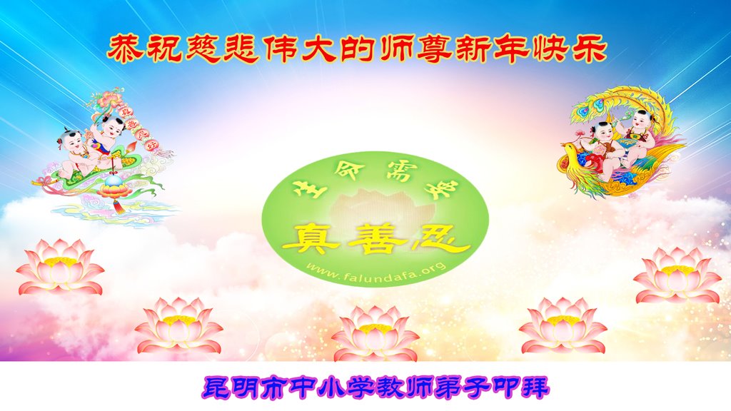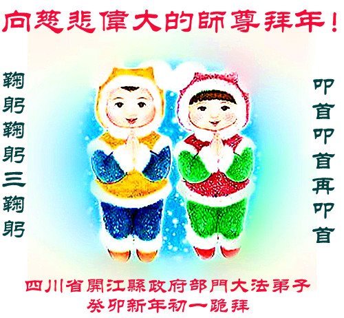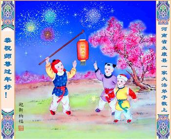 我们是明慧广播小弟子园地的小小播音员,代表大法小弟子们向慈悲伟大的师父拜年!恭祝师父新年快乐!法轮大法好,真善忍好!