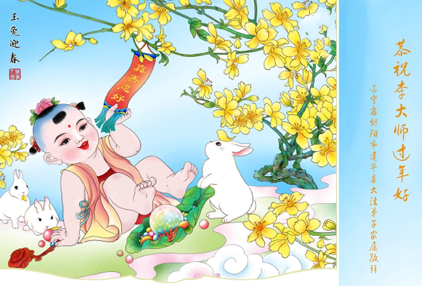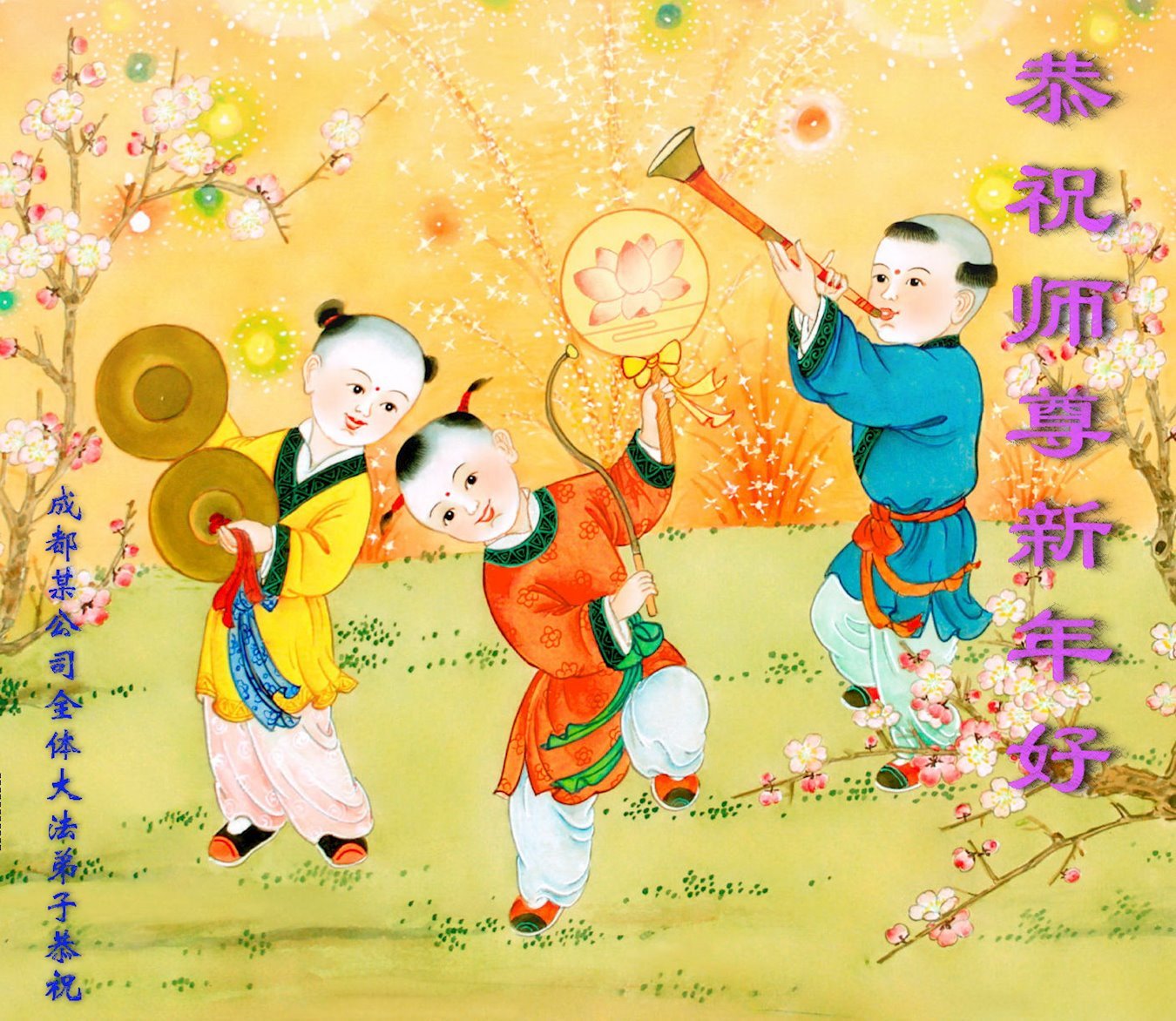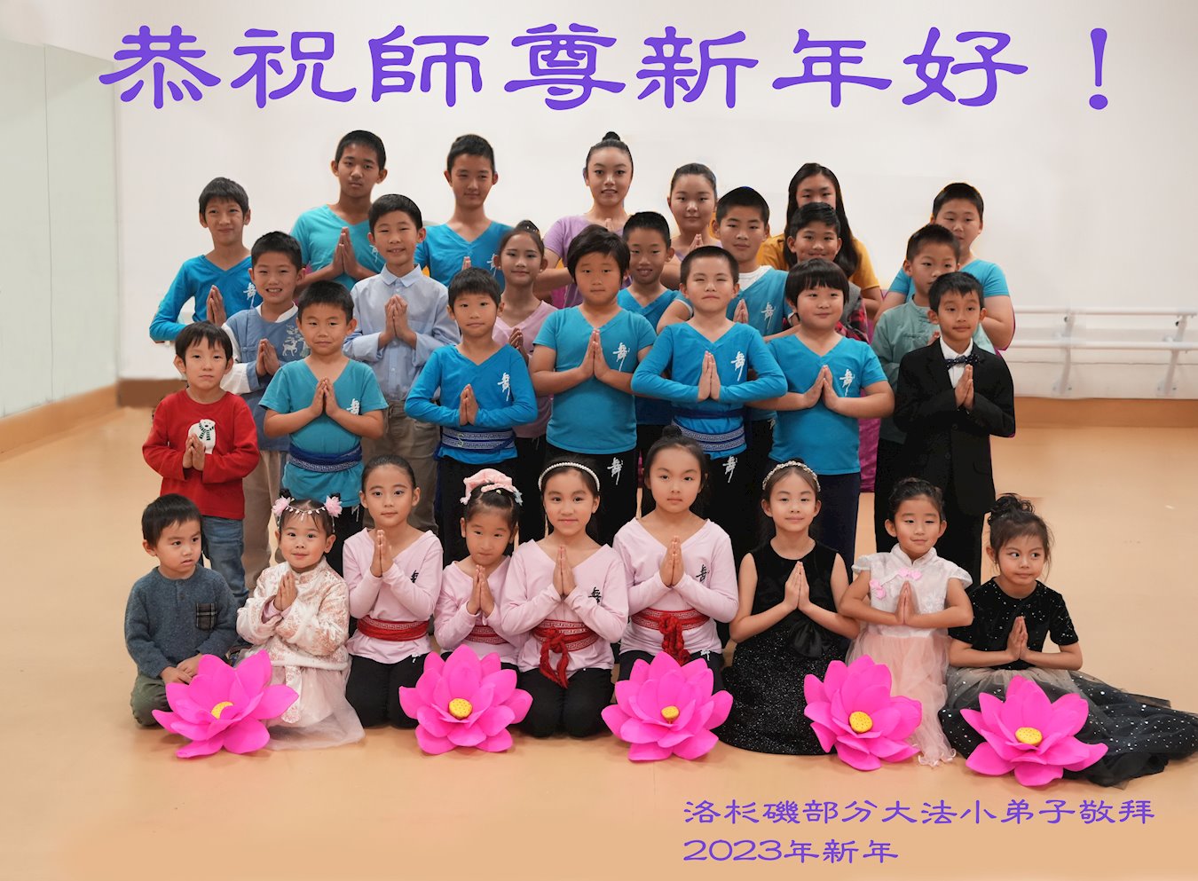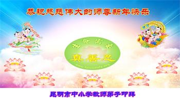 我们是明慧广播小弟子园地的小小播音员,代表大法小弟子们向慈悲伟大的师父拜年!恭祝师父新年快乐!法轮大法好,真善忍好!