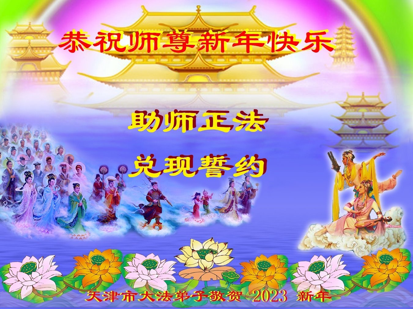 辞旧迎新我们又迎来新的一年2023年。在新年到来之际,谢谢师尊浩荡洪恩!慈悲苦度!我们要谨遵师尊教导,以法为师,精進实修,珍惜这万古机缘,我们一定要勇猛精進。在大疫当前我们一定要抓紧时间。多学法,学好法;多救人,快救人,整体配合,共同提高,走好、走正最后的修炼道路,紧紧跟上正法進程,不辱使命、兑现誓约,圆满随师还!感恩与师尊同在,感恩与大法同在。珍惜这万古机缘,比学比修共精進。风雨无阻救众生,与师尊早日团聚。