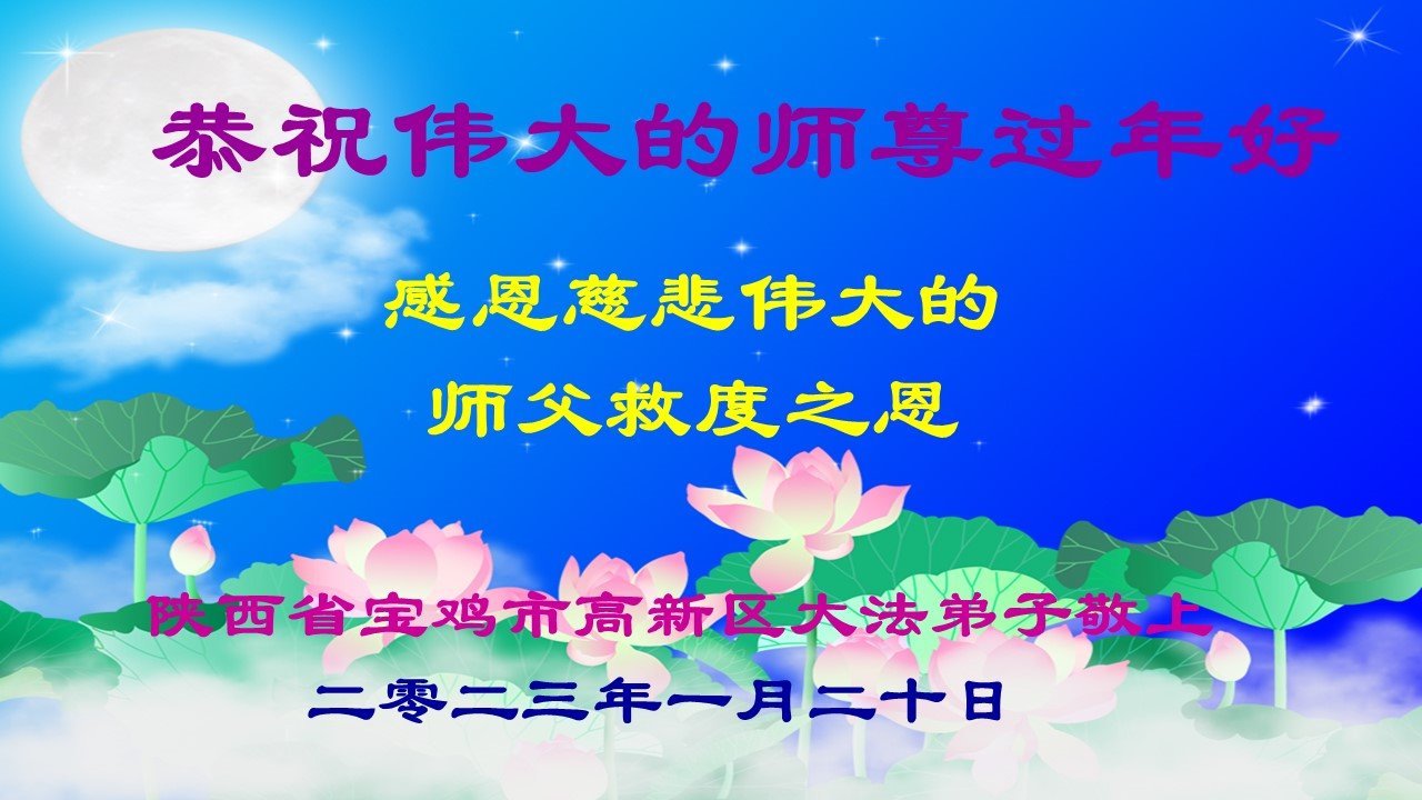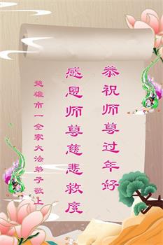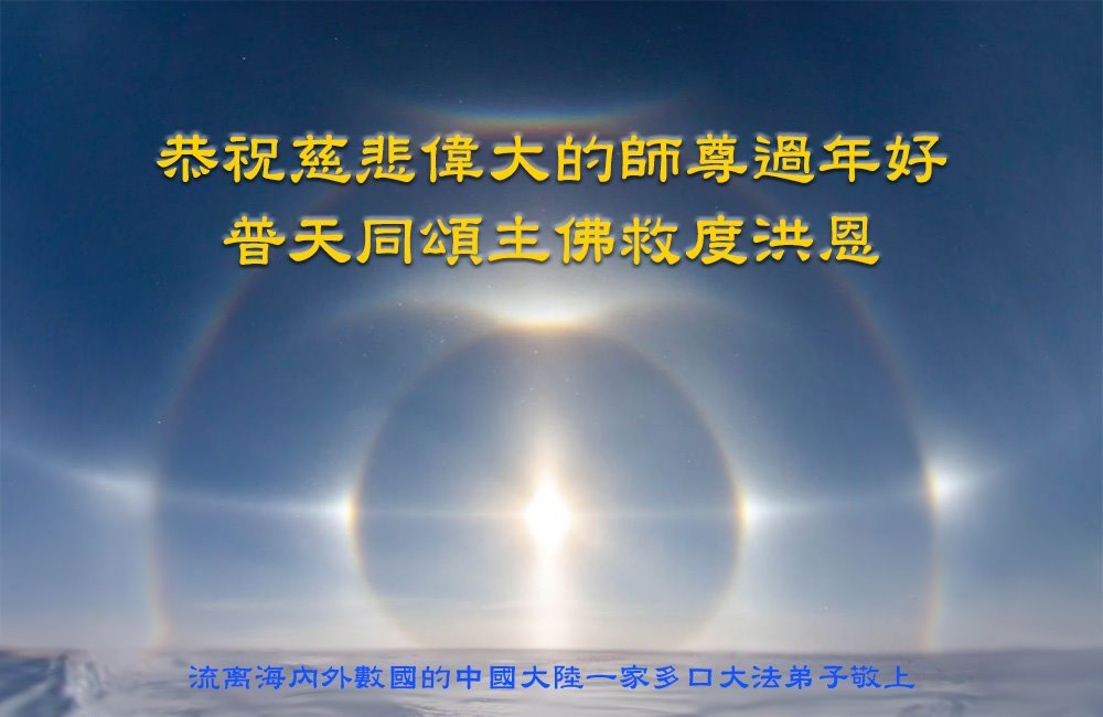 谢谢师父慈悲救度,感恩师父无时无刻的看护。我一定信师信法,做好三件事,跟上师父的正法進程,在当前瘟疫下,一定要学好法,多学法,多救人,快救人,完成使命跟随师父回家。师父,弟子给您拜年了!