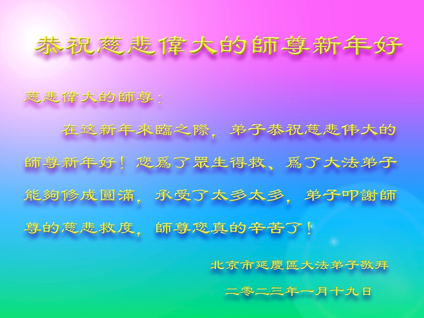 | 师 李洪志 壬寅年腊月廿九日 二零二三年一月二十日 |