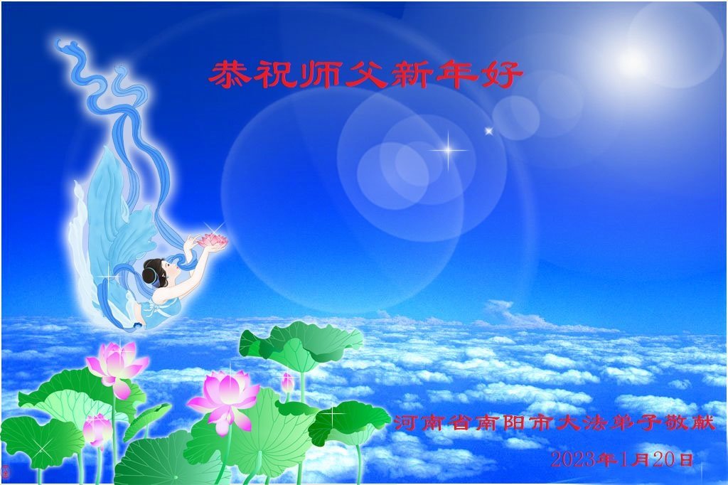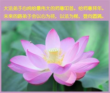 师父您好!新年到,祝师父新年快乐!我感恩师父的一路慈悲保护,请师父放心,修炼这条路再艰辛,我都会紧随师父,珍惜每一天的时间,做好三件事,走正修炼路,做一个合格的正法时期的大法弟子,圆满随师还!