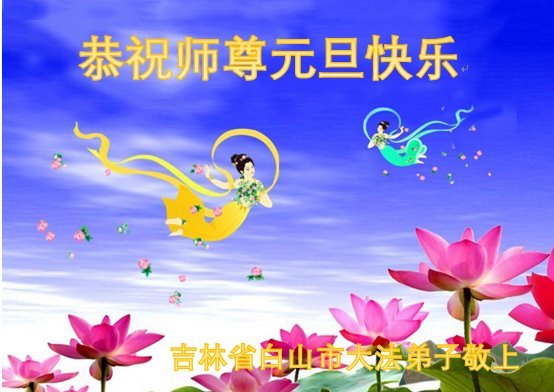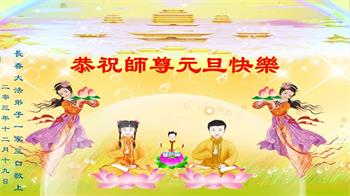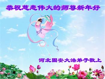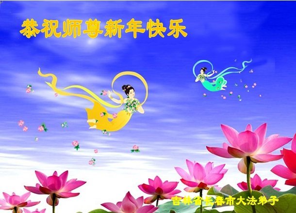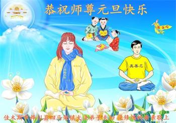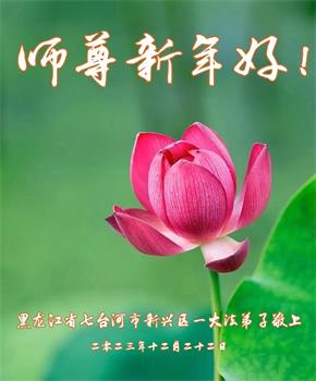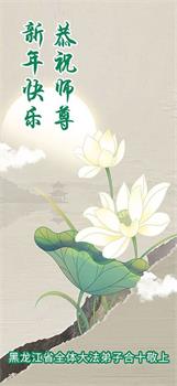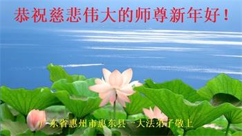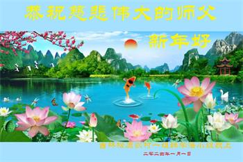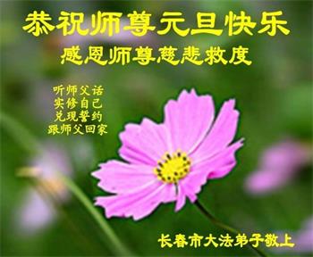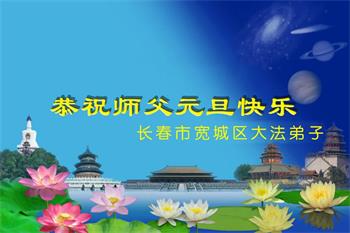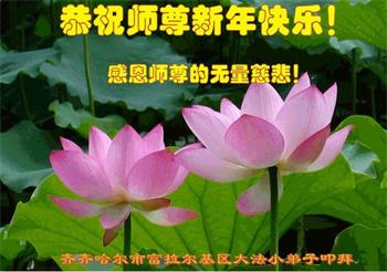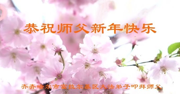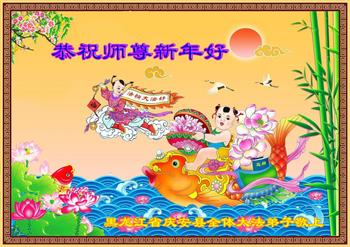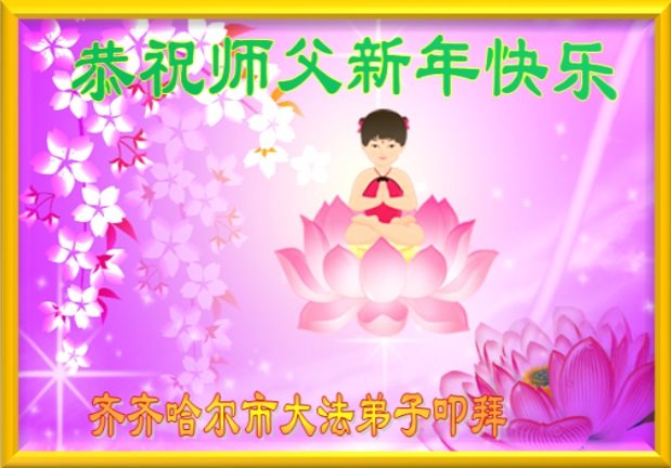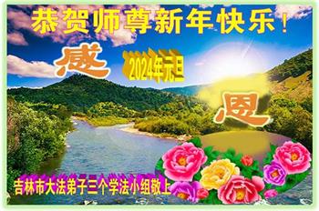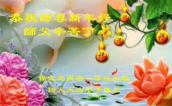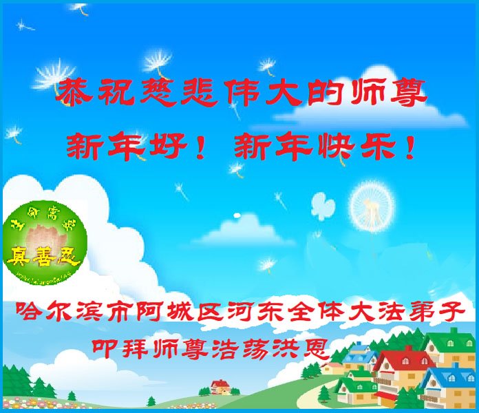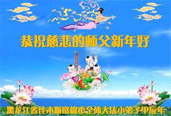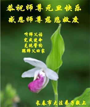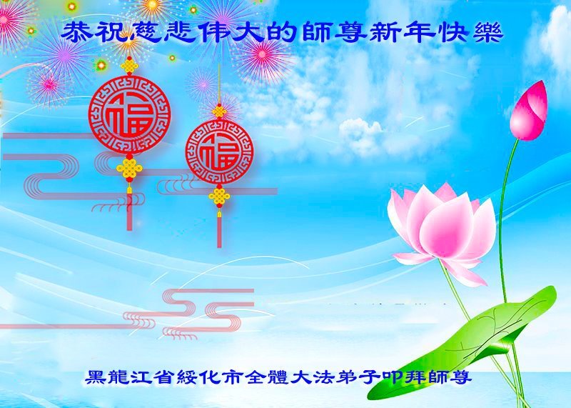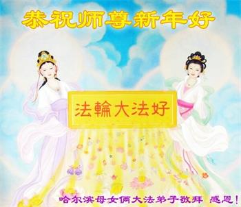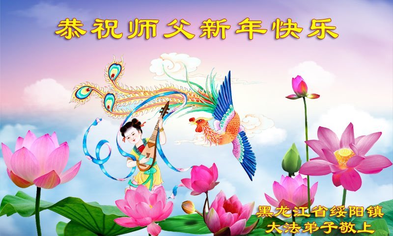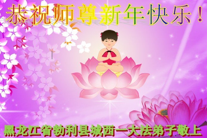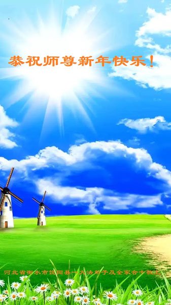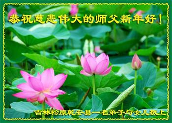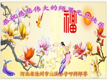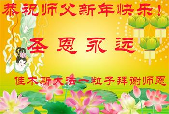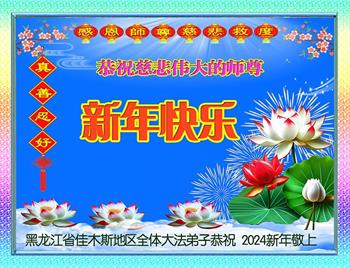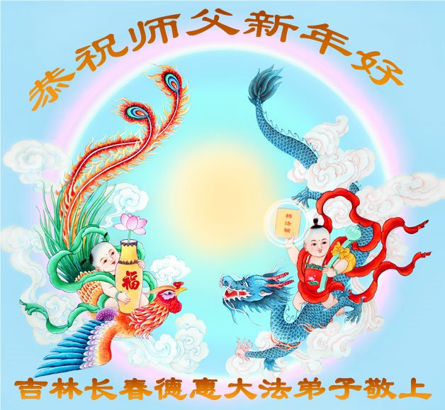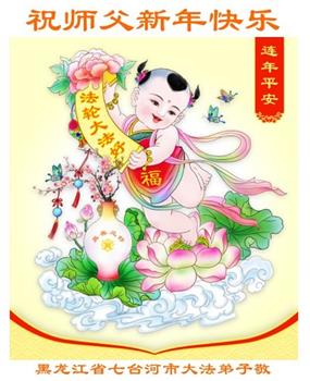 黑龙江省公安系统大法弟子在贺词中表示:“二十五年修炼的风风雨雨,弟子们都坚持下来了。请师父放心,在新的一年,弟子们一定会做的更好,勇猛精進,助师正法。”