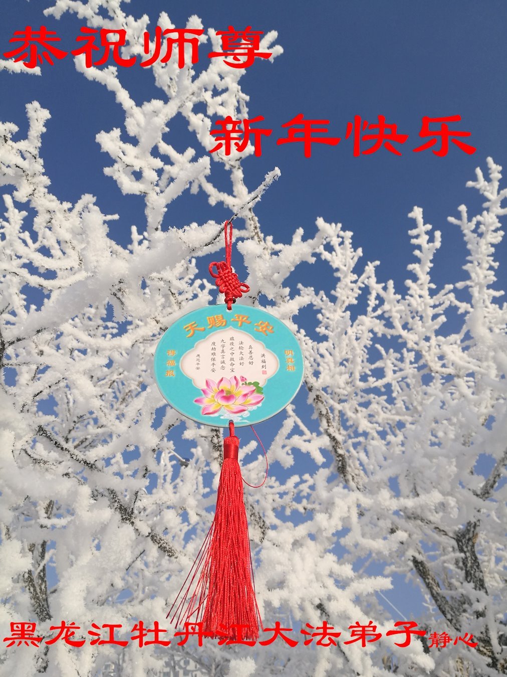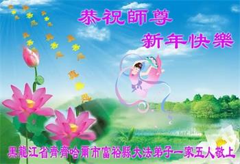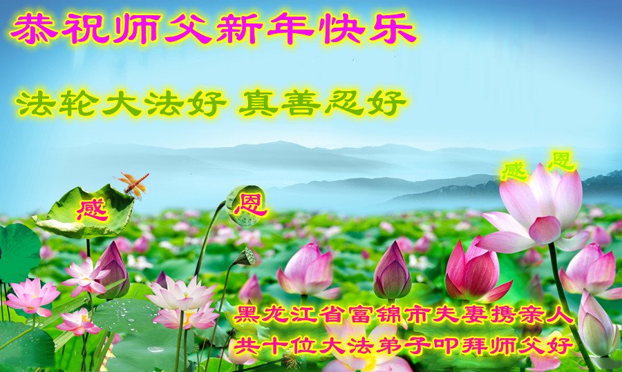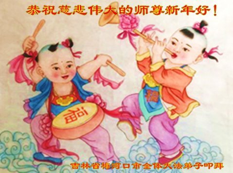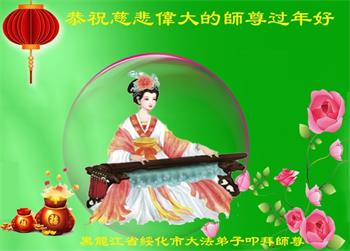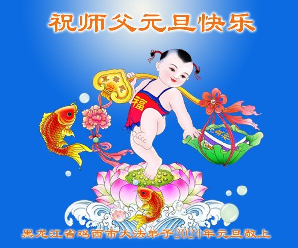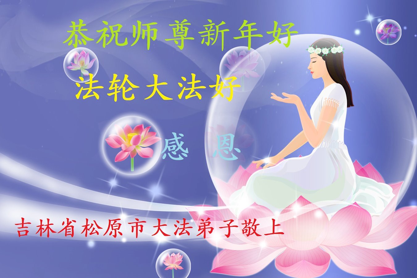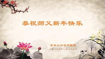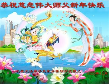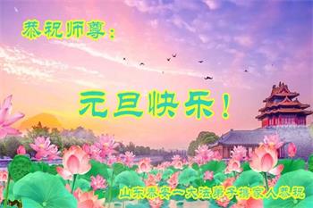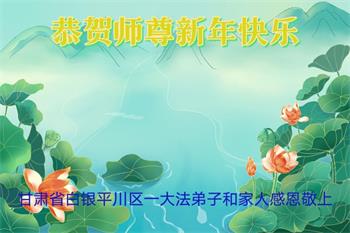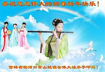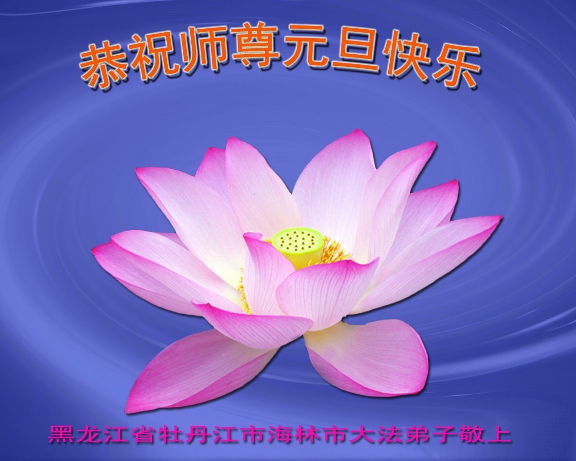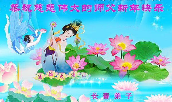黑龙江省公安系统大法弟子在贺词中表示:“二十五年修炼的风风雨雨,弟子们都坚持下来了。请师父放心,在新的一年,弟子们一定会做的更好,勇猛精進,助师正法。”