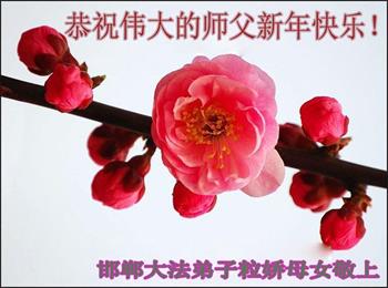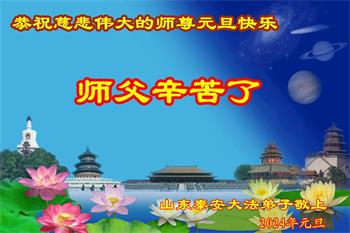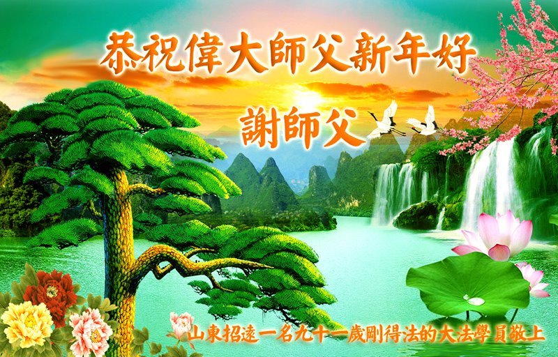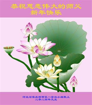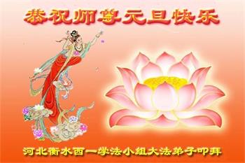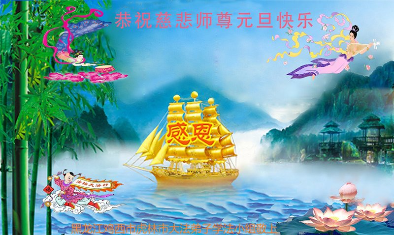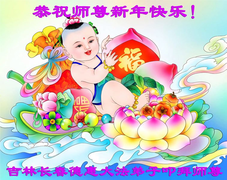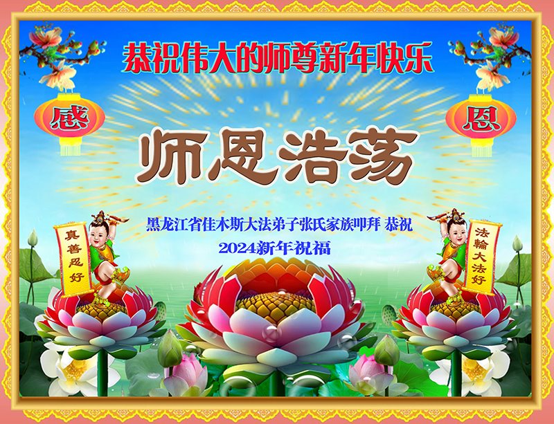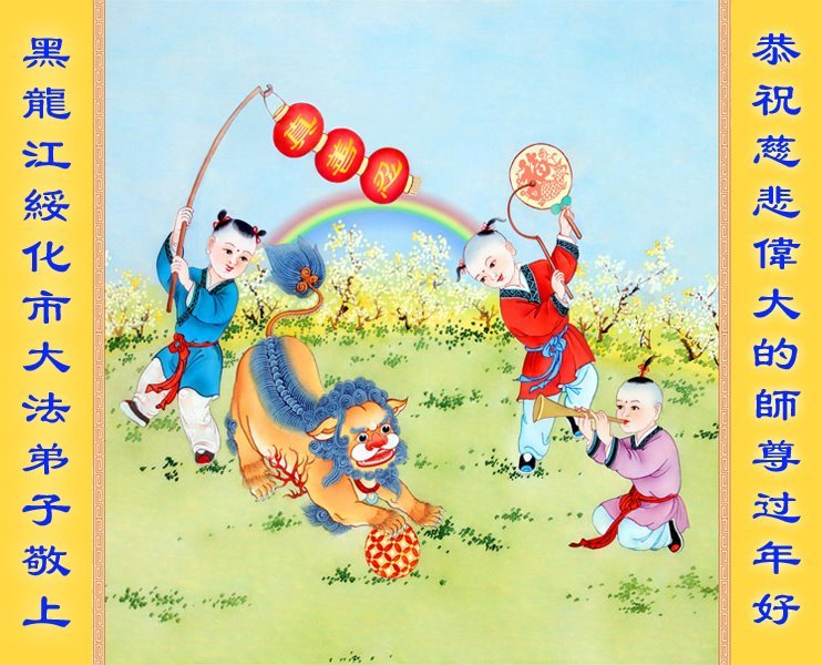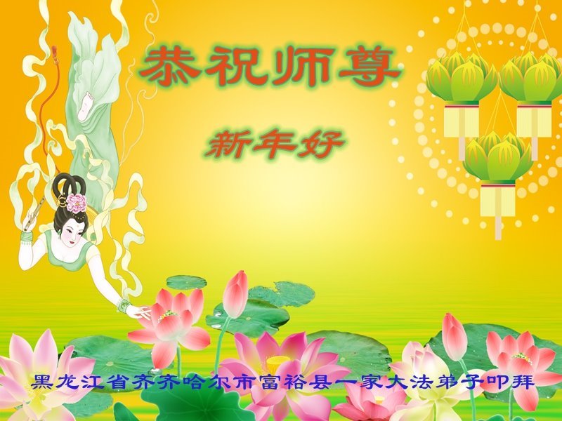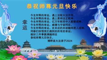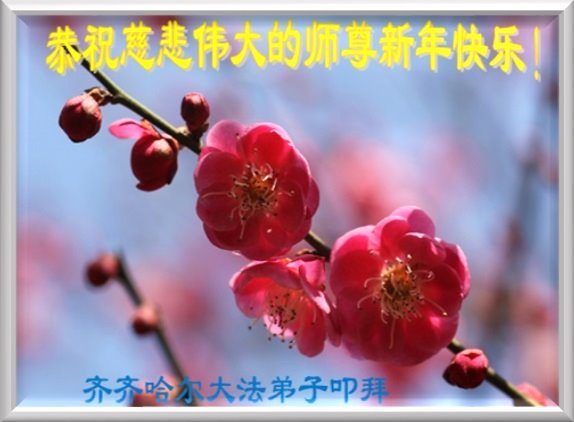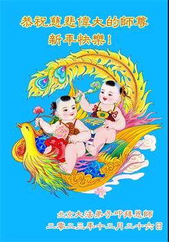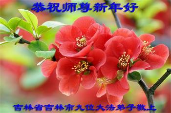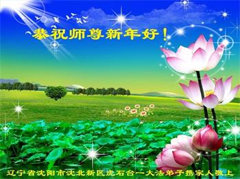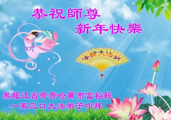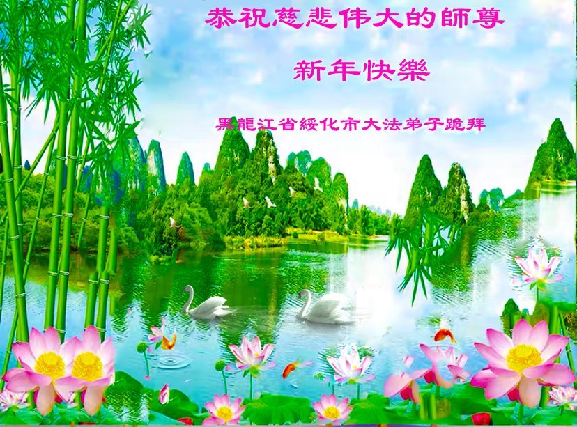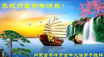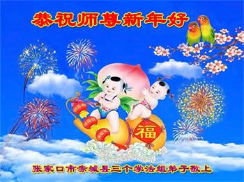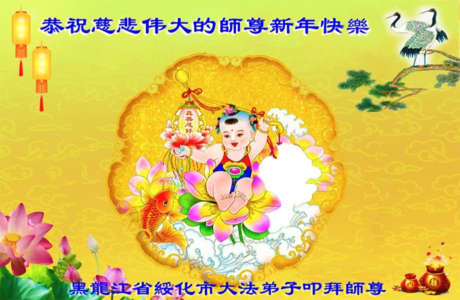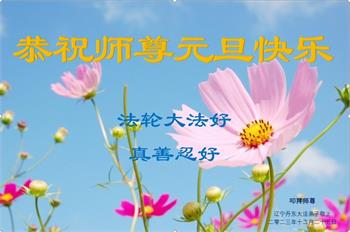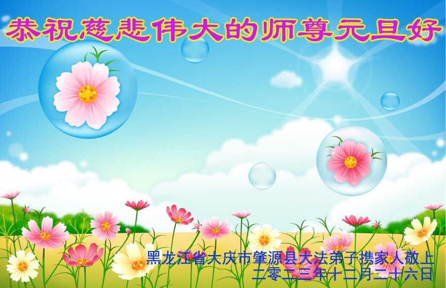 黑龙江省公安系统大法弟子在贺词中表示:“二十五年修炼的风风雨雨,弟子们都坚持下来了。请师父放心,在新的一年,弟子们一定会做的更好,勇猛精進,助师正法。”