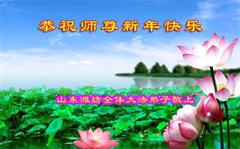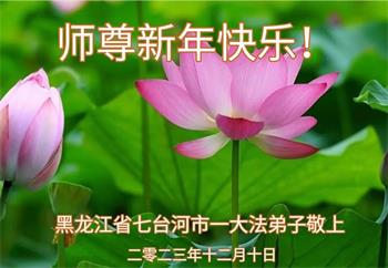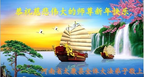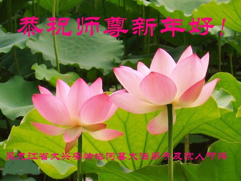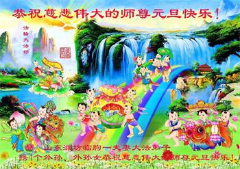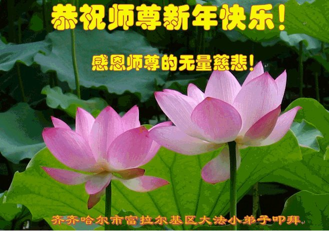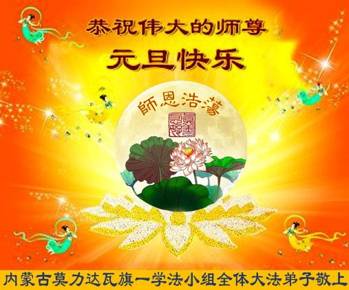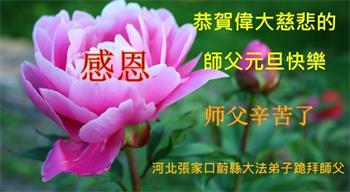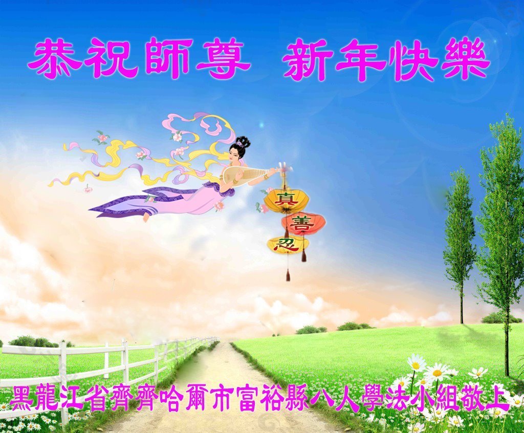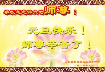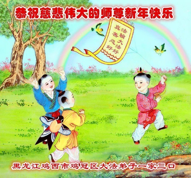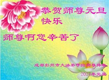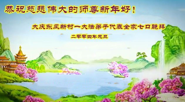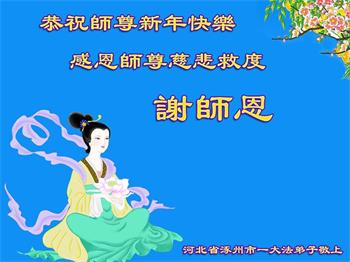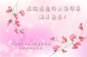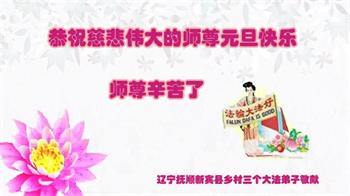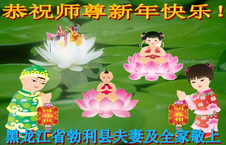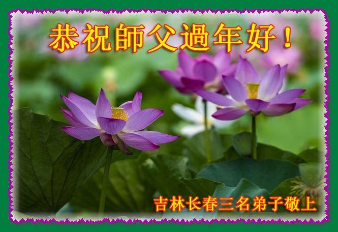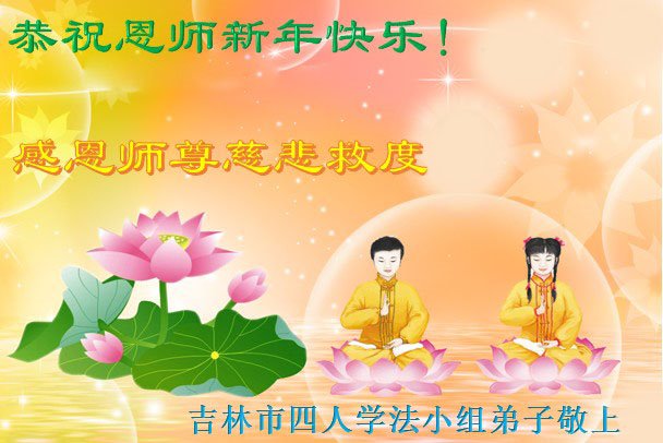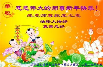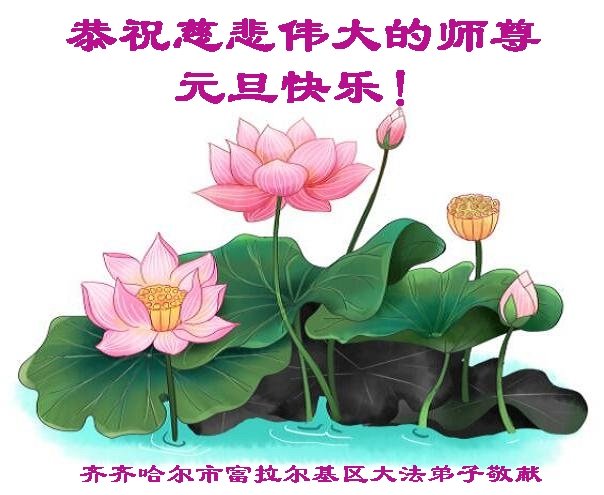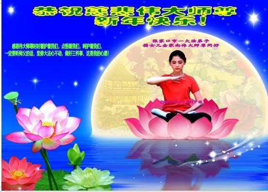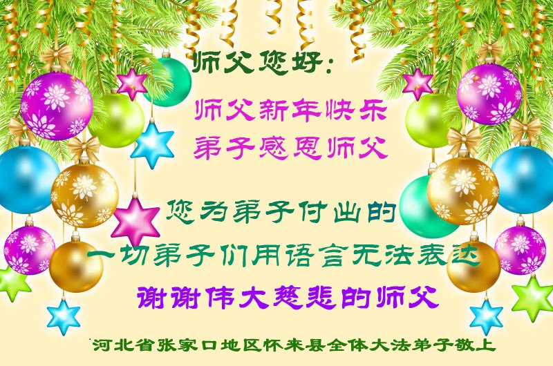 黑龙江省公安系统大法弟子在贺词中表示:“二十五年修炼的风风雨雨,弟子们都坚持下来了。请师父放心,在新的一年,弟子们一定会做的更好,勇猛精進,助师正法。”