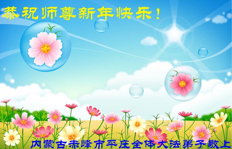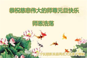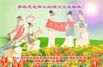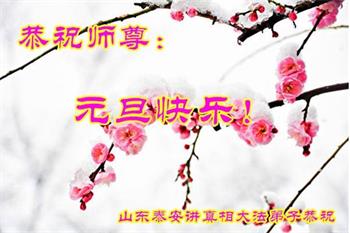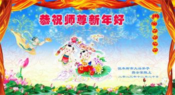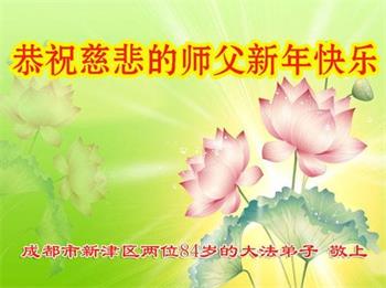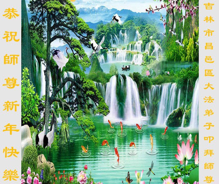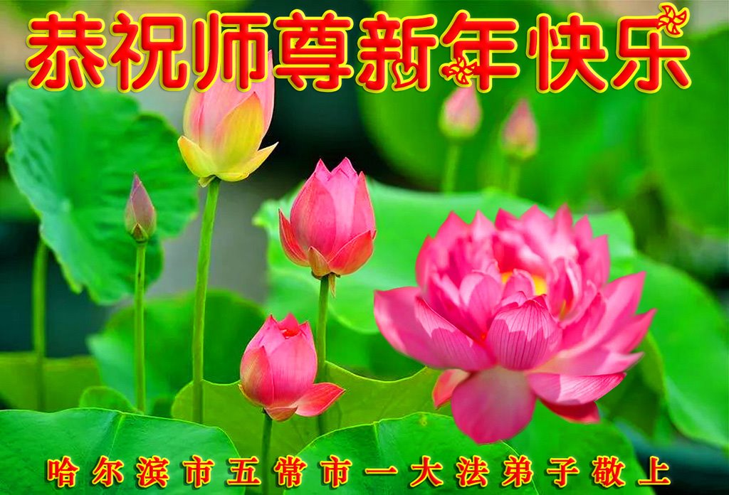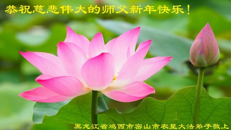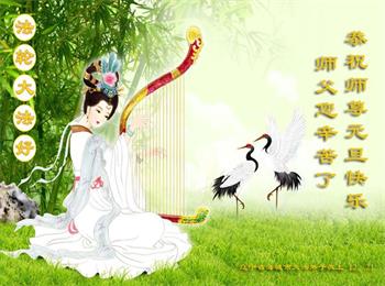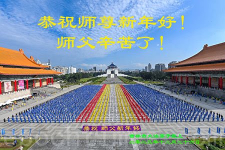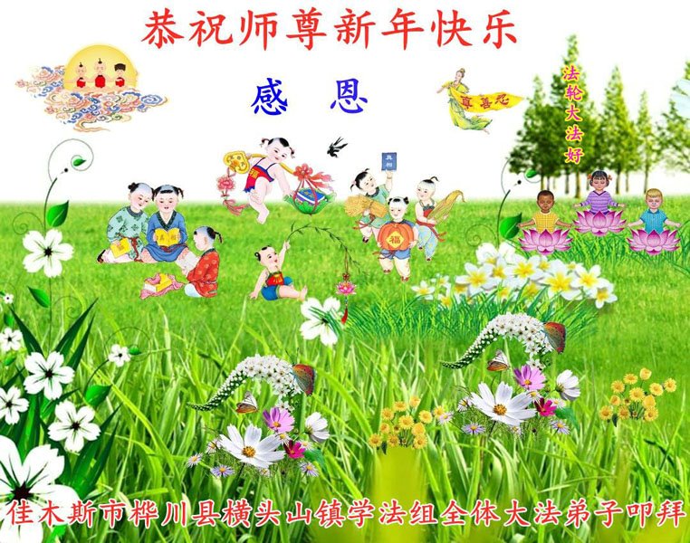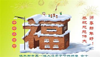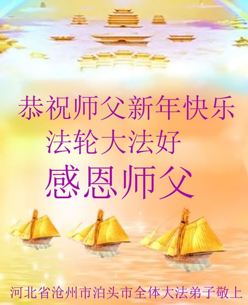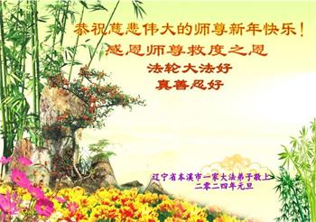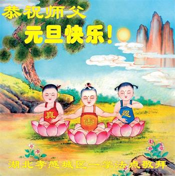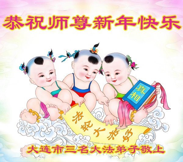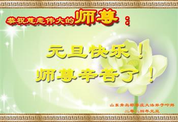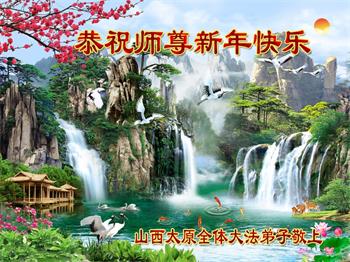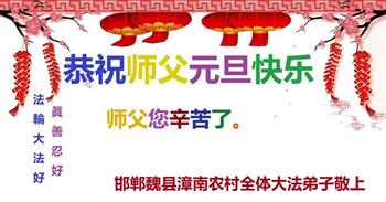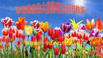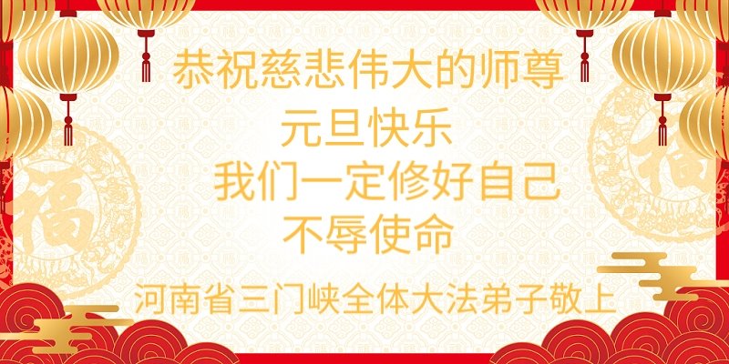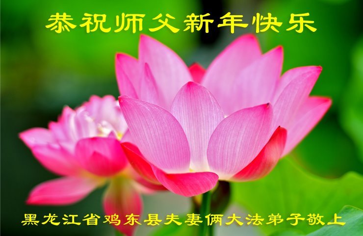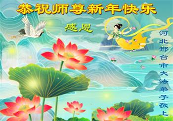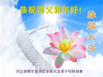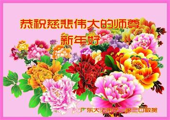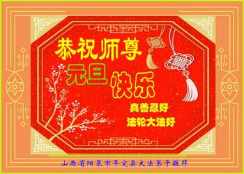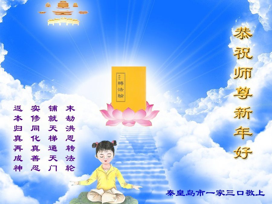 黑龙江省公安系统大法弟子在贺词中表示:“二十五年修炼的风风雨雨,弟子们都坚持下来了。请师父放心,在新的一年,弟子们一定会做的更好,勇猛精進,助师正法。”