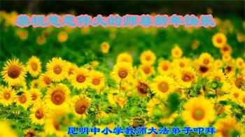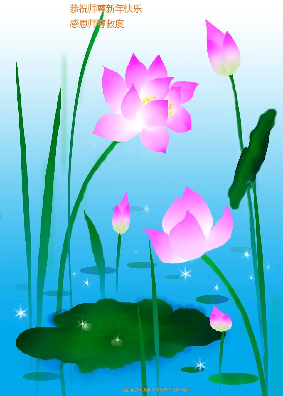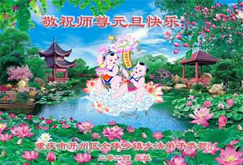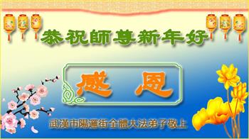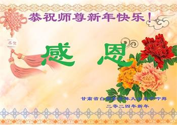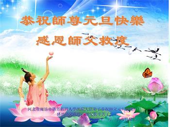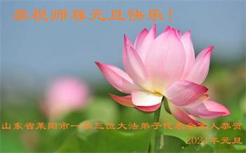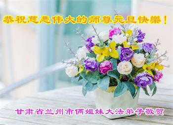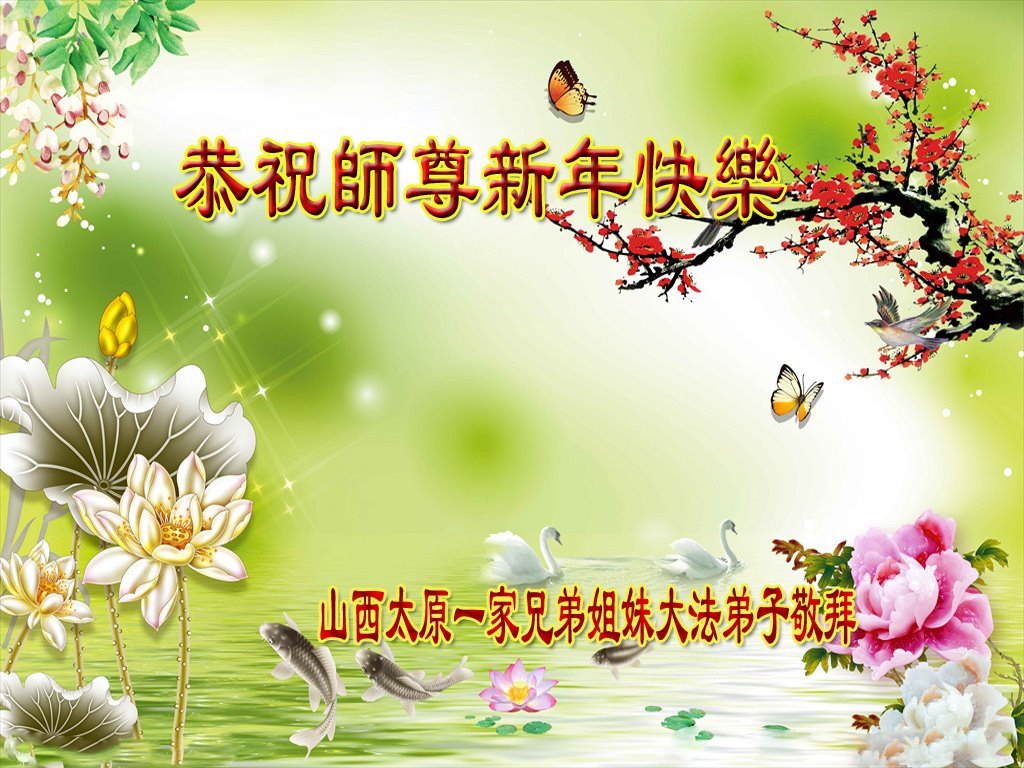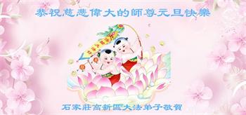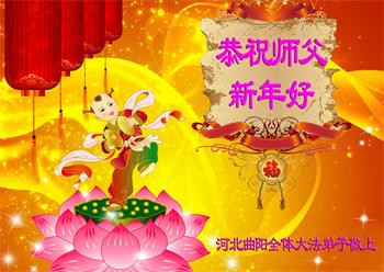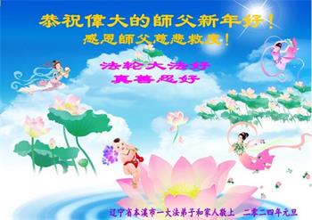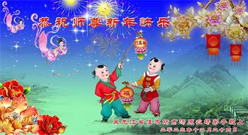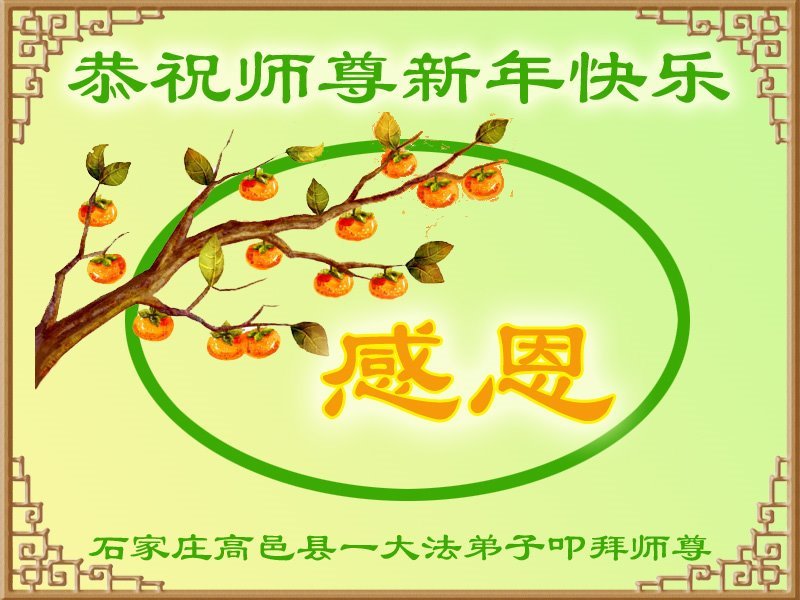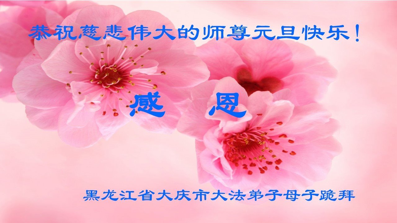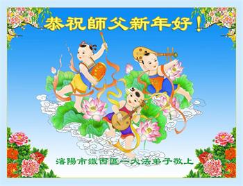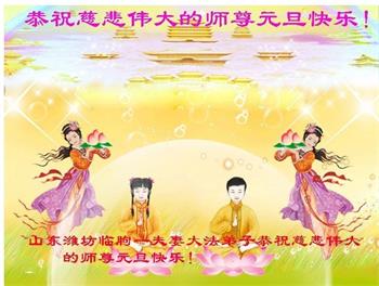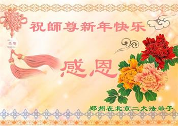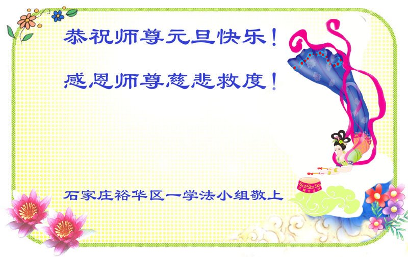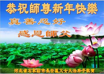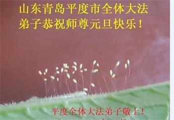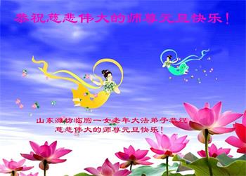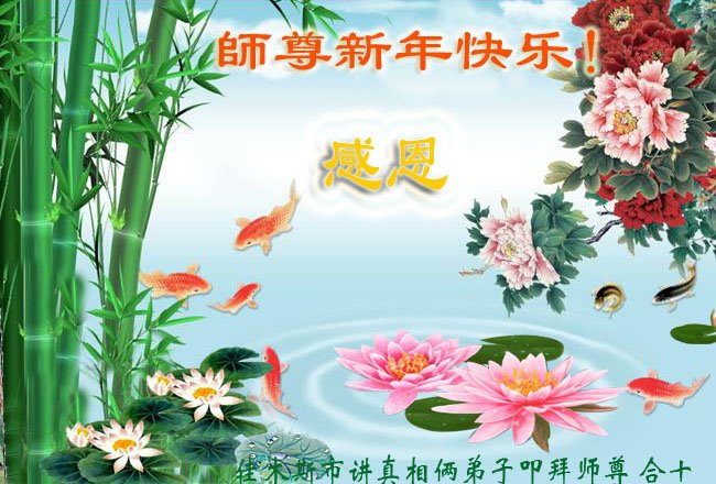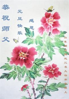 黑龙江省公安系统大法弟子在贺词中表示:“二十五年修炼的风风雨雨,弟子们都坚持下来了。请师父放心,在新的一年,弟子们一定会做的更好,勇猛精進,助师正法。”