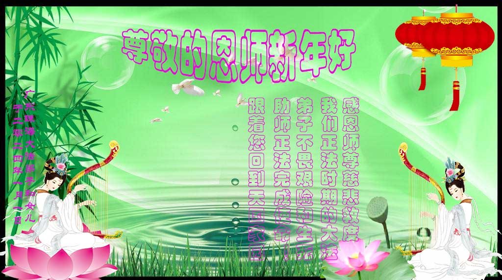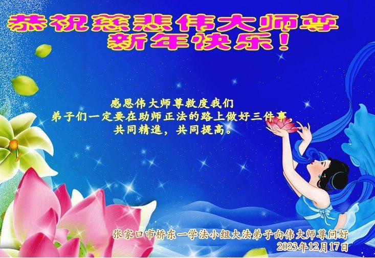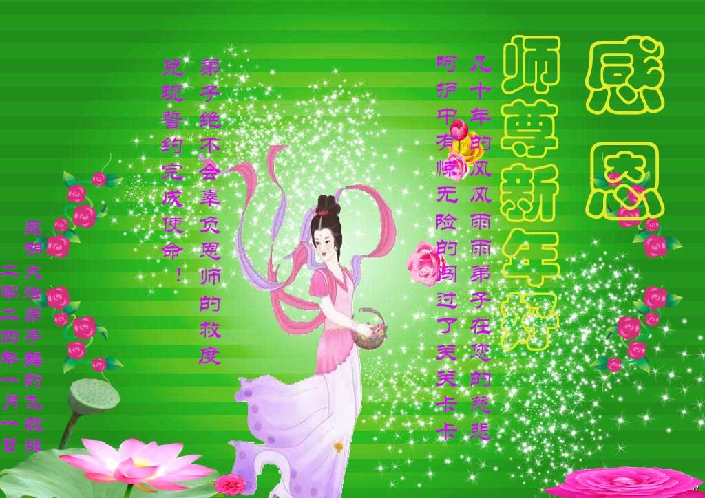 师父新年好!弟子们思念师父!弟子们会抓紧学法、修自己,多救人。弟子们再次叩拜师父!师父辛苦!人间的语言无法表达对师尊的感恩……