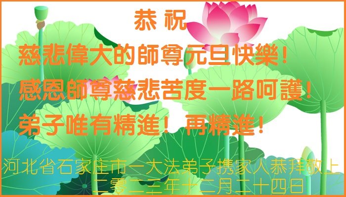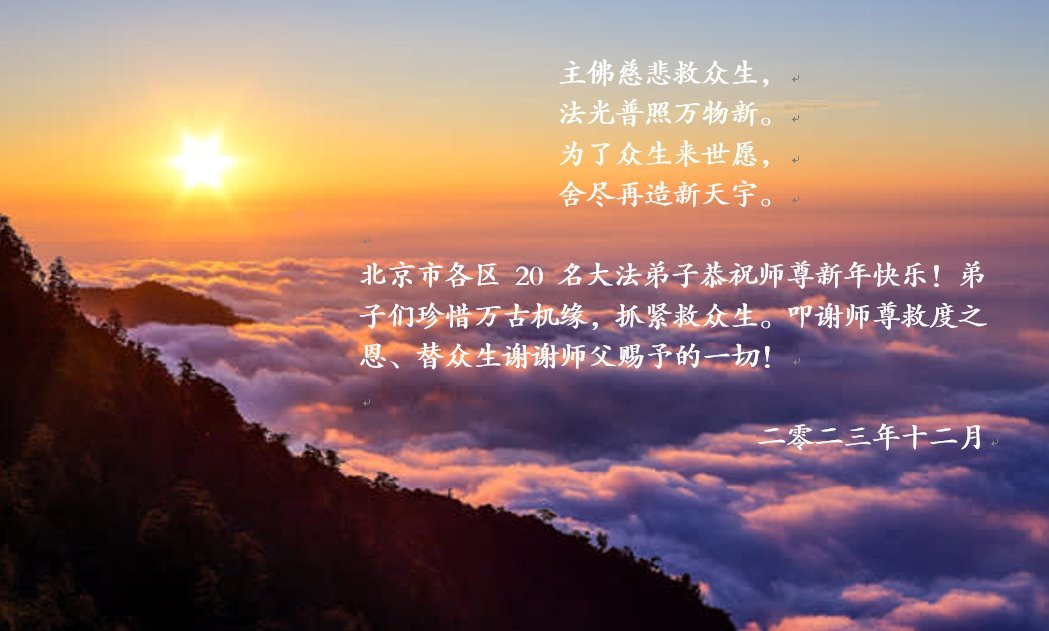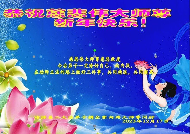 <英文版: https://en.minghui.org/html/articles/2023/12/31/213750.html>中国公检法系统大法弟子及有缘人恭祝师尊新年好