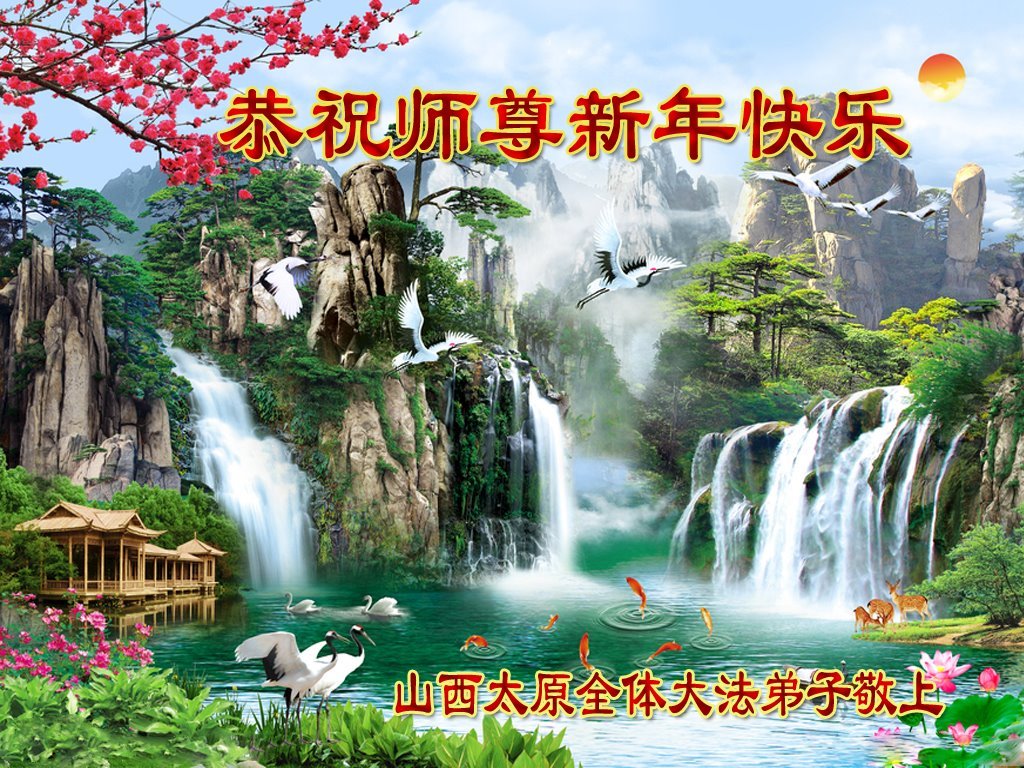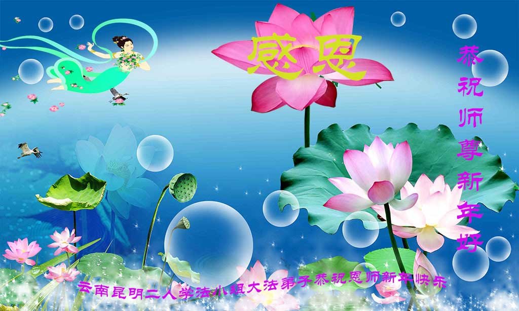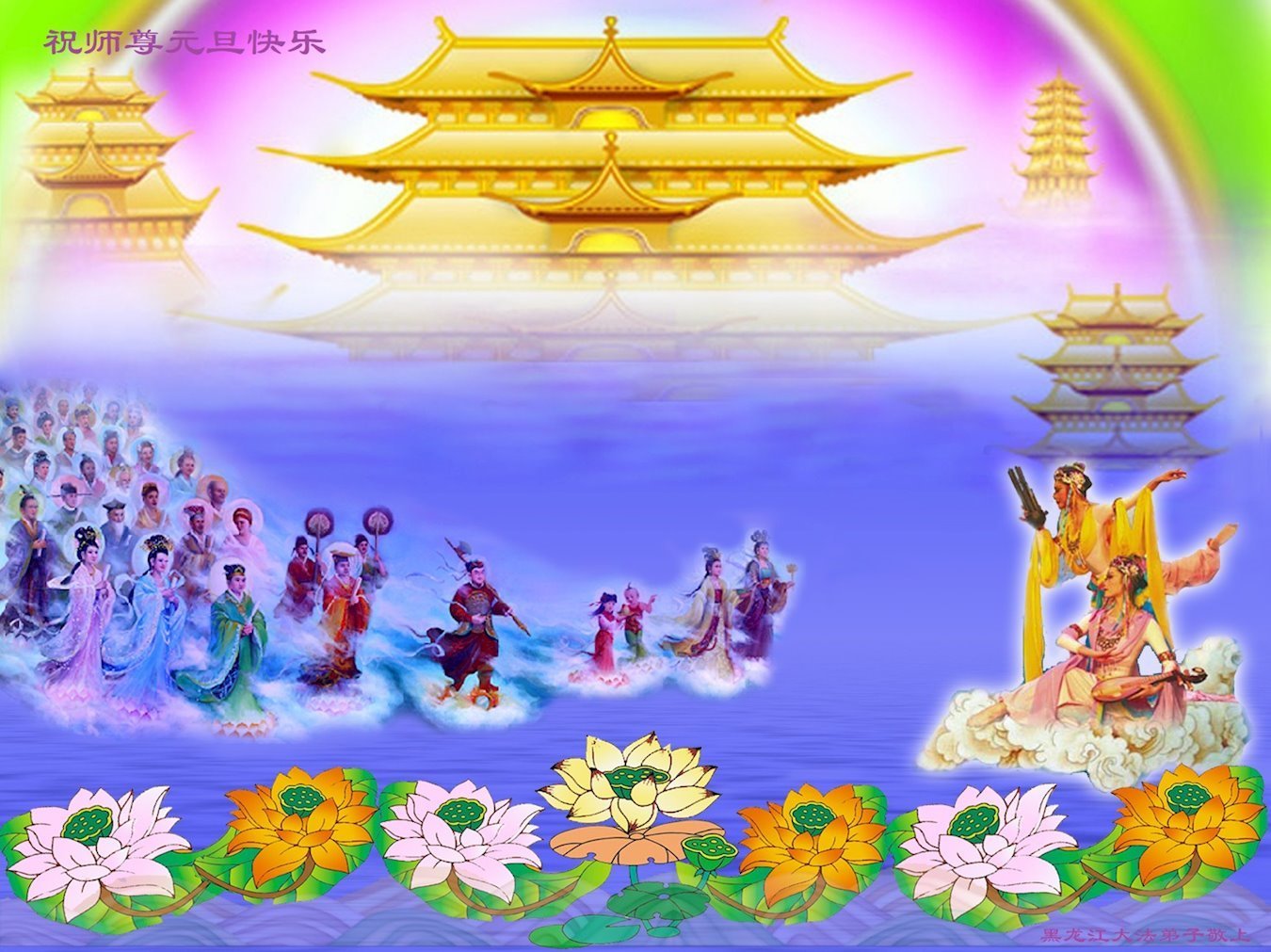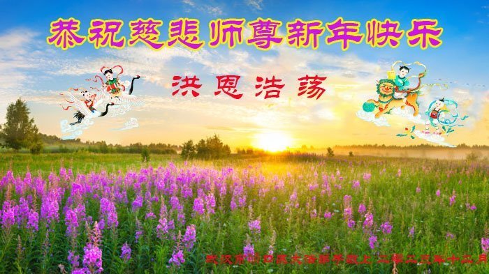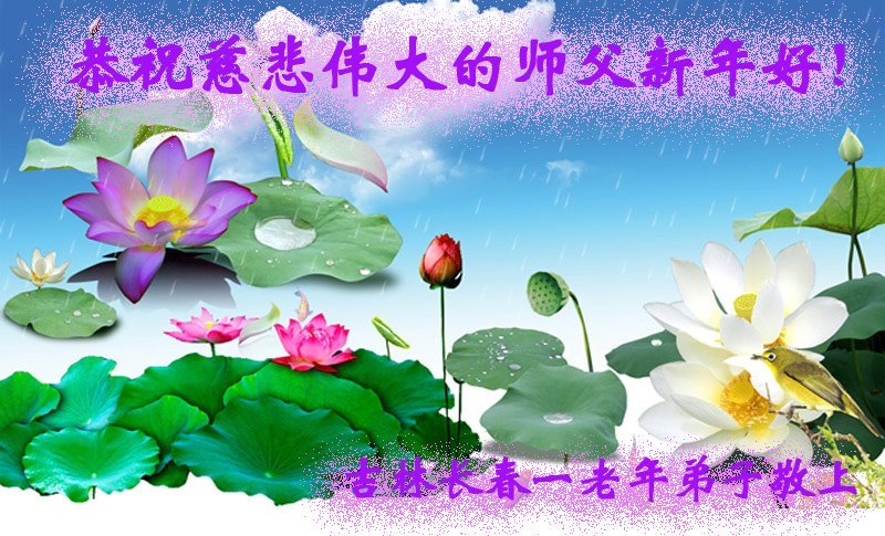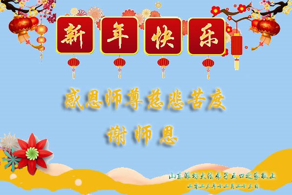 弟子们感恩师尊的佛恩浩荡,慈悲救度!在新的一年里,弟子遵照师尊教诲,学好法,修好自己,讲清真相多救人,圆满跟师父回家!
