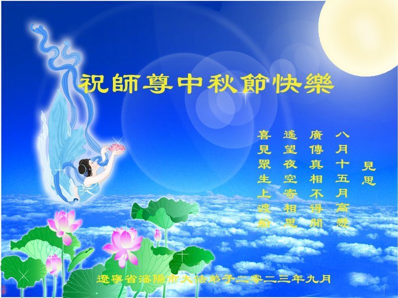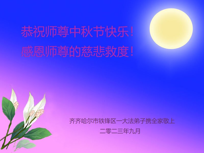 <英文版: https://en.minghui.org/html/articles/2023/9/28/211655.html>中国明真相百姓恭祝大法师父中秋节快乐