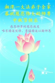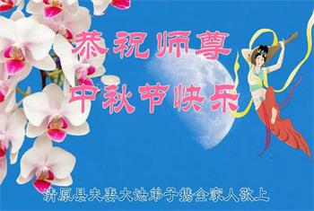 我们家还没有修炼法轮功,但是,我们全家人都知道法轮功是个好功,是教人做个好人,能使身体健康无病的。我们亲戚有炼法轮功的,邻居也有炼的。他们修炼后,变化都很大,是大家公认的好人。这些年,打压这么厉害的情况下,他们不怕死,不怕抓,仍然坚定的修炼法轮功,我们从心里佩服,现在社会上这样的人不多。都是李大师好,才能教育出这么些好徒弟。这些年,因为我们相信法轮功好,帮助法轮功学员躲避迫害,也得到李大师的保护,全家老少身心健康,工作顺利,生活的幸福快乐!我们从心里感谢李大师的恩情。我们全家人恭祝李大师中秋节快乐!李大师您辛苦了!