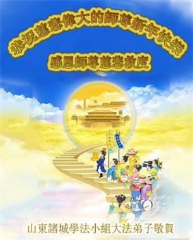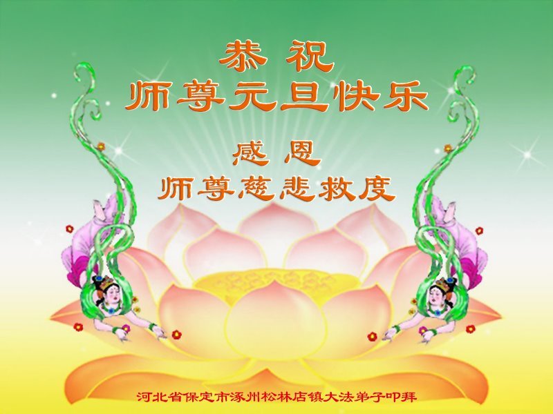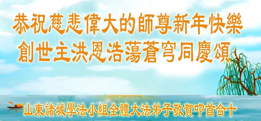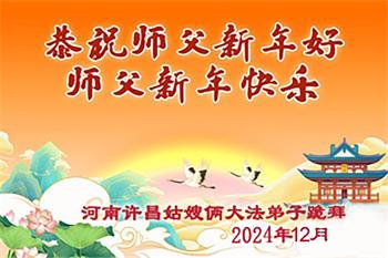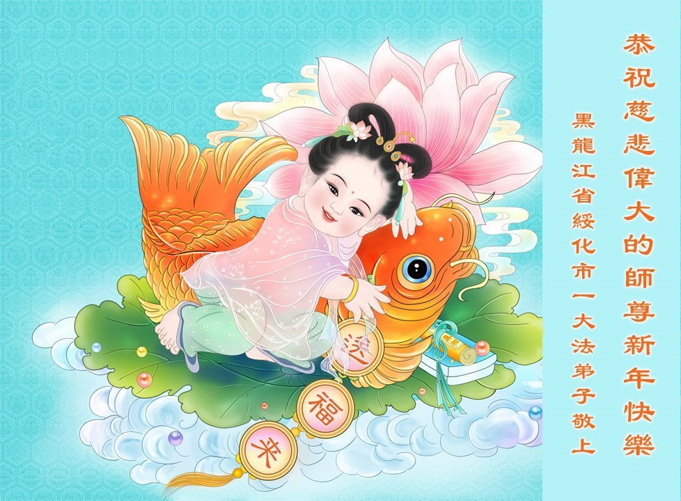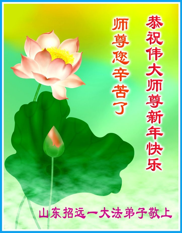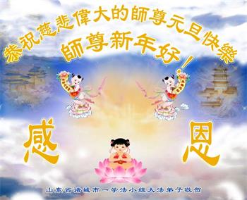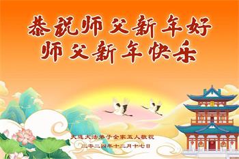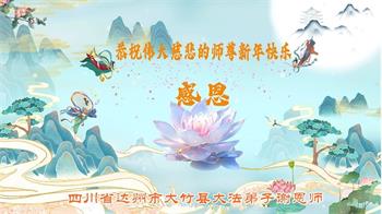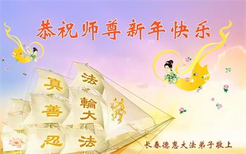 弟子虽然得法较晚,但从小喜欢听家里一老大法弟子在我睡前读法给我听。后来我能自己学习大法,更加感受到大法的神奇,在学法的过程中,感受到自己身体的变化。在此郑重感谢大法师父,感谢大法的慈悲救度,恭贺师父新年快乐!
