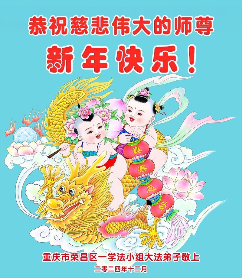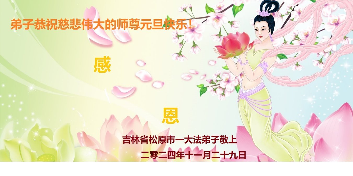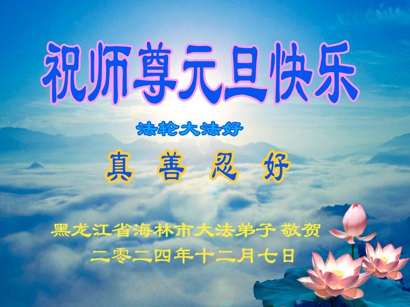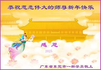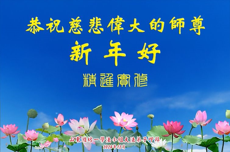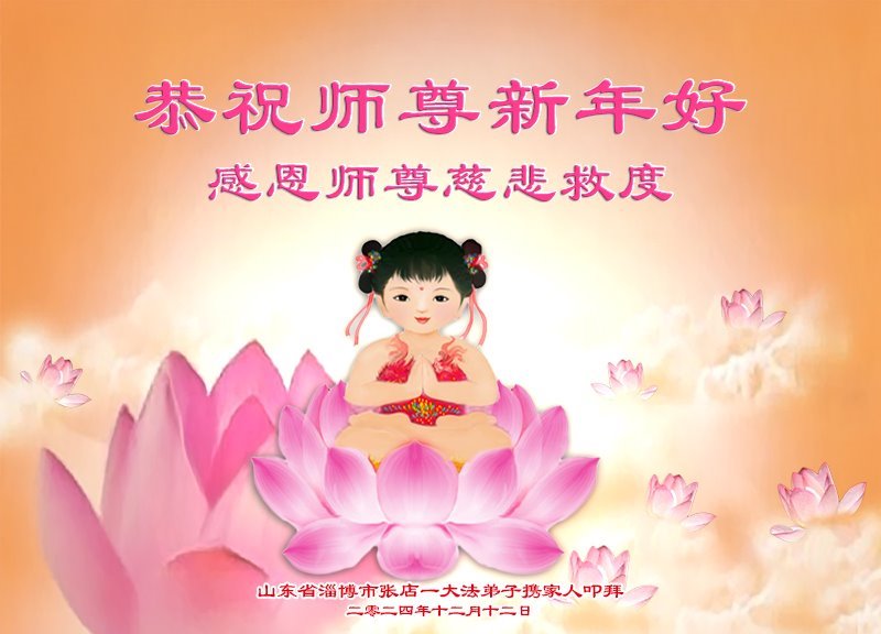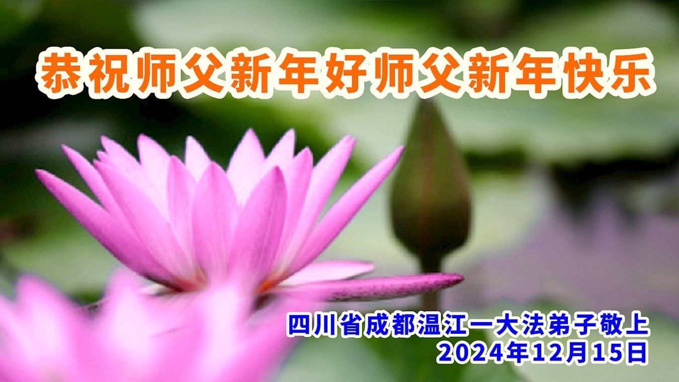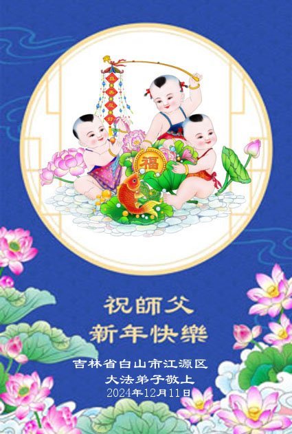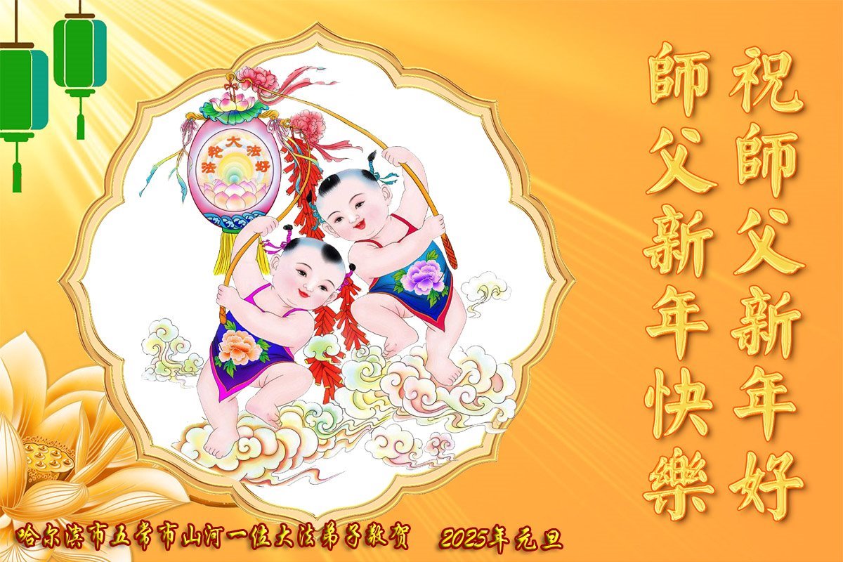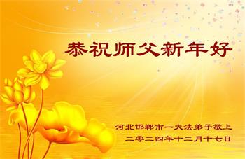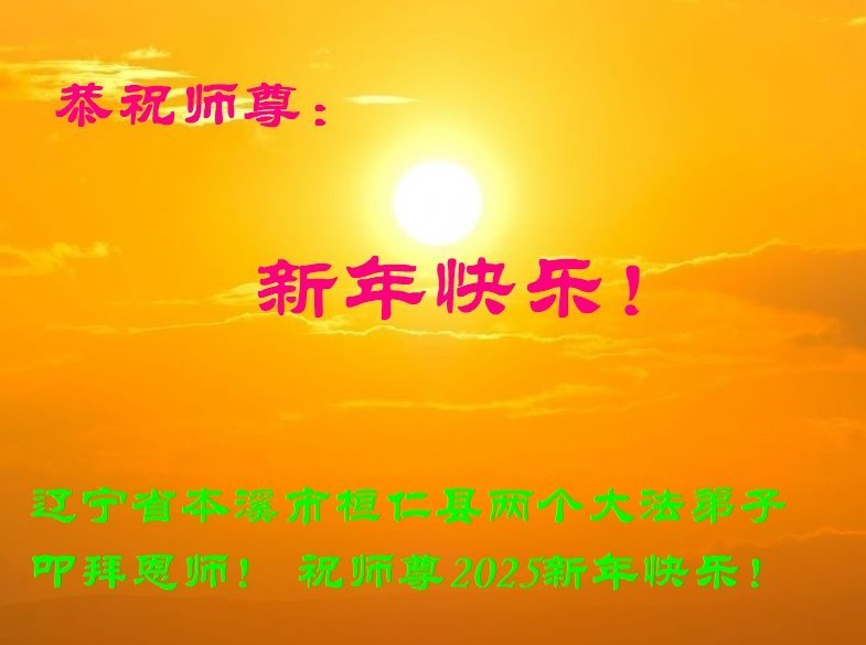 【明慧网二零二四年十二月二十七日】二零二五年新年的钟声即将敲响,明慧网收到来自中国大陆各省市入道得法不久的新学员敬献给李洪志师尊的新年问候。在此法正乾坤的历史时期,能与师尊接上圣缘,众多新大法弟子感到无比幸运,体验到了法轮大法的超常,找到了生命的真谛。新学员感恩师尊的慈悲救度!恭祝师尊新年好!